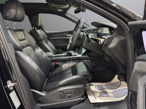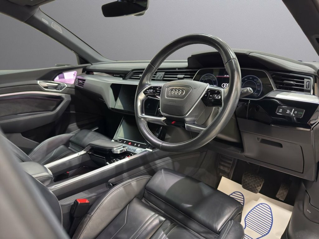 Leather-wrapped multifunction steeringwheel for airbag system, Panoramic glass sunroof, Black roof rails, Black exterior mirror housings, Alloy wheels 9.5J x 21, Virtual door mirrors, Tour Pack, Side assist and pre sense rear, 360 camera, Sports package for Great Britain, Comfort and Sound Pack Bang and Olufsen Premium Sound System, Black Roof Rails, Mythos Black, Comfort and Sound Package, 21in Alloy Wheels - 9.5J 15-Spoke Contra, 11 kW Onboard Charger, 2-Zone Automatic Air Conditioning, 21in Alloy Wheels - 9.5J 5-V-Spoke Plati, 360 Degree Camera, 4-Way Lumbar Support for Front Seats, ABS - Anti-Lock Braking System, AC and DC Charging Access Point on Drive, AMI - Audi Music Interface, Adaptive Air Sport Suspension, Adaptive Cruise Assist, Anti-Theft Alarm, Anti-Theft Wheel Bolts and Wheel Looseni, Audi Beam with e-tron Logo, Audi Connect, Audi Connect Safety and Service - e-call, Audi Drive Select, Audi Music Interface in the Rear, Audi Phone Box with Wireless Charging, Audi Pre-S