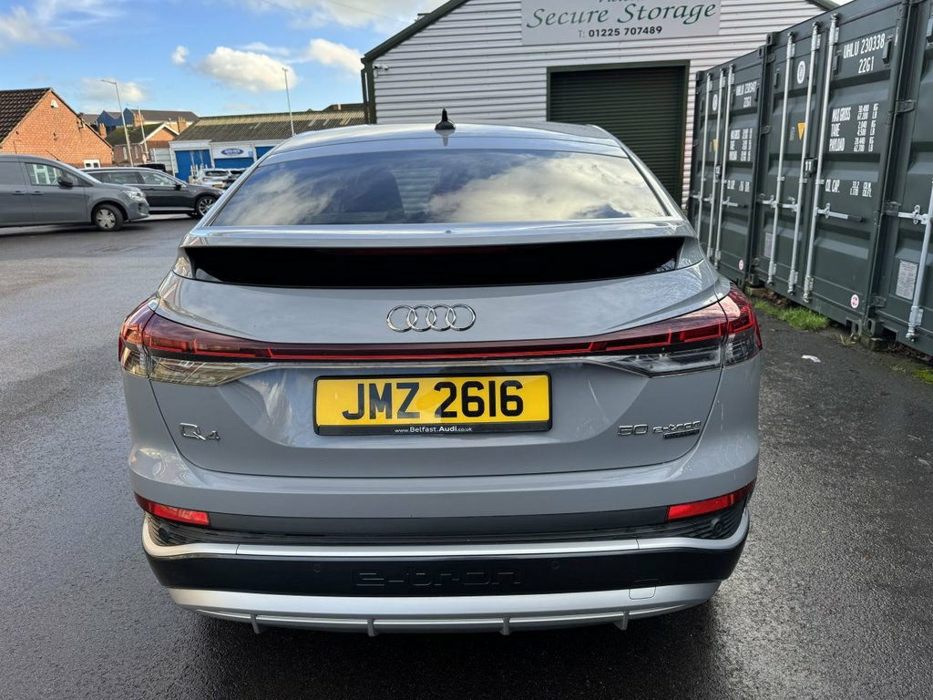 TEL 01225 705200, Just arrived this lovely example of the- AUDI Q4 E-TRON 50 S line Sportback 5dr Electric Auto quattro 82kWh (299 ps) reg on 31/05/2022, Just arrived (pictures soon) in lovely condition finished in this lovely pebble grey , one owner 58,500 miles. For more details please ring us on ( 01225 705200 ) Thanks, this vehicle is located at our car sales site VICTORIA MOTORS OLD BROUGHTON ROAD MELKSHAM WILTSHIRE SN128BX TEL 01225 705200. 11 kW Onboard Charger, 135kW DC Charging Capability, 2 USB-C Ports with Charge and Data Funct, 20in Alloy Wheels - 5-Y-Spoke, 3-Zone Electronic Climate Control, 4-Way Electric Lumbar Support for Front , ABS - Anti-Lock Braking System, AC and DC Charging access Point on the R, Active Vehicle Alerting System - AVAS, Aluminium Look Interior Elements, Ambient Lighting Pack, Anti Theft Locking Wheel Bolts, Anti-Theft Alarm, Audi Connect Navigation and Infotainment, Audi Connect Safety and Service - e-call, Audi Drive Select, Audi Pre-Sense Front with Pedestrian and, Audi Smartphone Interface, Audi Sound System, Audi Virtual Cockpit - 10.25in Display, Auto Dimming and Frameless Rear View Mir, Blue
