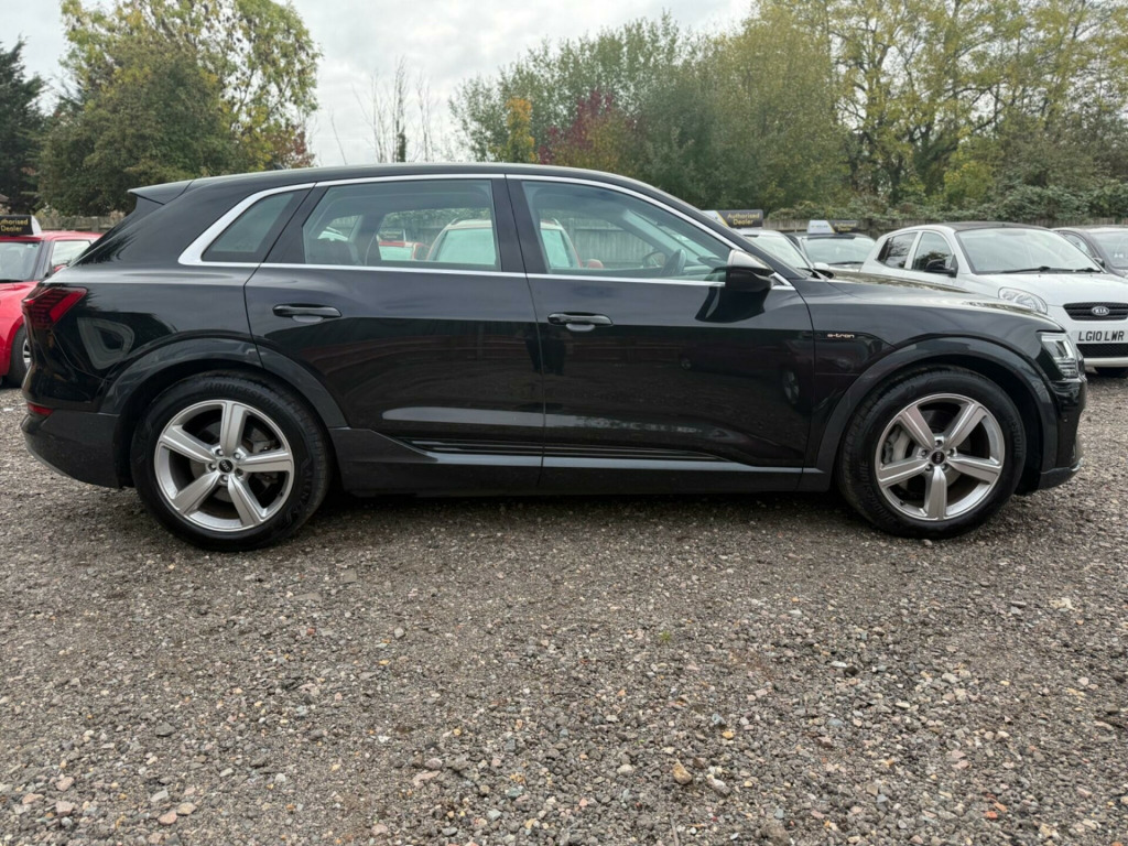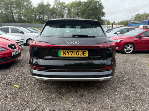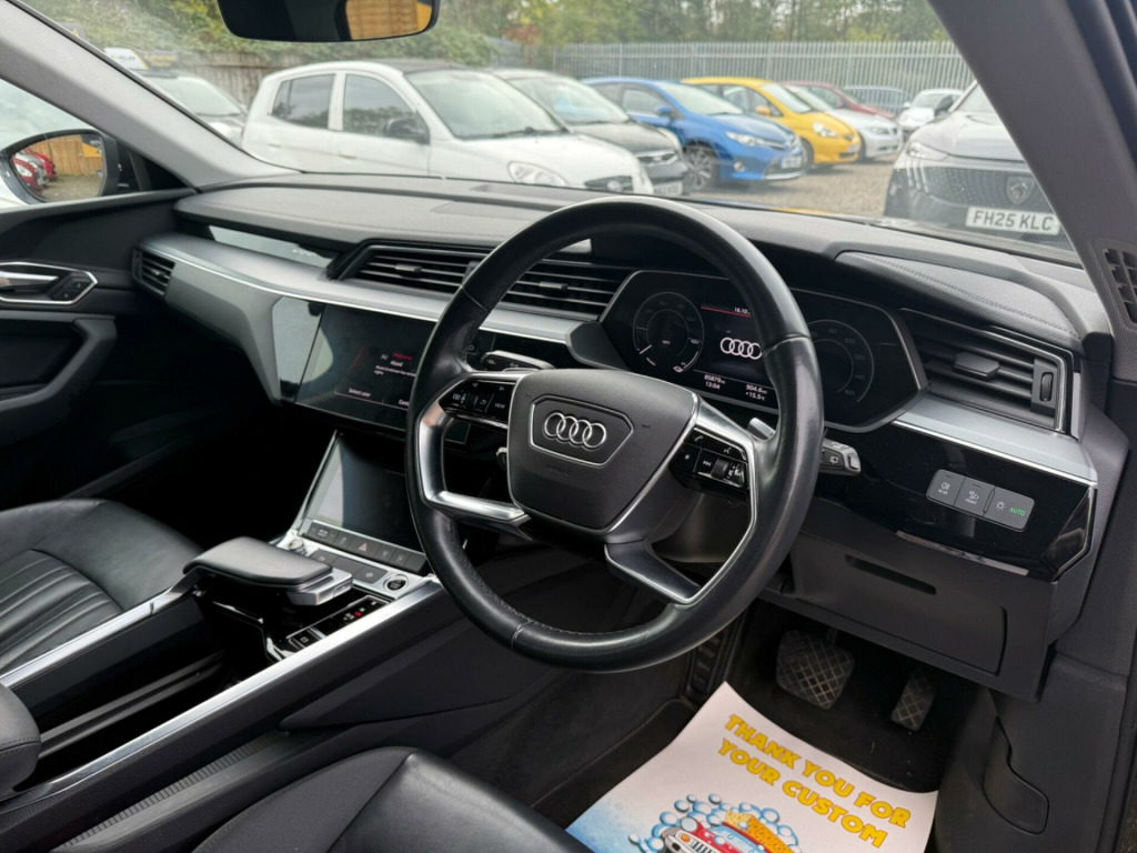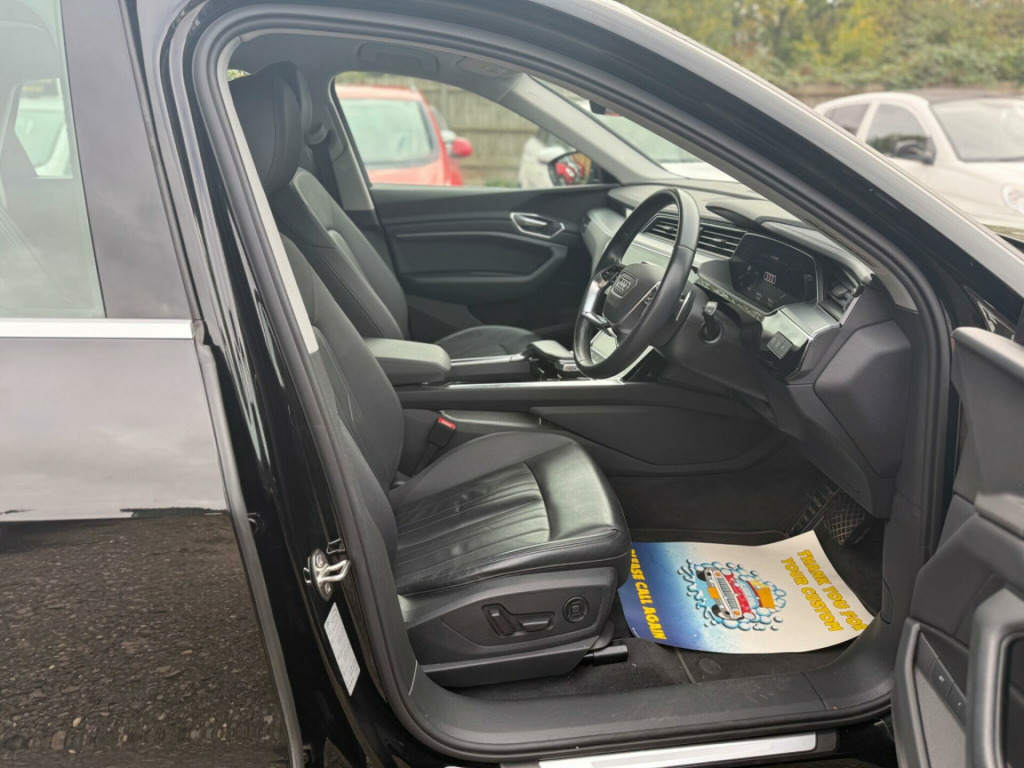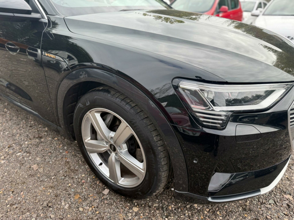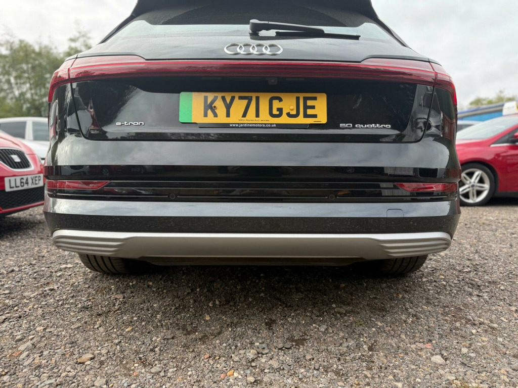 This 2021 Audi e-tron Technik is a superb example, having been owned by only one person since new. This electric vehicle boasts Four Wheel Drive for confident handling and a 71 kWh battery offering a maximum range of 194 miles when new. Charging is convenient, with a full charge at home taking approximately 9 hours and 10 minutes using a 7kW charger, while rapid public charging can replenish the battery from empty to 80% in just 34 minutes. Inside, you'll find luxurious heated front seats, with the driver's seat also featuring electric adjustment and a memory function. Comfort is further enhanced by 2-zone automatic air conditioning, and parking is made easier with a rear view camera. The vehicle is equipped with LED headlights, providing excellent visibility.The Audi e-tron Technik offers a refined driving experience, and its features highlight its superior quality compared to other vehicles in its class. The generous boot space ensures you have ample room for luggage or shopping. This combination of advanced technology, comfort features, and practical space makes this Audi e-tron a compelling choice for those seeking a premium electric SUV. kw onboard charger, 2-zone automatic air conditioning, 20in alloy wheels - 5-arm design, 4-way lumbar support for front seats, abs - anti-lock braking system, ac and dc charging access point on drivers side and second ac charging access point on passenger side, ami - audi music interface - front, active vehicle alerting system - avas, adaptive air suspension, airbags - driver, anti-theft alarm, anti-theft wheel bolts and wheel loosening warning, audi connect, audi connect safety and service - e-call, audi drive select, audi pre-sense front and basic, audi smartphone interface includes wireless functionality, audi sound system, audi virtual cockpit, auto dimming and frameless rear view mirror, bluetooth interface, body coloured door mirrors, bumpers - contrasting, cloth headlining in lunar silver, compact e-tron charging system, cruise control with speed limiter, dab digital radio, door mirrors - electrically adjustable - heated - folding - automatically dimming with memory function with kerb view function for passenger side, door sills with aluminium inlays, electric windows - front and rear, electrically adjustable front seats including memory function for drivers seat, first aid kit and warning triangle, four-spoke multi-function leather steering wheel with paddles, front centre armrest, front and rear floor mats, gloss styling pack, heated front seats, household plug type g - gb, isofix child seat mounting for front passenger seat with front passenger airbag deactivation, isofix child seat mounting for outer rear seats, industry plug cee 32 a-230 v, inlays in graphite grey paint finish, keyless go, led headlights with function-on-demand preparation, led interior light package, led rear lights, lane departure warning, luggage compartment cover, luggage compartment floor, mmi navigation plus with mmi touch - twin touch screens with haptic feedback, manual steering column adjustment, mode 3 type 2-ac charging cable 22kw, parking system plus with 360 degree sensors and function-on-demand preparation, power operated tailgate, progressive steering, rear view camera, removable net partition, side airbags - front and head airbag system, sun visors with illuminated vanity mirrors, tool kit, tyre mobility system, tyre pressure warning light, vehicle inlet combo 2 - eu ccs, windscreen with acoustic glazing