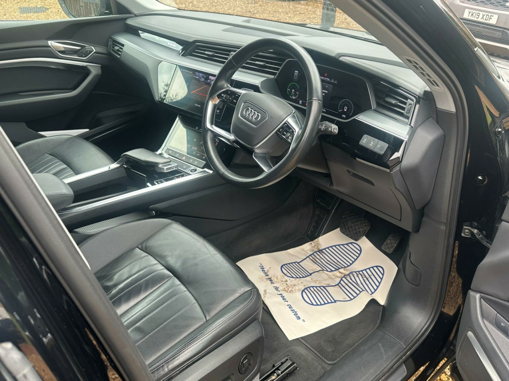 FINANCE AND PART EXCHANGE WELCOME 6 Months Rac Warranty With 12 Months Rac Breakdown. Outstanding Condition Throughout. BY APPOINTMENT ONLY PLEASE kw onboard charger, 2-zone automatic air conditioning, 20in alloy wheels - 5-arm design, 4-way lumbar support for front seats, abs - anti-lock braking system, ac and dc charging access point on drivers side and second ac charging access point on passenger side, ami - audi music interface - front, active vehicle alerting system - avas, adaptive air suspension, airbags - driver, anti-theft alarm, anti-theft wheel bolts and wheel loosening warning, audi connect, audi connect safety and service - e-call, audi drive select, audi pre-sense front and basic, audi smartphone interface includes wireless functionality, audi sound system, audi virtual cockpit, auto dimming and frameless rear view mirror, bluetooth interface, body coloured door mirrors, bumpers - contrasting, cloth headlining in lunar silver, compact e-tron charging system, cruise control with speed limiter, dab digital radio, door mirrors - electrically adjustable - heated - folding - automatically dimming with memory function with kerb view function for passenger side, door sills with aluminium inlays, electric windows - front and rear, electrically adjustable front seats including memory function for drivers seat, first aid kit and warning triangle, four-spoke multi-function leather steering wheel with paddles, front centre armrest, front and rear floor mats, gloss styling pack, heated front seats, household plug type g - gb, isofix child seat mounting for front passenger seat with front passenger airbag deactivation, isofix child seat mounting for outer rear seats, industry plug cee 32 a-230 v, inlays in graphite grey paint finish, keyless go, led headlights with function-on-demand preparation, led interior light package, led rear lights, lane departure warning, luggage compartment cover, luggage compartment floor, mmi navigation plus with mmi touch - twin touch screens with haptic feedback, manual steering column adjustment, mode 3 type 2-ac charging cable 22kw, parking system plus with 360 degree sensors and function-on-demand preparation, power operated tailgate, progressive steering, rear view camera, removable net partition, side airbags - front and head airbag system, sun visors with illuminated vanity mirrors, tool kit, tyre mobility system, tyre pressure warning light, vehicle inlet combo 2 - eu ccs, windscreen with acoustic glazing, privacy glass, twin leather - black