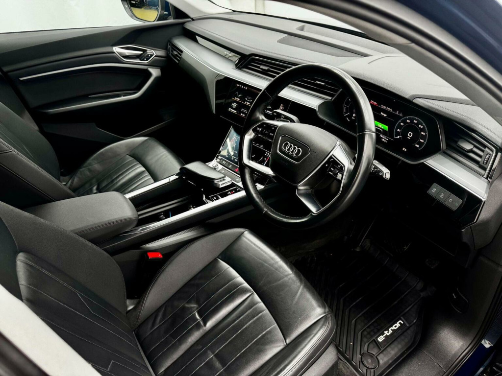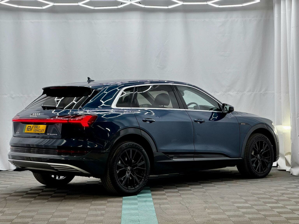 Erls Vehicles are delighted to present this 2020 (70) Audi e-tron 50 Technik quattro (Auto 5dr), a car we previously had the pleasure of supplying and have now warmly welcomed back to our forecourt. Finished in the elegant Galaxy Blue Metallic, complemented by a Full Black Leather Interior and upgraded 21 Gloss Black OEM alloys—fitted with excellent Continental tyres all round—this e-tron offers a superb blend of refinement, capability, and unmistakable Audi quality. The e-tron is widely regarded as one of the most comfortable and composed EVs on the road, with a suitable real-world range of 150–175 miles. Thanks to DC rapid charging up to 120 kW, a 10–80% charge can be achieved in approximately 25 minutes. Standard equipment is impressive, including Adaptive Air Suspension, LED Headlights, Virtual Cockpit, Heated Electric Front Seats, Twin Leather Upholstery, Interior Lighting Pack, Electric Folding Mirrors, Rear Camera with All-Round Sensors, Keyless Entry and Go, and dual electrically operated charge ports. The previous owner—who purchased the car from us—enhanced the specification with genuine 21 Launch Edition/Vorsprung alloys, Rear Privacy Glass, and OEM e-tron rubber floor and boot mats, all of which elevate both appearance and practicality. It has returned to us in the same excellent condition in which it was originally handed over. Accompanied by a full Audi service history, its next service is due in February 2026. The MOT is also valid until February 2026, with no advisories recorded on previous tests. Supplied complete with two keys, two charging cables, and all relevant documentation. The vehicle is available for viewing at our premises: the UKs first truly eco-friendly showroom, located in rural Northamptonshire. To ensure the highest level of service, viewings are by appointment only. All vehicles come with a three-month EV-specific warranty, with extensions available. Erls Vehicles specialise exclusively in electric cars, backed by first-hand EV expertise since 2015.