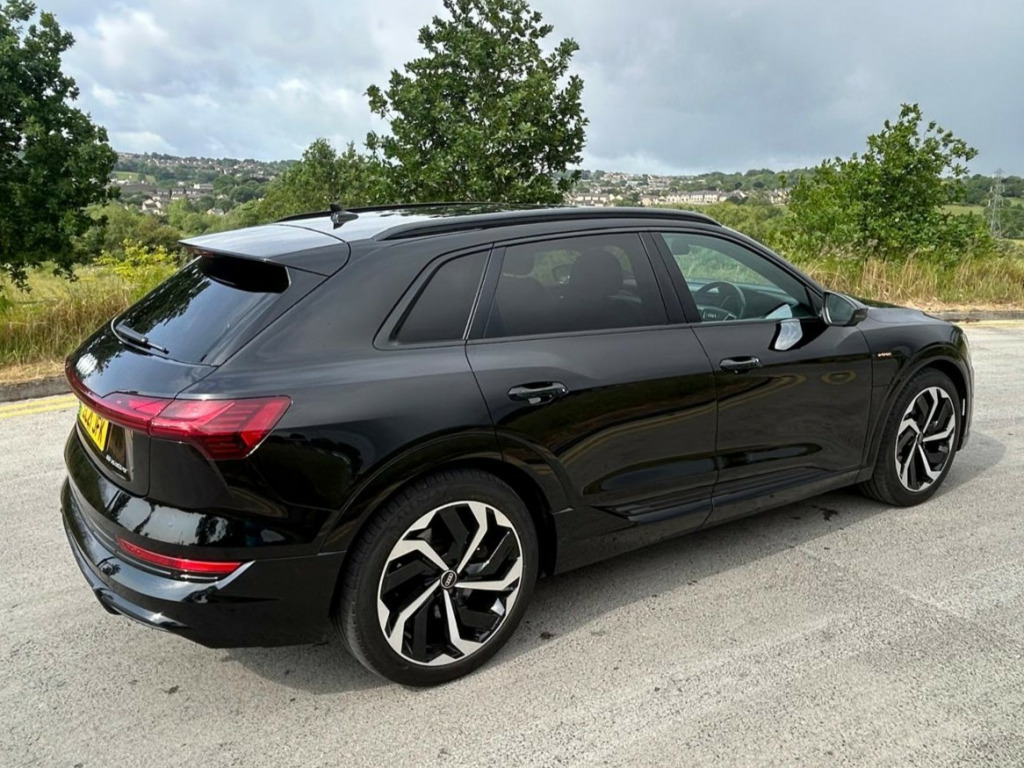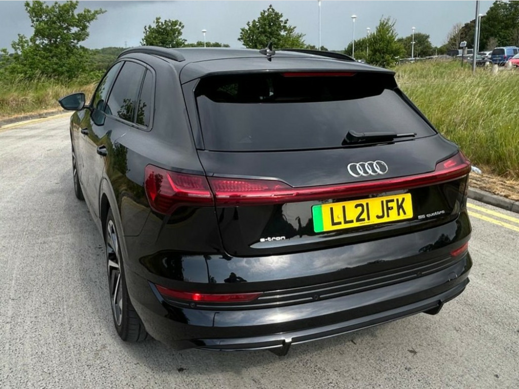 Audi E-Tron 95kwh 55Q Black Edition, 2021 21 plate , Automatic / Paddle shift, Quattro 4x4 , 122,000 miles, 408BHP, Heated electric front seats, Digital cockpit display, Flat bottom multifunction steering wheel, Bang & Olufen speakers, DAB radio / USB ports / Apple car play , Cruise control with lane assist, Heated front screen, HDD Sat Nav, Touch screen digital display, Front & rear cameras, Dual climate control, 360 degree camera / birds eye view parking, Xenon LED headlights, 21 diamond cut alloy wheels with bridge stone tyres, Electric windows & mirrors, Electric tailgate, Full main dealer history (Cheshire oaks), 2 original Audi chargers leads, 250 miles on a full charge, 4-Way Lumbar Support for Front Seats, isofix seats, Illuminated Door Sill Trims with Aluminium Inlays - Front and Rear with S Logo in Front, Cost £85,000 new