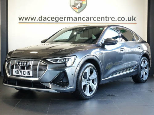 THIS AUTOMATIC AUDI E-TRON 55 S LINE IS FINISHED IN A STUNNING DAYTONA GREY AND BLACK S LINE LEATHER INTERIOR COMPLIMENTED WITH 21 INCH ALLOYS. IT COMES WITH SERVICE HISTORY + DIGITAL DASH + HEATED FRONT SEATS WITH ELECTRIC DRIVER MEMORY + SATELLITE NAVIGATION + REVERSE CAMERA + WIRELESS APPLE CAR PLAY / ANDROID AUTO + TOUCHSCREEN CLIMATE CONTROL SCREEN + DAB DIGITAL RADIO + IN CAR ENTERTAINMENT + AUTO LIGHTS AND WIPERS + MULTI FUNCTION STEERING WHEEL + ELECTRIC WINDOWS + ELECTRIC FOLDING AND HEATED DOOR MIRRORS. ------------FINANCE------------ ***NOT SURE YOU'RE ELIGIBLE FOR CAR FINANCE? *** CHECK TODAY USING THE FREE CAR FINANCE CHECKER ON OUR WEBSITE.** Dace Motor Group have a dedicated team of finance experts waiting to help with your enquiry. Over the past 30 years we have forged relationships with the country's largest and best finance houses. We are specialists in Hire Purchase (HP), Personal Contract Purchase (PCP) as well as assisting those with poor credit or previous credit problems. ------------ABOUT US------------ - At Dace German Car Centre, we are very proud to have been named the first Trading Standards Approved Car Retailer, with process and procedures developed with and applauded by them. We do recommend that customers RESERVE their choice of vehicle prior to making their trip to avoid potentially missing it. Visit our website https://www.dacegermancarcentre.co.uk/ At Dace German Car Centre Stockport we carry over 700 cars in group stock. TO E 11 kW Onboard Charger, 2 USB C Ports with Charging Functionity , 2-Zone Automatic Air Conditioning, 21in Alloy Wheels - 9.5J 15-Spoke Contra, 21in Alloy Wheels - 9.5J 5-Arm Turbine C, 3-Spoke Sport Multi-Function Steering Wh, 4-Way Lumbar Support for Front Seats, ABS - Anti-Lock Braking System, AC and DC Charging Access Point on Drive, Active Vehicle Alerting System - AVAS, Adaptive Air Sport Suspension, Airbags - Driver, AMI - Audi Music Interface - Front, Anti-Theft Alarm, Anti-Theft Wheel Bolts and Wheel Looseni, Audi Connect, Audi Connect Safety and Service - e-call, Audi Drive Select, Audi Matrix LED Headlights and Dynamic F, Audi Pre-Sense Front and Basic, Audi Smartphone Interface Inc