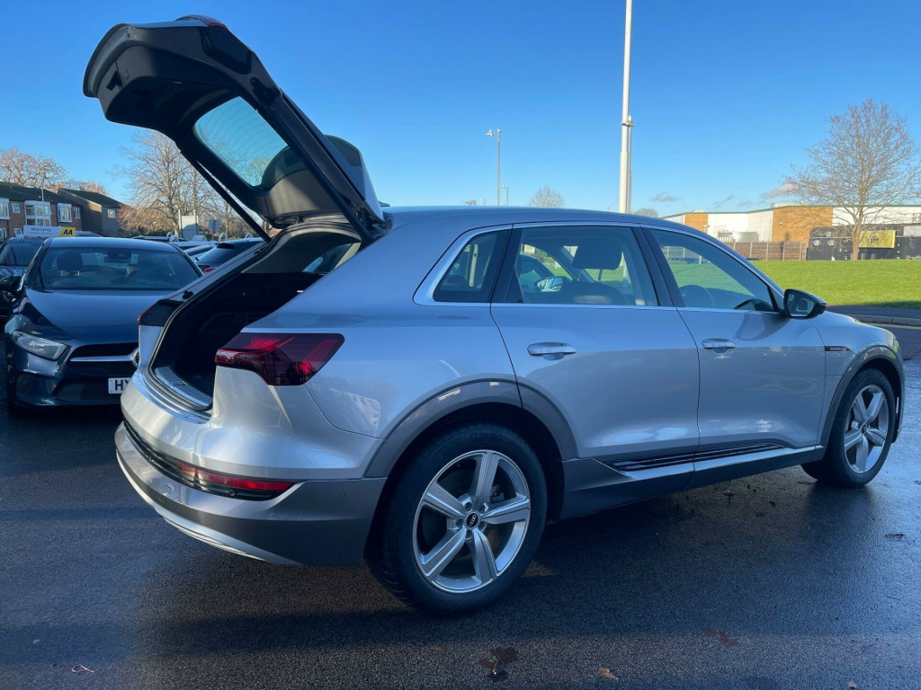 This 2021 Audi e-tron Technik boasts a full service history, with its last service completed on 7th November 2025 at 38,727 miles, and is offered with a 3 month warranty. This electric, four wheel drive vehicle presents a compelling package with a substantial 95 kWh battery offering a maximum range of 249 miles when new. It features electrically adjustable front seats with a memory function for the driver, dual zone automatic air conditioning, and a Bluetooth interface for seamless connectivity. Enjoy the convenience of heated front seats and a rear view camera to aid with parking.The Audi e-tron Technik provides an impressive driving experience, accelerating from 0 to 62mph in just 5.7 seconds, showcasing its dynamic performance. Charging is efficient, with a full charge at home taking approximately 14 hours on a 7kW charger, while public charging can achieve 80% capacity in as little as 40 minutes. This model also benefits from a large boot space, offering ample practicality for everyday needs and longer journeys. The vehicle comes with 12 months MOT provided on purchase, and has had only one owner since new.12-24 Months AA Warranty Upgrade Available. All Cars, Vans Come with 12 Months Mot Service and Safety checked.. 11 kW Onboard Charger, 2-Zone Automatic Air Conditioning, 20in Alloy Wheels - 5-Arm Design, 4-Way Lumbar Support for Front Seats, ABS - Anti-Lock Braking System, AC and DC Charging Access Point on Drivers Side and Second AC Charging Access Point on Passenger Side, AMI - Audi Music Interface - Front, Active Vehicle Alerting System - AVAS, Adaptive Air Suspension, Airbags - Driver, Anti-Theft Alarm, Anti-Theft Wheel Bolts and Wheel Loosening Warning, Audi Connect, Audi Connect Safety and Service - e-call, Audi Drive Select, Audi Pre-Sense Front and Basic, Audi Smartphone Interface Includes Wireless Functionality, Audi Sound System, Audi Virtual Cockpit, Auto Dimming and Frameless Rear View Mirror, Bluetooth Interface, Body Coloured Door Mirrors, Bumpers - Contrasting, Cloth Headlining in Lunar Silver, Compact e-tron Charging System, Cruise Control with Speed Limiter, DAB Digital Radio, Door Mirrors - Electrically Adjustable - Heated - Folding - Automatically Dimming with Memory Function with Kerb View Function for Passenger Side, Door Sills with Aluminium Inlays, Electric Windows - Front and Rear, Electrically Adjustable Front Seats including Memory Function for Drivers Seat, First Aid Kit and Warning Triangle, Four-Spoke Multi-Function Leather Steering Wheel with Paddles, Front Centre Armrest, Front and Rear Floor Mats, Gloss Styling Pack, Heated Front Seats, Household Plug Type G - GB, ISOFIX Child Seat Mounting for Front Passenger Seat with Front Passenger Airbag Deactivation, ISOFIX Child Seat Mounting for Outer Rear Seats, Industry Plug CEE 32 A-230 V, Inlays in Graphite Grey Paint Finish, Keyless Go, LED Headlights with Function-On-Demand Preparation, LED Interior Light Package, LED Rear Lights, Lane Departure Warning, Luggage Compartment Cover, Luggage Compartment Floor, MMI Navigation Plus with MMI Touch - Twin Touch Screens with Haptic Feedback, Manual Steering Column Adjustment, Mode 3 Type 2-AC Charging Cable 22kW, Parking System Plus with 360 Degree Sensors and Function-On-Demand Preparation, Power Operated Tailgate, Progressive Steering, Rear View Camera, Removable Net Partition, Side Airbags - Front and Head Airbag System, Sun Visors with Illuminated Vanity Mirrors, Tool Kit, Tyre Mobility System, Tyre Pressure Warning Light, Vehicle Inlet Combo 2 - EU CCS, Windscreen with Acoustic Glazing, Twin Leather - Black. Full service history