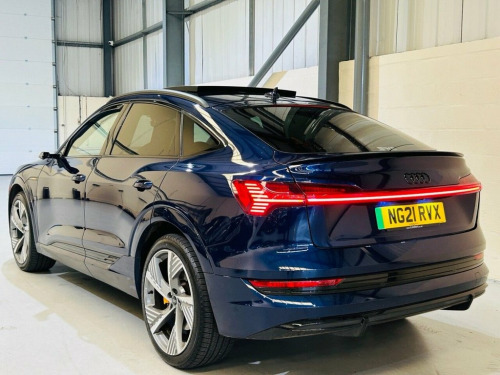 Audi e-tron 55 Vorsprung Sportback 5dr Electric Auto quattro 95kWh (408 ps) Registration: NG21RVX | 67,000 miles | Service History | Navarra Blue A premium all-electric SUV coupe offering outstanding performance, luxury specification and quattro all-wheel drive confidence. The e-tron 55 Vorsprung delivers 408 ps from its dual-motor setup, providing rapid acceleration, smooth power delivery and refined electric driving. The Vorsprung trim adds top-level technology, comfort and safety, making this a superb choice for modern electric motoring. Key Features 95kWh battery with dual-motor quattro all-wheel drive 408 ps electric performance Automatic transmission Vorsprung specification with high-level technology and comfort Virtual cockpit and touchscreen infotainment system Adaptive air suspension Heated seats and premium interior finish Advanced driver assistance systems LED headlights and distinctive e-tron styling Sportback design combining practicality with sleek looks Warranty Warranty packages available for additional cost. HPI & Finance HPI clear. Finance available with flexible packages. Part exchange welcome. Dealer Statement Nationwide delivery available. Get in touch for a walk-around video, test drive or more information. *Preparation fee £199 added to the list price of the vehicle. Navarra Blue, 11 kW Onboard Charger, 22in Alloy Wheels - 9.5J 5 Spoke Structu, 4-Way Lumbar Support for Front Seats, ABS - Anti-Lock Braking System, AC and DC Charging Access Point on Drive, AMI - Audi Music Interface - Front and R, Active Vehicle Alerting System - AVAS, Adaptive Air Sport Suspension, Airbags - Driver, Anti-Theft Alarm, Anti-Theft Wheel Bolts and Wheel Looseni, Audi Beam with e-tron Logo, Audi Connect, Audi Connect Safety and Service - e-call, Audi Drive Select, Audi Phone Box with Wireless Charging, Audi Pre-Sense Front and Basic, Audi Side Assist including Pre-Sense Rea, Audi Smartphone Interface Includes Wirel, Audi Virtual Cockpit Plus, Auto Dimming and Frameless Rear Vi