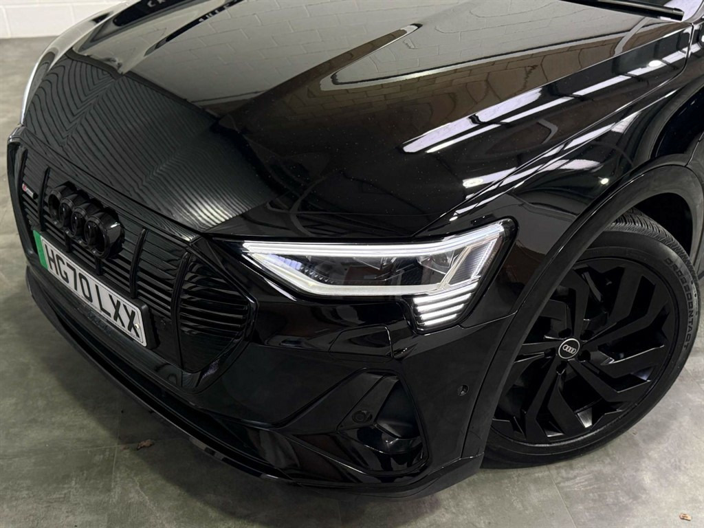 Full Service History, Sat Nav, Black Pack, Rear View Camera, Power Operated Tailgate,Vehicle Inlet Combo 2 - EU CCS,Tool Kit,Sun Visors with Illuminated Vanity Mirrors,Side Airbags - Front and Head Airbag System,Removable Net Partition,Rear View Camera,Progressive Steering,Privacy Glass,Parking System Plus with 360 Degree Sensors and Function-On-Demand Preparation,Operating Buttons in Black - Glass Look with Haptic Feedback,Mode 3 Type 2-AC Charging Cable 22kW,MMI Navigation Plus with MMI Touch - Twin Touch Screens with Haptic Feedback,Luggage Compartment Cover,Lane Departure Warning,LED Rear Lights,LED Interior Light Package,Keyless Go,Inlays - Darkened Matt Brushed Aluminium,Industry Plug CEE 32 A-230 V,Anti-Theft Alarm,Auto Dimming and Frameless Rear View Mirror,Audi Virtual Cockpit,Audi Sound System,Audi Smartphone Interface Includes Wireless Functionality,Audi Pre-Sense Front and Basic,Audi Phone Box with Wireless Charging,Audi Drive Select,Audi Connect Safety and Service - e-call,Audi Connect,Anti-Theft Wheel Bolts and Wheel Loosening Warning,Black Roof Rails,Airbags - Driver,Adaptive Air Sport Suspension,Active Vehicle Alerting System - AVAS,AMI - Audi Music Interface - Front and Rear,AC and DC Charging Access Point on Drivers Side and Second AC Charging Access Point on Passenger Side,ABS - Anti-Lock Braking System,4-Way Lumbar Support for Front Seats,3-Spoke Flat Bottom Multi-Function Leather Steering Wheel with Paddles for Recuperation,2-Zone Automatic Air Conditioning,Electric Windows - Front and Rear,Illuminated Door Sill Trims with Aluminium Inlays - Front and Rear with S Logo in Front,ISOFIX Child Seat Mounting for Outer Rear Seats,ISOFIX Child Seat Mounting for Front Passenger Seat with Front Passenger Airbag Deactivation,Household Plug Type G - GB,Heated Front Seats,Front and Rear Floor Mats,Front Sports Seats,First Aid Kit and Warning Triangle,Extended Twin Leather Pack,Electrically Adjustable Front Seats including Memory Function for Drivers Seat,11 kW Onboard Charger,Door Mirrors - Electrically Adjustable - Heated - Folding - Automatically Dimming with Memory Function with Kerb View Function for Passenger Side,Door Mirrors - Black,DAB Digital Radio,Cruise Control with Speed Limiter,Compact e-tron Charging System,Comfort Centre Armrest - Front,Cloth Headlining in Black,Body Coloured Bumpers,Black Styling Pack,Brilliant Black,Valcona Leather - Sports Seats with S Embossed Logo - Black with Rock Grey Stitching