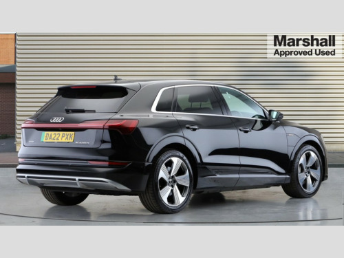 Audi E-Tron 230kW 50 Quattro 71kWh S Line 5dr Auto Audi connect safety and service (e-call), Audi drive select, Audi Smartphone Interface with wireless functionality, Audi virtual cockpit, Bluetooth interface, MMI navigation plus with MMI touch + Twin touch screens with haptic feedback, Parking system plus with 360 degree sensors and function on demand preparation, Power operated tailgate, Progressive steering, Rear view camera, 11KW onboard charger, AC and DC charging access point on drivers side and second AC charging access point on passenger side, Adaptive sport air suspension, Compact e-tron charging system, Household plug type G (GB), Industry plug CEE 32 A/230 V/6 h/long + straight, Mode 3 AC charging cable 22 kW, Quattro all wheel drive, 2 USB-C ports with charging functionality in the rear, Audi sound system with 6 channel amplifier, 180 watt amplifying capacity and 10 loudspeakers including subwoofer, DAB Digital radio, 3rd brake light, Audi matrix LED headlights and dynamic front and rear indicators with coming and leaving home animations, Body colour bumpers, Body coloured door mirrors, Daytime running lights, Frameless auto dimming interior rear view mirror, Front and rear illuminated door sill trims with aluminium inlays and S logo in front, LED rear lights, Rear side wing doors, Rear wiper, S Line badges on the front grille, S Line front and rear bumpers, S Line rear diffuser, Side and rear window privacy glass, Windscreen with acoustic glazing, 3 bench rear seats in 2nd row, 3 rear head restraints, 4-way lumbar support for front seats, 40:20:40 split folding rear bench seat, Black cloth headlining, Comfort front centre armrest, Electrically adjustable front seats - driver seat with memory, Front head restraints, Front passenger seat, Front/rear floor mats, Heated front seats, ISOFIX child seat mounting for front passenger seat with airbag deactivation, Isofix child seat mounting points on outer rear seats, Luggage compartment cover, Luggage compartment floor, Manually adjustable steering column, Operating buttons in black + glass look with haptic feedback, Removable net partition, Sunvisors with illuminated vanity mirrors, Vehicle inlet Combo 2, Gloss styling pack - E-tron, LED interior lighting pack - E-tron, Twin leather pack - E-tron, 3x3 point rear seatbelts, Active vehicle alerting system (AVAS), Audi pre sense front and basic, Child locks on rear doors, Seatbelt reminder + electric contact in buckle + advanced safety equipment, Side, front and head airbag system, Tyre pressure warning light, Warning triangle and first aid kit, Anti theft alarm, Anti-theft wheel bolts and wheel loosening detection, Keyless Go, Tool kit