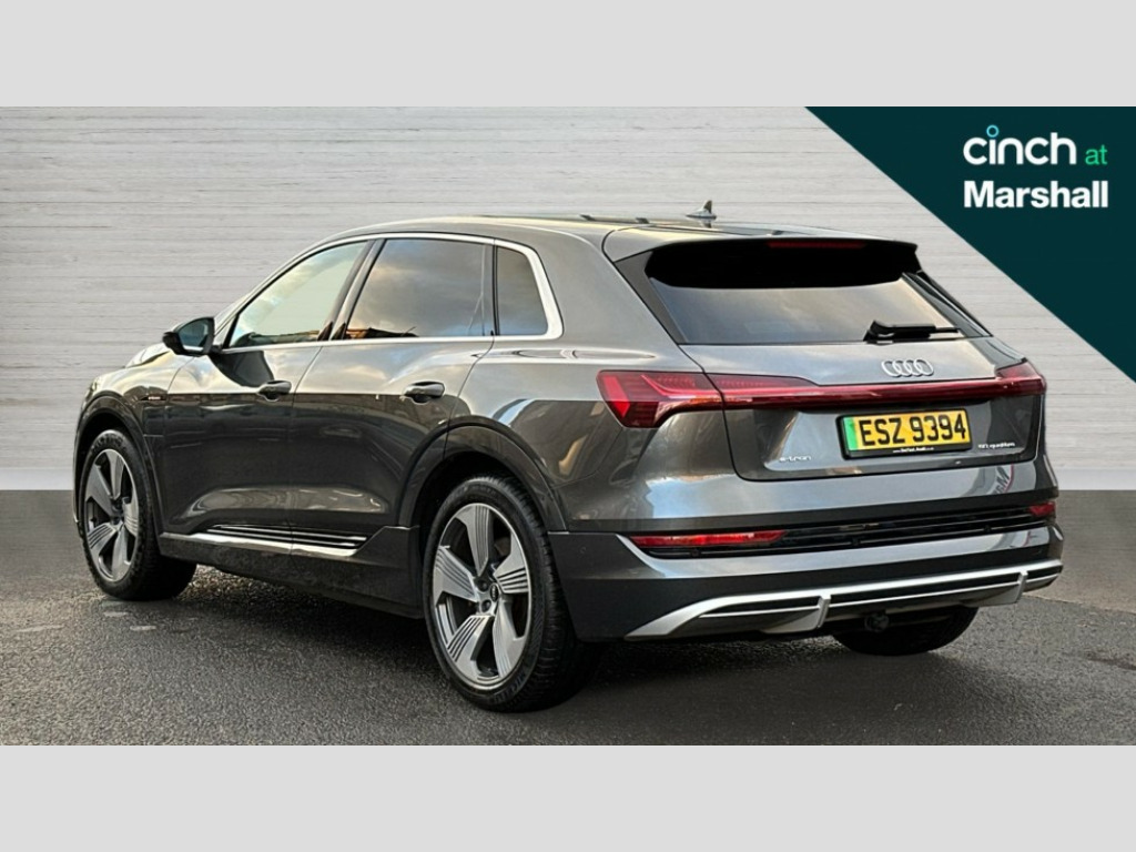 Audi E-Tron 230kW 50 Quattro 71kWh S Line 5dr Auto Audi connect safety and service (e-call), Audi drive select, Audi phone box with wireless charging, Audi Smartphone Interface with wireless functionality, Audi virtual cockpit, MMI navigation plus with MMI touch + Twin touch screens with haptic feedback, Parking system plus with 360 degree sensors and function on demand preparation, Power operated tailgate, Progressive steering, Rear view camera, 11KW onboard charger, AC and DC charging access point on drivers side and second AC charging access point on passenger side, Adaptive sport air suspension, Compact e-tron charging system, Household plug type G (GB), Industry plug CEE 32 A/230 V/6 h/long + straight, Mode 3 AC charging cable 22 kW, Quattro all wheel drive, Audi sound system with 6 channel amplifier, 180 watt amplifying capacity and 10 loudspeakers including subwoofer, DAB Digital radio, Front and rear audi music interface - 2USB-C ports with charge and rear data function in addition to 2 front ports to play music from portable storage, Audi matrix LED headlights and dynamic front and rear indicators with coming and leaving home animations, Body colour bumpers, Body coloured door mirrors, Frameless auto dimming interior rear view mirror, Front and rear illuminated door sill trims with aluminium inlays and S logo in front, LED rear lights, S Line badges on the front grille, S Line front and rear bumpers, S Line rear diffuser, Side and rear window privacy glass, 3 rear head restraints, 4-way lumbar support for front seats, Black cloth headlining, Comfort front centre armrest, Electrically adjustable front seats - driver seat with memory, Front head restraints, Front/rear floor mats, Heated front seats, ISOFIX child seat mounting for front passenger seat with airbag deactivation, Isofix child seat mounting points on outer rear seats, Luggage compartment cover, Operating buttons in black + glass look with haptic feedback, Removable net partition, Sunvisors with illuminated vanity mirrors, Valcona leather upholstery with front sports seats S embossed logo, Vehicle inlet Combo 2, Gloss styling pack - E-tron, LED interior lighting pack - E-tron, Twin leather pack - E-tron, 3x3 point rear seatbelts, Active vehicle alerting system (AVAS), Audi pre sense front and basic, Seatbelt reminder + electric contact in buckle + advanced safety equipment, Side, front and head airbag system, Warning triangle and first aid kit, Anti theft alarm, Anti-theft wheel bolts and wheel loosening detection, Keyless Go, Tool kit