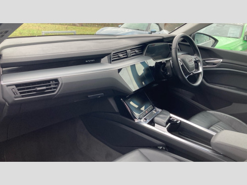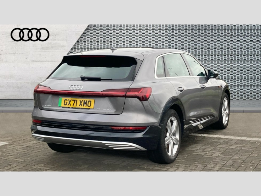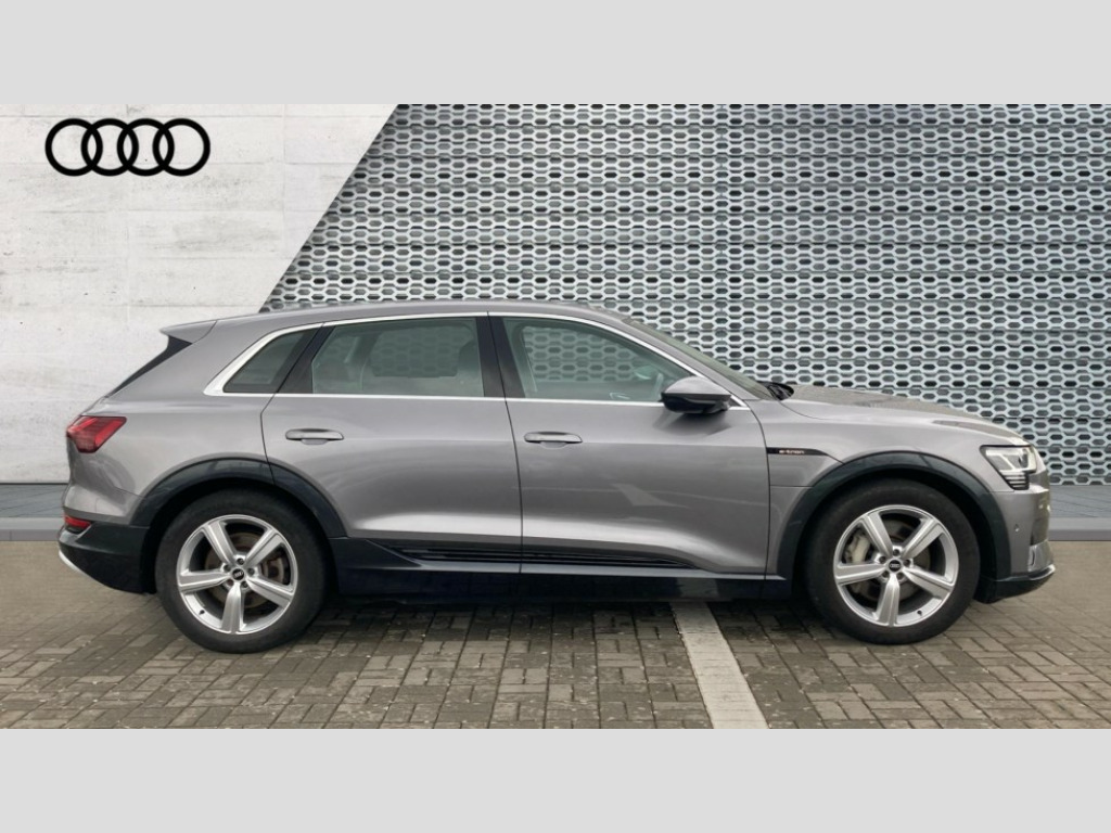 Audi E-Tron 230kW 50 Quattro 71kWh Technik 5dr Auto Audi connect safety and service (e-call), Audi drive select, Audi Smartphone Interface with wireless functionality, Audi virtual cockpit, Bluetooth interface, MMI navigation plus with MMI touch + Twin touch screens with haptic feedback, Parking system plus with 360 degree sensors and function on demand preparation, Power operated tailgate, Progressive steering, Rear view camera, 11KW onboard charger, AC and DC charging access point on drivers side and second AC charging access point on passenger side, Adaptive air suspension, Compact e-tron charging system, Household plug type G (GB), Industry plug CEE 32 A/230 V/6 h/long + straight, Mode 3 AC charging cable 22 kW, Quattro all wheel drive, Audi music interface - 2 USB ports with charger and data functions, Audi sound system with 6 channel amplifier, 180 watt amplifying capacity and 10 loudspeakers including subwoofer, DAB Digital radio, 3rd brake light, Body coloured door mirrors, Daytime running lights, Frameless auto dimming interior rear view mirror, LED headlights with function on demand preparation, LED rear lights, Rear side wing doors, Rear wiper, Windscreen with acoustic glazing, 3 rear head restraints, 4-way lumbar support for front seats, 40:20:40 split folding rear bench seat, Door sill trims with aluminium inlay, Electrically adjustable front seats - driver seat with memory, Four spoke multifunction leather steering wheel with shift paddles for recuperation, Front centre armrest, Front head restraints, Front passenger seat, Front/rear floor mats, Heated front seats, ISOFIX child seat mounting for front passenger seat with airbag deactivation, Isofix child seat mounting points on outer rear seats, Luggage compartment cover, Luggage compartment floor, Lunar silver cloth headlining, Manually adjustable steering column, Removable net partition, Sunvisors with illuminated vanity mirrors, Twin leather upholstery, Vehicle inlet Combo 2, Gloss styling pack - E-tron, LED interior lighting pack - E-tron, 3x3 point rear seatbelts, Active vehicle alerting system (AVAS), Audi pre sense front and basic, Child locks on rear doors, Seatbelt reminder + electric contact in buckle + advanced safety equipment, Side, front and head airbag system, Tyre pressure warning light, Warning triangle and first aid kit, Anti theft alarm, Anti-theft wheel bolts and wheel loosening detection, Keyless Go, Graphite grey paint finish inlays, Tool kit