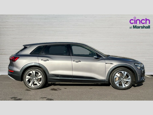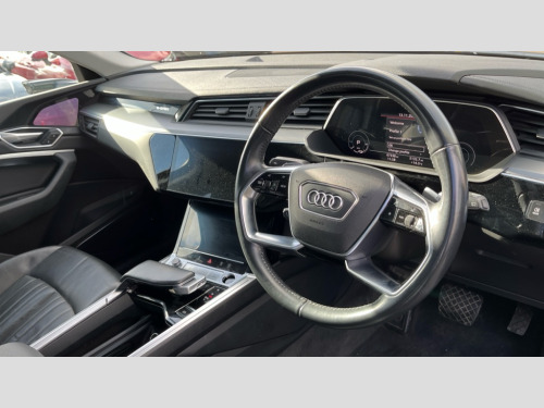 Audi E-Tron 300kW 55 Quattro 95kWh 5dr Auto Audi connect safety and service (e-call), Audi drive select, Audi phone box with wireless charging, Audi smartphone interface, Audi virtual cockpit, MMI navigation plus with MMI touch + Twin touch screens with haptic feedback, Power operated tailgate, Progressive steering, 11KW onboard charger, AC and DC charging access point on drivers side and second AC charging access point on passenger side, Adaptive air suspension, Compact e-tron charging system, Household plug type G (GB), Industry plug CEE 16 A/400 V/6 h/long + straight, Mode 3 AC charging cable 22 kW, Quattro all wheel drive, 2 USB ports, Audi music interface, DAB Digital radio, Body coloured door mirrors, Contrast finish bumpers, Frameless auto dimming interior rear view mirror, LED rear lights, 3 rear head restraints, 4-way lumbar support for front seats, Black carpet mats, Comfort front centre armrest, Door sill trims with aluminium inlay, Electrically adjustable front seats - driver seat with memory, Front head restraints, ISOFIX child seat mounting for front passenger seat with airbag deactivation, Isofix child seat mounting points on outer rear seats, Luggage compartment cover, Operating buttons in black + glass look with haptic feedback, Removable net partition, Sunvisors with illuminated vanity mirrors, Vehicle inlet Combo 2, Gloss styling pack - E-tron, 3x3 point rear seatbelts, Audi pre sense front and basic, Seatbelt reminder + electric contact in buckle + advanced safety equipment, Side, front and head airbag system, Warning triangle and first aid kit, Anti theft alarm, Anti-theft wheel bolts and wheel loosening detection, Keyless Go, Tool kit