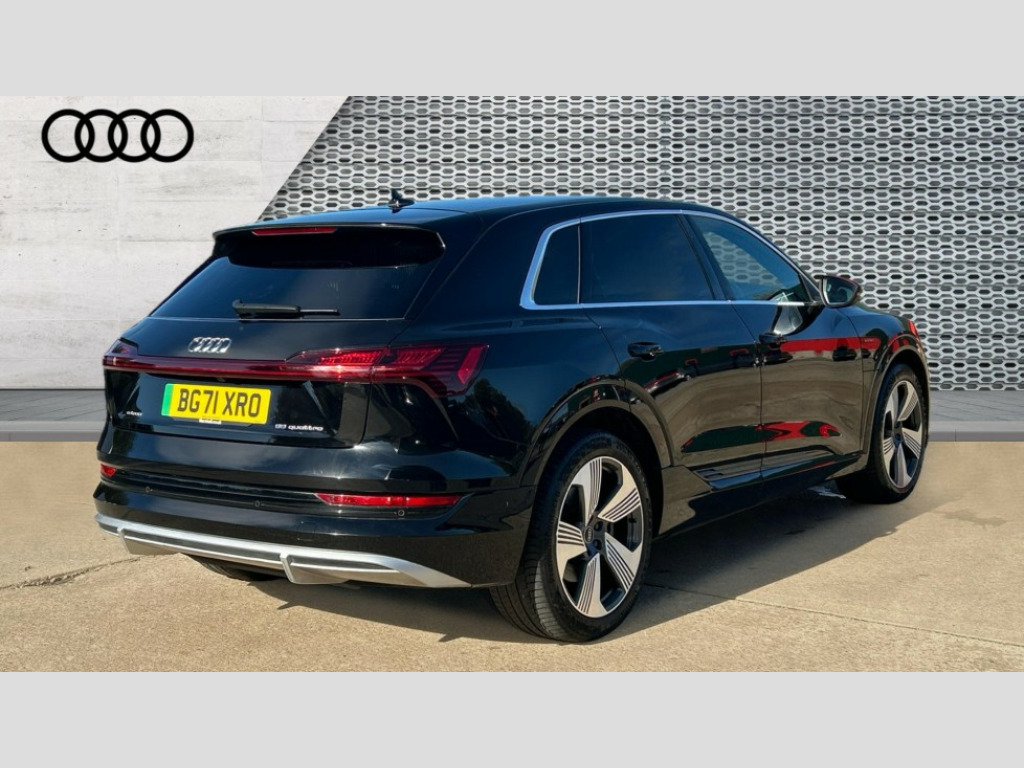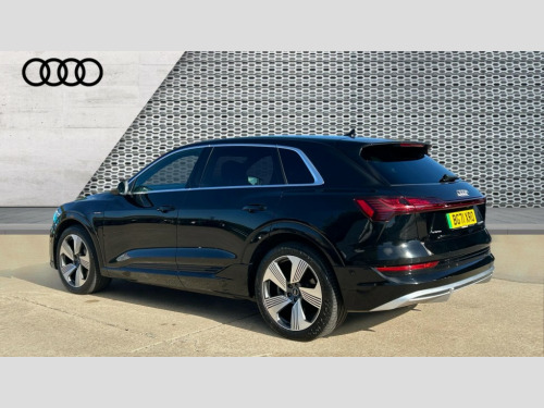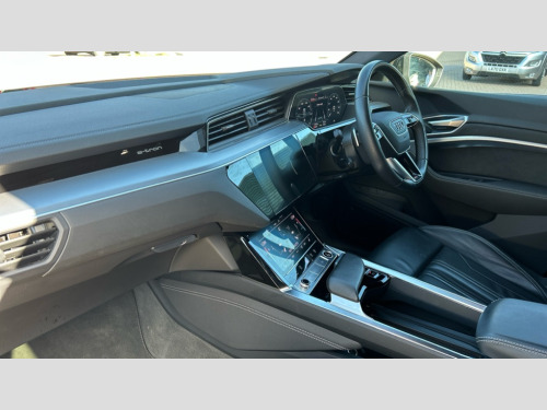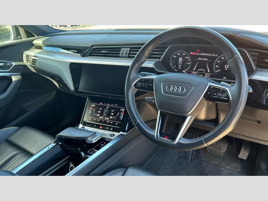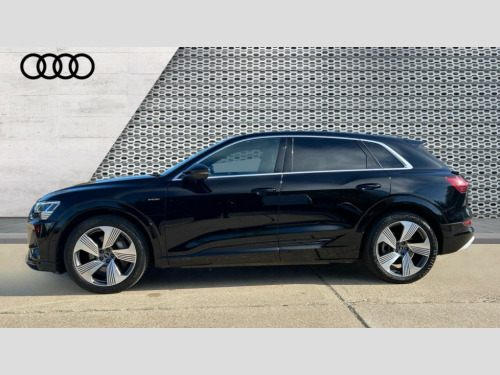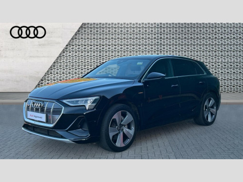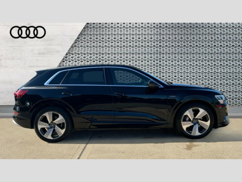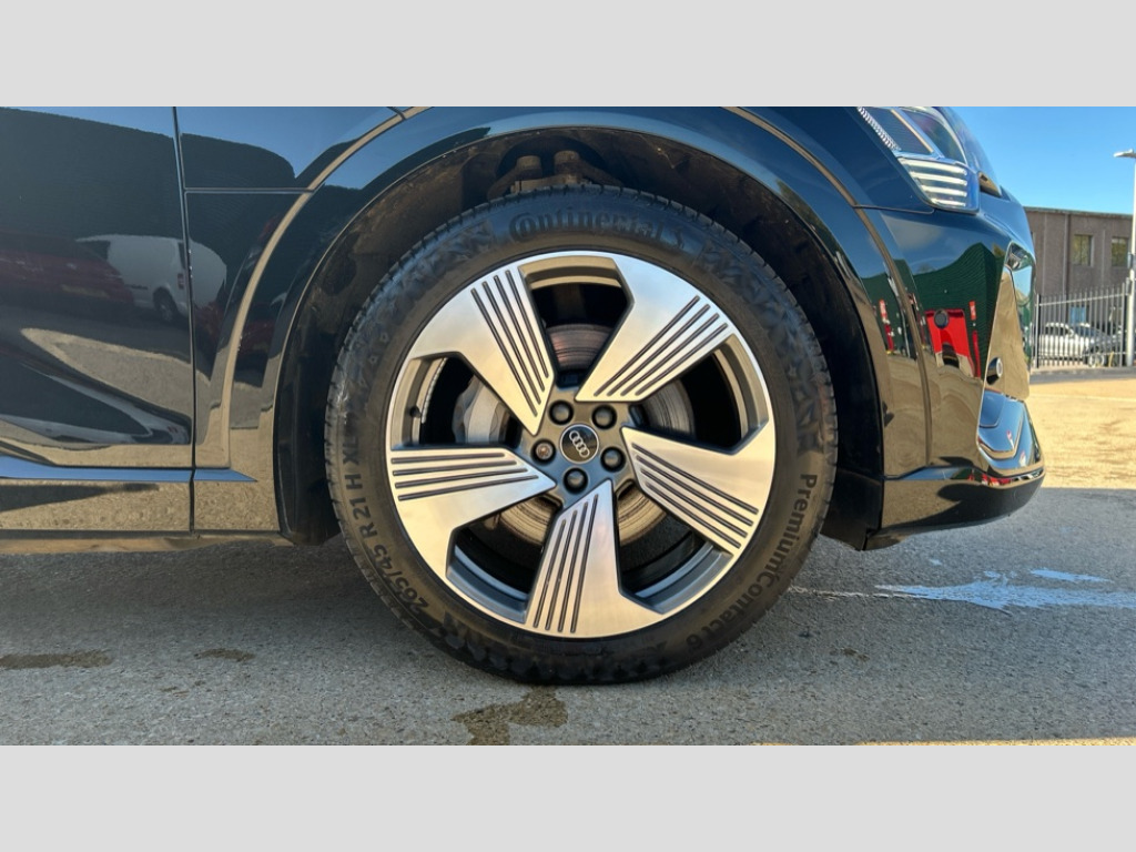 Audi E-Tron 300kW 55 Quattro 95kWh S Line 5dr Auto Audi connect safety and service (e-call), Audi drive select, Audi Smartphone Interface with wireless functionality, Audi virtual cockpit, Bluetooth interface, MMI navigation plus with MMI touch + Twin touch screens with haptic feedback, Parking system plus with 360 degree sensors and function on demand preparation, Power operated tailgate, Progressive steering, Rear view camera, 11KW onboard charger, AC and DC charging access point on drivers side and second AC charging access point on passenger side, Adaptive sport air suspension, Compact e-tron charging system, Household plug type G (GB), Industry plug CEE 32 A/230 V/6 h/long + straight, Mode 3 AC charging cable 22 kW, Quattro all wheel drive, 2 USB-C ports with charging functionality in the rear, Audi sound system with 6 channel amplifier, 180 watt amplifying capacity and 10 loudspeakers including subwoofer, DAB Digital radio, 3rd brake light, Audi matrix LED headlights and dynamic front and rear indicators with coming and leaving home animations, Body colour bumpers, Body coloured door mirrors, Daytime running lights, Frameless auto dimming interior rear view mirror, Front and rear illuminated door sill trims with aluminium inlays and S logo in front, LED rear lights, Rear side wing doors, Rear wiper, S Line badges on the front grille, S Line front and rear bumpers, S Line rear diffuser, Side and rear window privacy glass, Windscreen with acoustic glazing, 3 rear head restraints, 4-way lumbar support for front seats, 40:20:40 split folding rear bench seat, Black cloth headlining, Comfort front centre armrest, Electrically adjustable front seats - driver seat with memory, Front head restraints, Front passenger seat, Front/rear floor mats, Heated front seats, ISOFIX child seat mounting for front passenger seat with airbag deactivation, Isofix child seat mounting points on outer rear seats, Luggage compartment cover, Luggage compartment floor, Manually adjustable steering column, Operating buttons in black + glass look with haptic feedback, Removable net partition, Sunvisors with illuminated vanity mirrors, Vehicle inlet Combo 2, Gloss styling pack - E-tron, LED interior lighting pack - E-tron, Twin leather pack - E-tron, 3x3 point rear seatbelts, Active vehicle alerting system (AVAS), Audi pre sense front and basic, Child locks on rear doors, Seatbelt reminder + electric contact in buckle + advanced safety equipment, Side, front and head airbag system, Tyre pressure warning light, Warning triangle and first aid kit, Anti theft alarm, Anti-theft wheel bolts and wheel loosening detection, Keyless Go, Tool kit