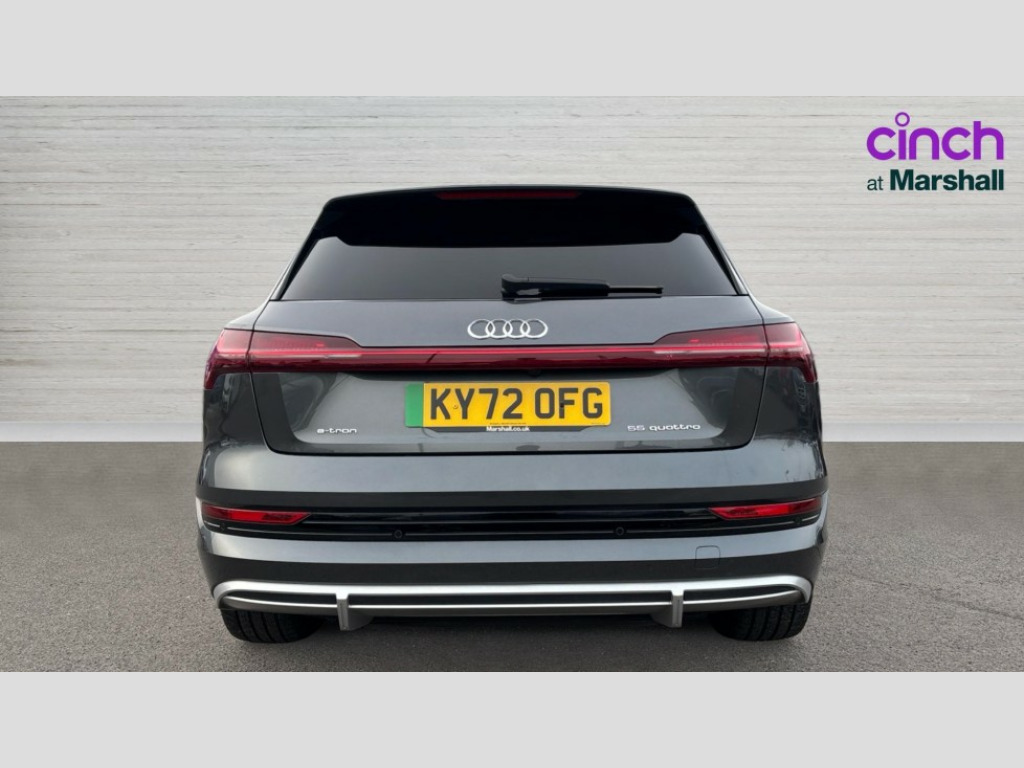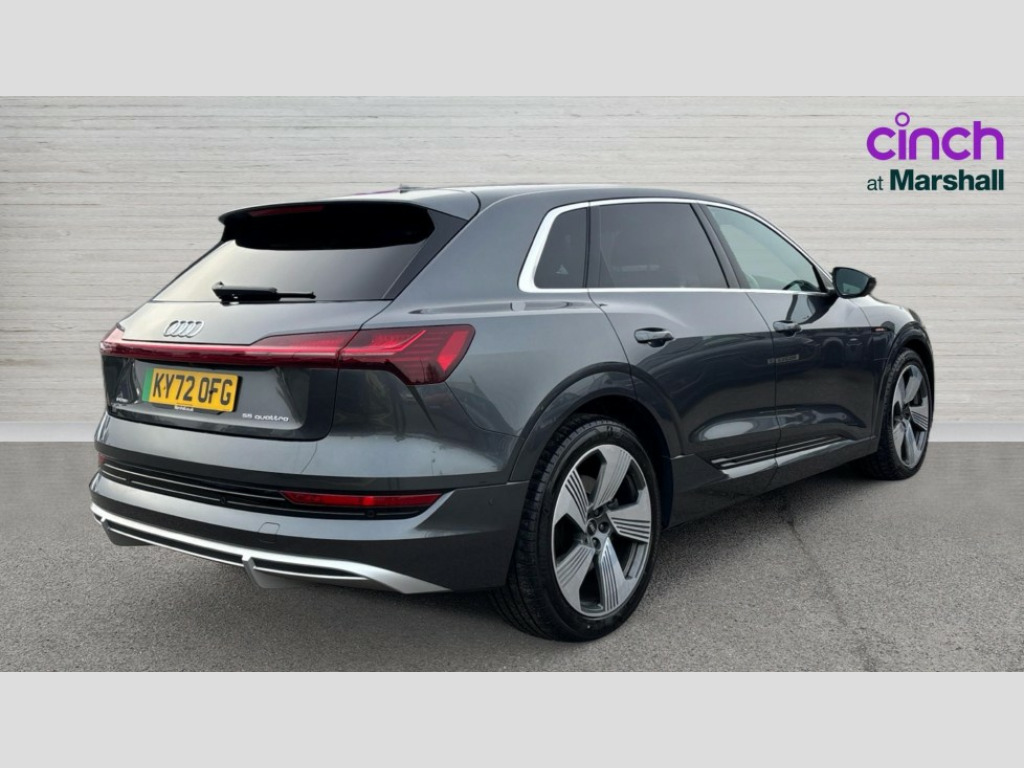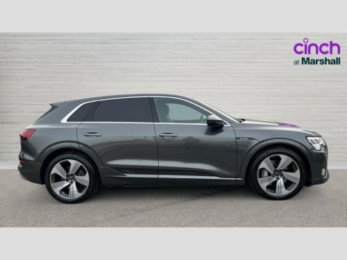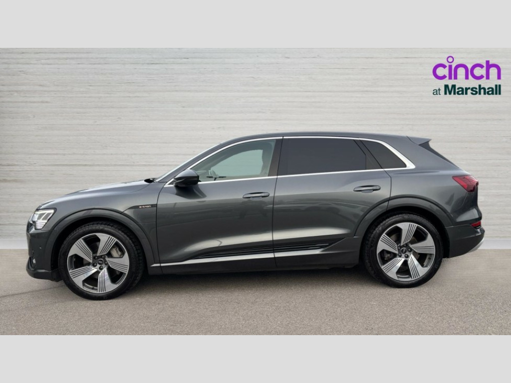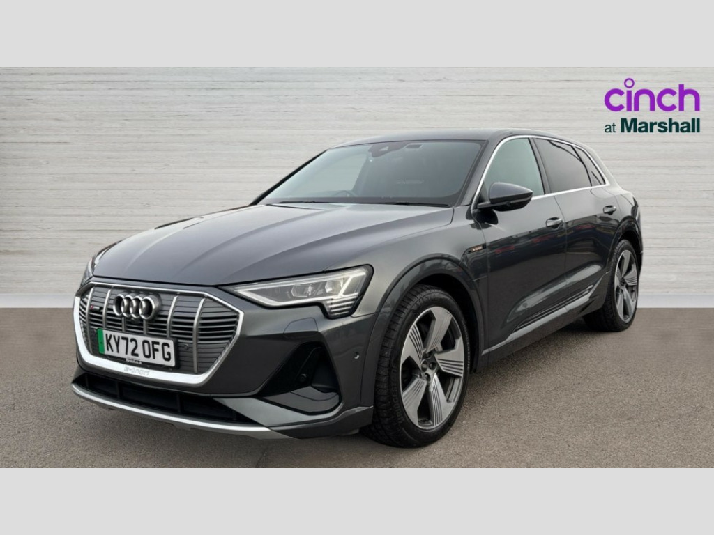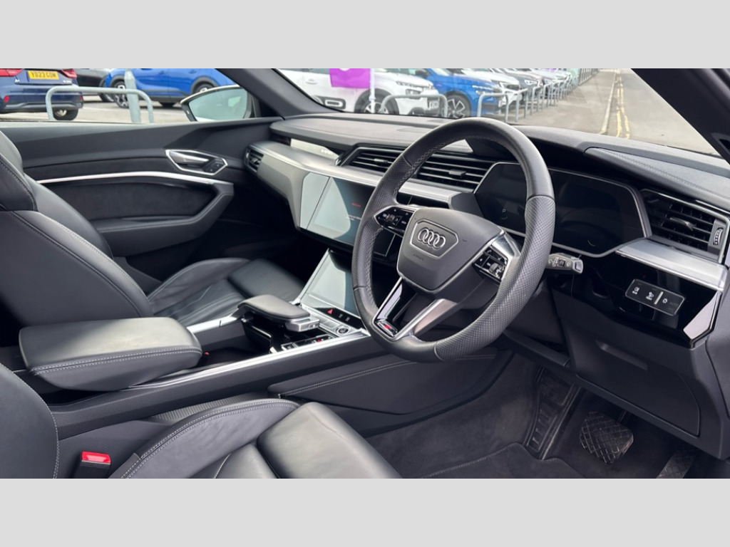 Audi E-Tron 300kW 55 Quattro 95kWh S Line 5dr Auto Audi connect safety and service (e-call), Audi drive select, Audi Smartphone Interface with wireless functionality, Audi virtual cockpit, Bluetooth interface, MMI navigation plus with MMI touch + Twin touch screens with haptic feedback, Parking system plus with 360 degree sensors and function on demand preparation, Power operated tailgate, Progressive steering, Rear view camera, 11KW onboard charger, AC and DC charging access point on drivers side and second AC charging access point on passenger side, Adaptive sport air suspension, Compact e-tron charging system, Household plug type G (GB), Industry plug CEE 32 A/230 V/6 h/long + straight, Mode 3 AC charging cable 22 kW, Quattro all wheel drive, 2 USB-C ports with charging functionality in the rear, Audi sound system with 6 channel amplifier, 180 watt amplifying capacity and 10 loudspeakers including subwoofer, DAB Digital radio, 3rd brake light, Audi matrix LED headlights and dynamic front and rear indicators with coming and leaving home animations, Body colour bumpers, Body coloured door mirrors, Daytime running lights, Frameless auto dimming interior rear view mirror, Front and rear illuminated door sill trims with aluminium inlays and S logo in front, LED rear lights, Rear side wing doors, Rear wiper, S Line badges on the front grille, S Line front and rear bumpers, S Line rear diffuser, Side and rear window privacy glass, Windscreen with acoustic glazing, 3 bench rear seats in 2nd row, 3 rear head restraints, 4-way lumbar support for front seats, 40:20:40 split folding rear bench seat, Black cloth headlining, Comfort front centre armrest, Electrically adjustable front seats - driver seat with memory, Front head restraints, Front passenger seat, Front/rear floor mats, Heated front seats, ISOFIX child seat mounting for front passenger seat with airbag deactivation, Isofix child seat mounting points on outer rear seats, Luggage compartment cover, Luggage compartment floor, Manually adjustable steering column, Operating buttons in black + glass look with haptic feedback, Removable net partition, Sunvisors with illuminated vanity mirrors, Vehicle inlet Combo 2, Gloss styling pack - E-tron, LED interior lighting pack - E-tron, Twin leather pack - E-tron, 3x3 point rear seatbelts, Active vehicle alerting system (AVAS), Audi pre sense front and basic, Child locks on rear doors, Seatbelt reminder + electric contact in buckle + advanced safety equipment, Side, front and head airbag system, Tyre pressure warning light, Warning triangle and first aid kit, Anti theft alarm, Anti-theft wheel bolts and wheel loosening detection, Keyless Go, Tool kit