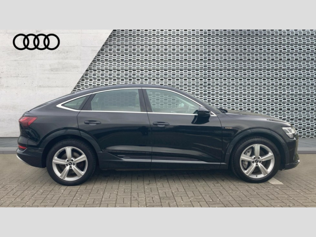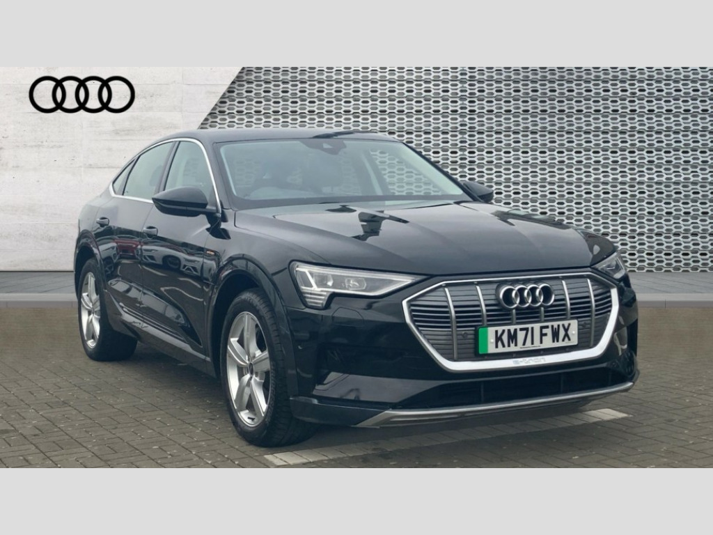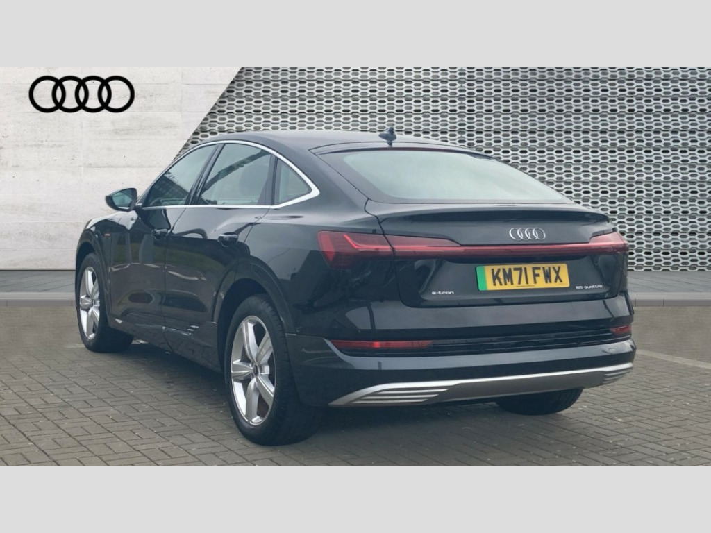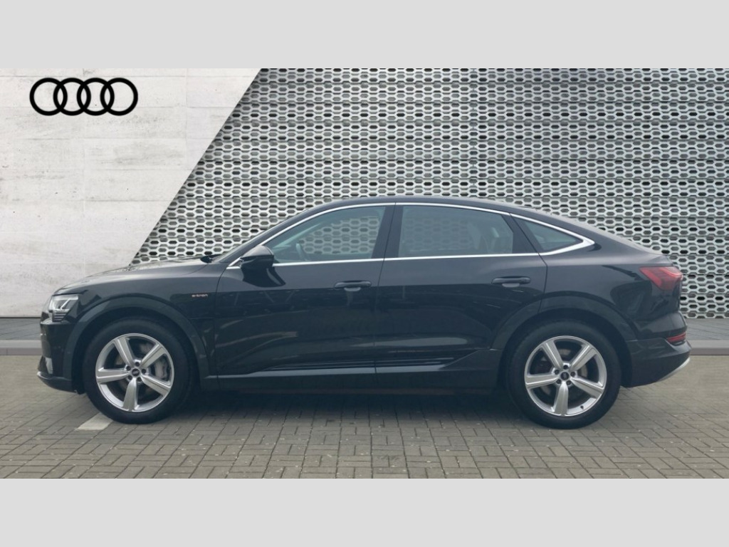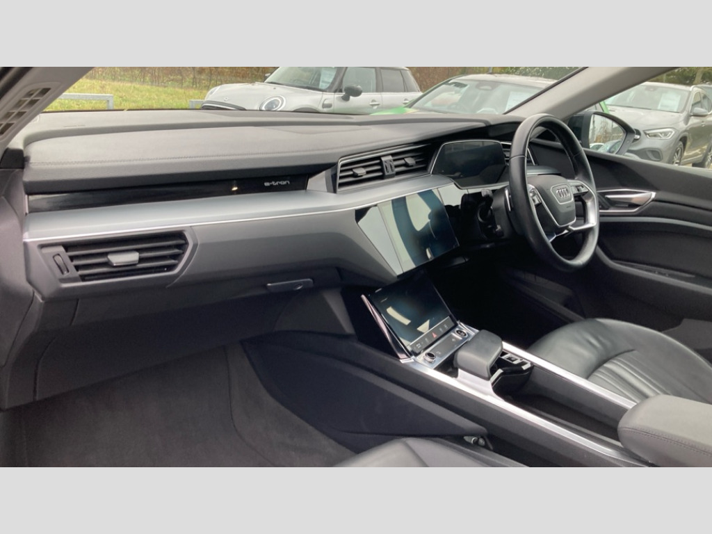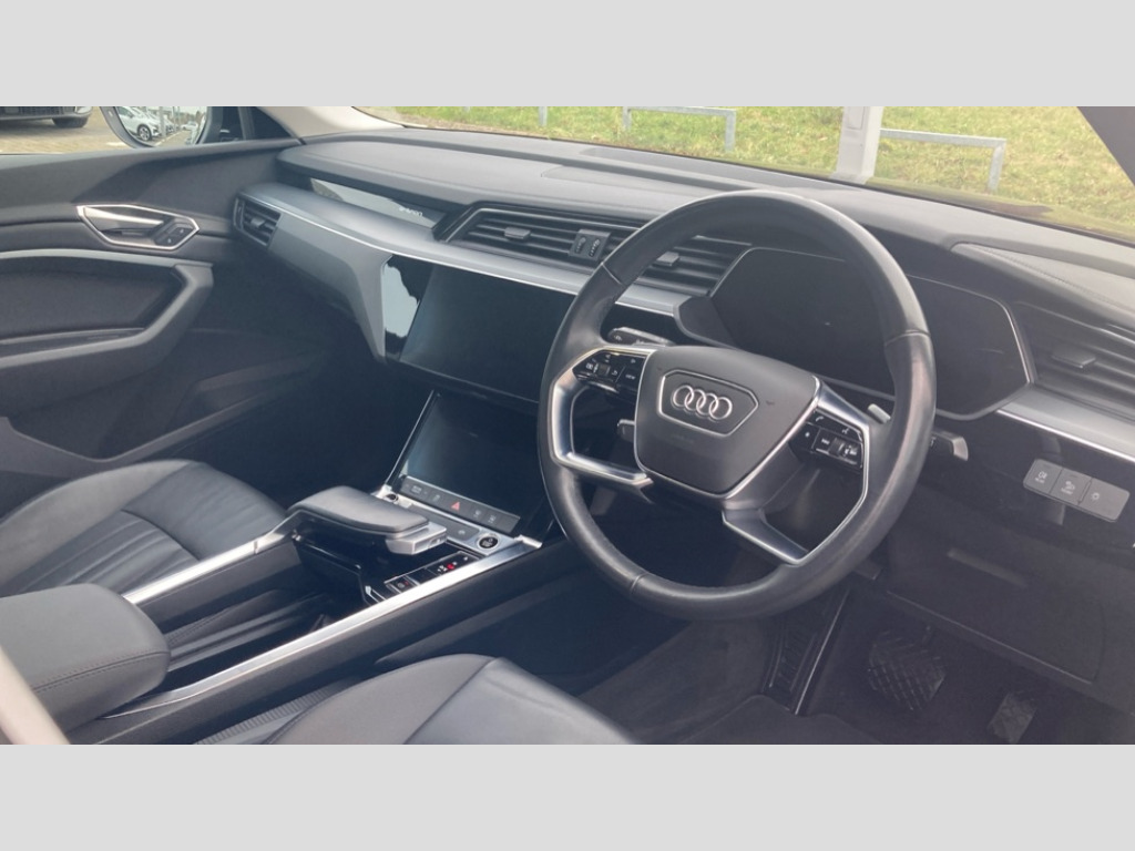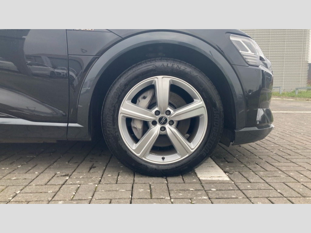 Audi E-Tron 300kW 55 Quattro 95kWh Technik 5dr Auto [22kWCh] Audi connect safety and service (e-call), Audi drive select, Audi Smartphone Interface with wireless functionality, Audi virtual cockpit, Bluetooth interface, MMI navigation plus with MMI touch + Twin touch screens with haptic feedback, Parking system plus with 360 degree sensors and function on demand preparation, Power operated tailgate, Progressive steering, Rear view camera, 22kW onboard charger, AC and DC charging access point on drivers side and second AC charging access point on passenger side, Adaptive air suspension, Compact e-tron charging system, Household plug type G (GB), Industry plug CEE 32 A/230 V/6 h/long + straight, Mode 3 AC charging cable 22 kW, Quattro all wheel drive, Audi music interface - 2 USB ports with charger and data functions, Audi sound system with 6 channel amplifier, 180 watt amplifying capacity and 10 loudspeakers including subwoofer, DAB Digital radio, 3rd brake light, Body coloured door mirrors, Daytime running lights, Frameless auto dimming interior rear view mirror, LED headlights with function on demand preparation, LED rear lights, Rear boot lip spoiler, Rear side wing doors, Rear wiper, Windscreen with acoustic glazing, 3 rear head restraints, 4-way lumbar support for front seats, 40:20:40 split folding rear bench seat, Door sill trims with aluminium inlay, Electrically adjustable front seats - driver seat with memory, Four spoke multifunction leather steering wheel with shift paddles for recuperation, Front centre armrest, Front head restraints, Front passenger seat, Front/rear floor mats, Heated front seats, ISOFIX child seat mounting for front passenger seat with airbag deactivation, Isofix child seat mounting points on outer rear seats, Luggage compartment cover, Luggage compartment floor, Lunar silver cloth headlining, Manually adjustable steering column, Sunvisors with illuminated vanity mirrors, Twin leather upholstery, Vehicle inlet Combo 2, Gloss styling pack - E-tron, LED interior lighting pack - E-tron, 3x3 point rear seatbelts, Active vehicle alerting system (AVAS), Audi pre sense front and basic, Child locks on rear doors, Seatbelt reminder + electric contact in buckle + advanced safety equipment, Side, front and head airbag system, Tyre pressure warning light, Warning triangle and first aid kit, Anti theft alarm, Anti-theft wheel bolts and wheel loosening detection, Keyless Go, Graphite grey paint finish inlays, Tool kit