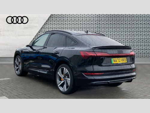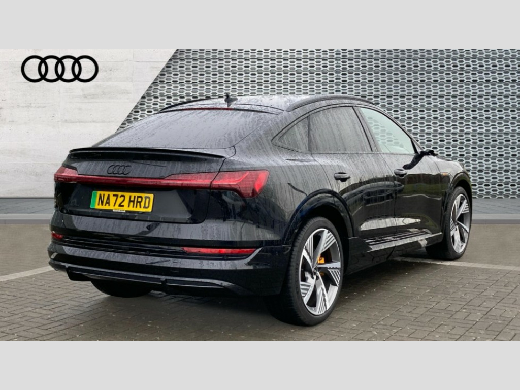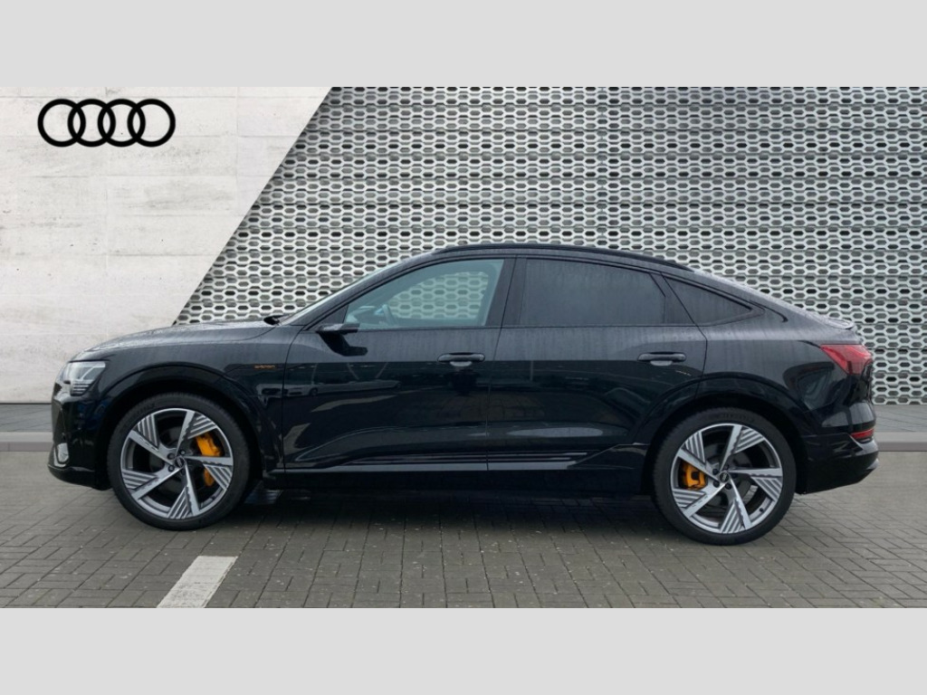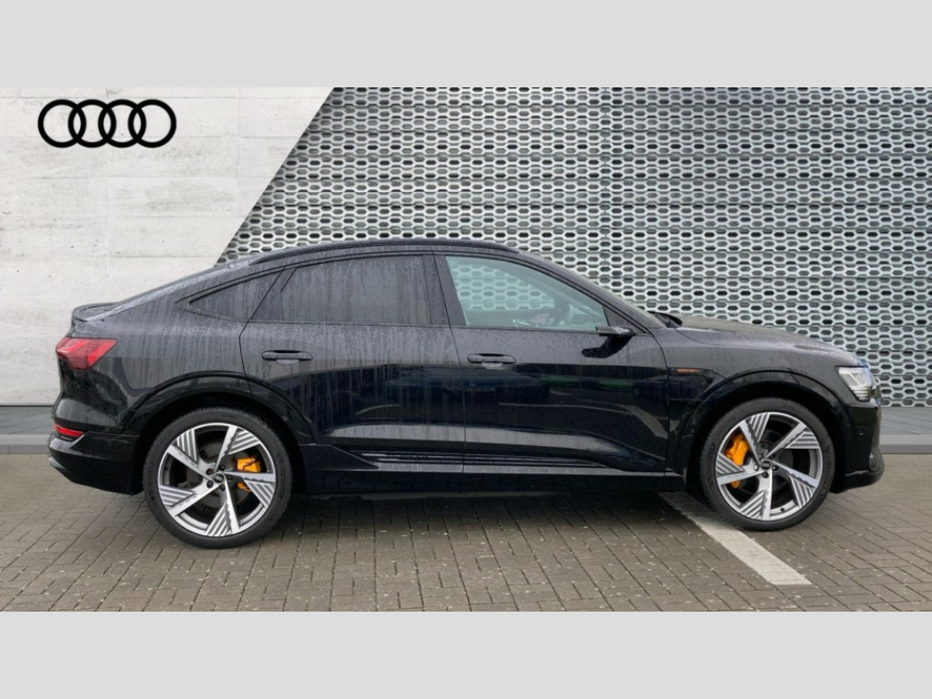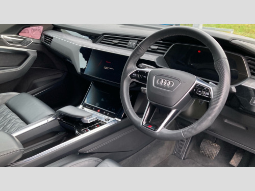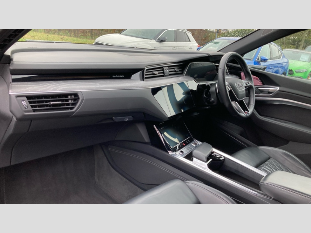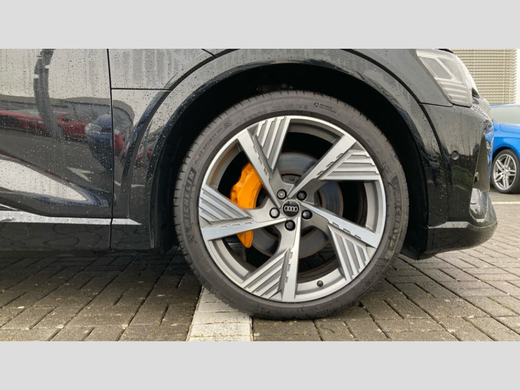 Audi E-Tron 300kW 55 Quattro 95kWh Vorsprung 5dr Auto 360 degree view camera, Audi connect safety and service (e-call), Audi drive select, Audi Smartphone Interface with wireless functionality, Audi virtual cockpit plus, Bluetooth interface, Head up Display, MMI navigation plus with MMI touch + Twin touch screens with haptic feedback, Parking system plus with 360 degree sensors and function on demand preparation, Power door closure, Power operated tailgate, Progressive steering, 11KW onboard charger, AC and DC charging access point on drivers side and second AC charging access point on passenger side, Adaptive sport air suspension, Compact e-tron charging system, Household plug type G (GB), Industry plug CEE 32 A/230 V/6 h/long + straight, Mode 3 AC charging cable 22 kW, Quattro all wheel drive, 2 USB-C ports with charging functionality in the rear, Bang & Olufsen premium sound system, DAB Digital radio, 3rd brake light, Audi beam with e-tron logo, Black door mirrors, Black roof rails, Body colour bumpers, Digital Matrix lights with dynamic front & rear indicators and coming/leaving home customisable animations, Fixed panoramic glass roof, Frameless auto dimming interior rear view mirror, Front and rear illuminated door sill trims with aluminium inlays and S logo in front, Gloss black finish for the exterior Audi Rings and e-tron logo at the rear, LED rear lights, Rear boot lip spoiler, Rear side wing doors, Rear wiper, Side and rear window privacy glass, Windscreen with acoustic glazing, 3 bench rear seats in 2nd row, 3 rear head restraints, 4 zone deluxe automatic climate control, 4-way lumbar support for front seats, 40:20:40 split folding rear bench seat, Black cloth headlining, Comfort front centre armrest, Comfort remote pre conditioning, Electrically adjustable front seats - driver seat with memory, Front head restraints, Front passenger seat, Front/rear floor mats, Heated front and rear seats, Heated leather multi function steering wheel with paddles for recuperation, ISOFIX child seat mounting for front passenger seat with airbag deactivation, Isofix child seat mounting points on outer rear seats, Luggage compartment cover, Luggage compartment floor, Manually adjustable steering column, Operating buttons in black + glass look with haptic feedback, Sunvisors with illuminated vanity mirrors, Vehicle inlet Combo 2, Black styling pack - E-tron, City assist pack - E-tron, Extended twin leather pack - E-tron, Gloss styling pack - E-tron, Multi-coloured extended LED interior lighting pack - E-tron, Tour pack - E-tron, 3x3 point rear seatbelts, Active vehicle alerting system (AVAS), Audi pre sense front and basic, Child locks on rear doors, Orange painted E-tron brake calipers, Rear side airbags with illuminated seat buckles, Seatbelt reminder + electric contact in buckle + advanced safety equipment, Side, front and head airbag system, Tyre pressure warning light, Warning triangle and first aid kit, Advanced key, Anti theft alarm, Anti-theft wheel bolts and wheel loosening detection, Keyless Go, 22" 5 spoke structured matt titanium finish diamond cut audi sport alloy wheels, Tool kit