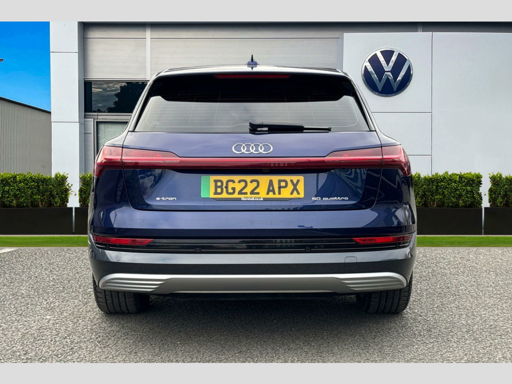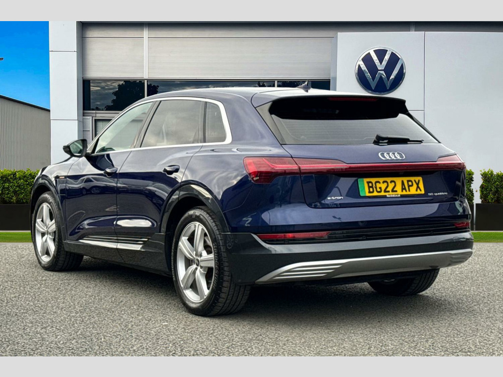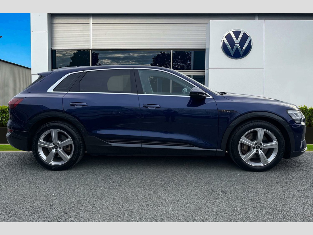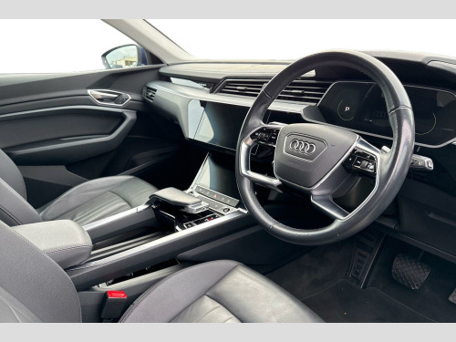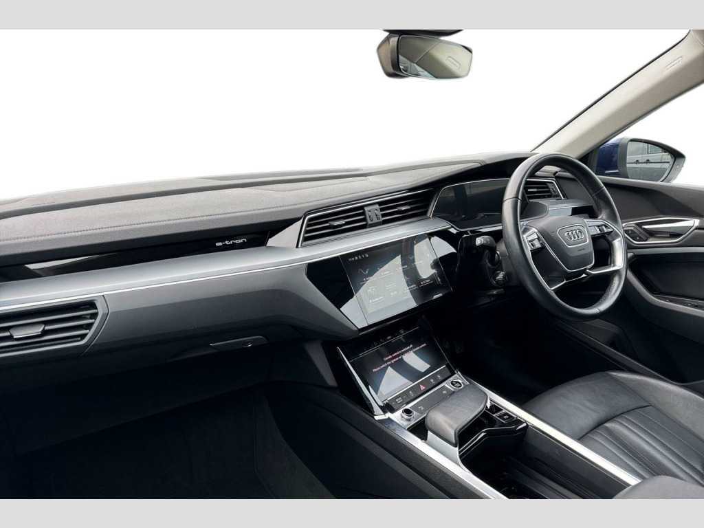 *Range depicts brand new model. Current maximum range may differ in line with battery depreciation. 11 kW Onboard Charger, 2-Zone Automatic Air Conditioning, 20in Alloy Wheels - 5-Arm Design, 4-Way Lumbar Support for Front Seats, ABS - Anti-Lock Braking System, AC and DC Charging Access Point on Drivers Side and Second AC Charging Access Point on Passenger Side, AMI - Audi Music Interface - Front, Active Vehicle Alerting System - AVAS, Adaptive Air Suspension, Airbags - Driver, Anti-Theft Alarm, Anti-Theft Wheel Bolts and Wheel Loosening Warning, Audi Connect, Audi Connect Safety and Service - e-call, Audi Drive Select, Audi Pre-Sense Front and Basic, Audi Smartphone Interface Includes Wireless Functionality, Audi Sound System, Audi Virtual Cockpit, Auto Dimming and Frameless Rear View Mirror, Bluetooth Interface, Body Coloured Door Mirrors, Bumpers - Contrasting, Cloth Headlining in Lunar Silver, Compact e-tron Charging System, Cruise Control with Speed Limiter, DAB Digital Radio, Door Mirrors - Electrically Adjustable - Heated - Folding - Automatically Dimming with Memory Function with Kerb View Function for Passenger Side, Door Sills with Aluminium Inlays, Electric Windows - Front and Rear, Electrically Adjustable Front Seats including Memory Function for Drivers Seat, First Aid Kit and Warning Triangle, Four-Spoke Multi-Function Leather Steering Wheel with Paddles, Front Centre Armrest, Front and Rear Floor Mats, Gloss Styling Pack, Heated Front Seats, Household Plug Type G - GB, ISOFIX Child Seat Mounting for Front Passenger Seat with Front Passenger Airbag Deactivation, ISOFIX Child Seat Mounting for Outer Rear Seats, Industry Plug CEE 32 A-230 V, Inlays in Graphite Grey Paint Finish, Keyless Go, LED Headlights with Function-On-Demand Preparation, LED Interior Light Package, LED Rear Lights, Lane Departure Warning, Luggage Compartment Cover, Luggage Compartment Floor, MMI Navigation Plus with MMI Touch - Twin Touch Screens with Haptic Feedback, Manual Steering Column Adjustment, Mode 3 Type 2-AC Charging Cable 22kW, Parking System Plus with 360 Degree Sensors and Function-On-Demand Preparation, Power Operated Tailgate, Progressive Steering, Rear View Camera, Removable Net Partition, Side Airbags - Front and Head Airbag System, Sun Visors with Illuminated Vanity Mirrors, Tool Kit, Tyre Mobility System, Tyre Pressure Warning Light, Vehicle Inlet Combo 2 - EU CCS, Windscreen with Acoustic Glazing