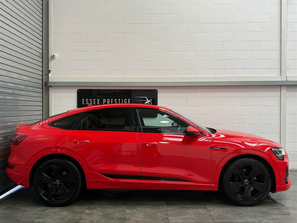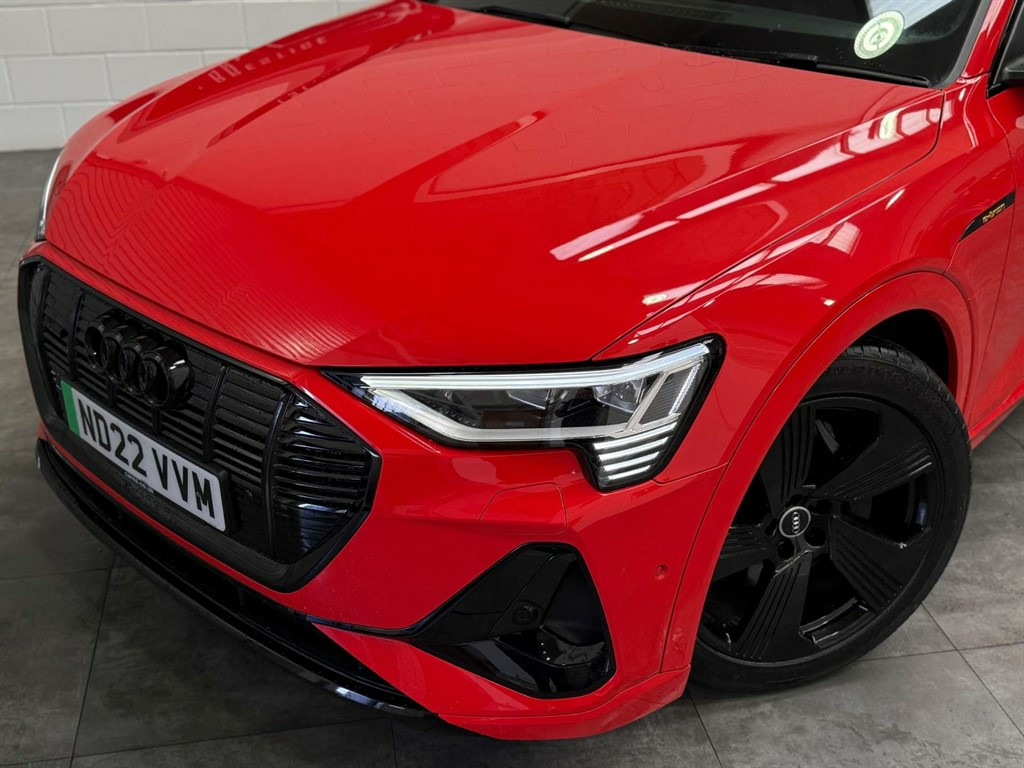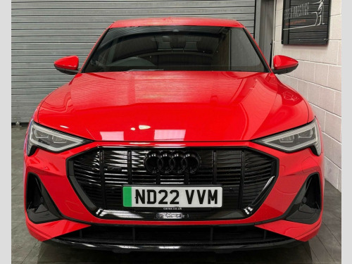 Full Service History, Sat Nav, Black Pack, Rear View Camera, S Line Badge on the Front Grille,Windscreen with Acoustic Glazing,Vehicle Inlet Combo 2 - EU CCS,Tyre Pressure Warning Light,Tyre Mobility System,Twin Leather Pack,Tool Kit,Sun Visors with Illuminated Vanity Mirrors,Side Airbags - Front and Head Airbag System,S line Rear Diffuser,S Line Front and Rear Bumpers,Rear View Camera,Progressive Steering,Privacy Glass,Power Operated Tailgate,Parking System Plus with 360 Degree Sensors and Function-On-Demand Preparation,Operating Buttons in Black - Glass Look with Haptic Feedback,Mode 3 Type 2-AC Charging Cable 22kW,Manual Steering Column Adjustment,MMI Navigation Plus with MMI Touch - Twin Touch Screens with Haptic Feedback,Luggage Compartment Floor,Luggage Compartment Cover,Lane Departure Warning,Anti-Theft Alarm,Bluetooth Interface,Auto Dimming and Frameless Rear View Mirror,Audi Virtual Cockpit,Audi Sound System,Audi Smartphone Interface Includes Wireless Functionality,Audi Pre-Sense Front and Basic,Audi Matrix LED Headlights and Dynamic Front and Rear Indicators with Coming and Leaving Home Animations,Audi Drive Select,Audi Connect Safety and Service - e-call,Audi Connect,Anti-Theft Wheel Bolts and Wheel Loosening Warning,Body Coloured Bumpers,Airbags - Driver,Adaptive Air Sport Suspension,Active Vehicle Alerting System - AVAS,AMI - Audi Music Interface - Front,AC and DC Charging Access Point on Drivers Side and Second AC Charging Access Point on Passenger Side,ABS - Anti-Lock Braking System,4-Way Lumbar Support for Front Seats,3-Spoke Sport Multi-Function Steering Wheel in Perforated Leather with S Logo with Paddles for Recuperation,2-Zone Automatic Air Conditioning,2 USB C Ports with Charging Functionity in the Rear,Front and Rear Floor Mats,LED Rear Lights,LED Interior Light Package,Keyless Go,Inlays - Darkened Matt Brushed Aluminium,Industry Plug CEE 32 A-230 V,Illuminated Door Sill Trims with Aluminium Inlays - Front and Rear with S Logo in Front,ISOFIX Child Seat Mounting for Outer Rear Seats,ISOFIX Child Seat Mounting for Front Passenger Seat with Front Passenger Airbag Deactivation,Household Plug Type G - GB,Heated Front Seats,Gloss Styling Pack,11 kW Onboard Charger,Front Sports Seats,First Aid Kit and Warning Triangle,Electrically Adjustable Front Seats including Memory Function for Drivers Seat,Electric Windows - Front and Rear,Door Mirrors - Electrically Adjustable - Heated - Folding - Automatically Dimming with Memory Function with Kerb View Function for Passenger Side,DAB Digital Radio,Cruise Control with Speed Limiter,Compact e-tron Charging System,Comfort Centre Armrest - Front,Cloth Headlining in Black,Body Coloured Door Mirrors,3-Spoke Flat Bottom Multi-Function Leather Steering Wheel with Paddles for Recuperation,Valcona Leather - Sports Seats with S Embossed Logo - Black with Rock Grey Stitching