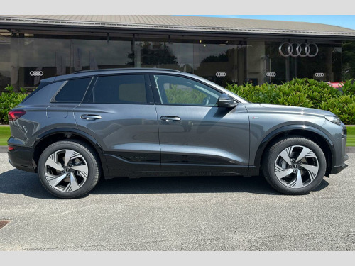 Discover performance and luxury redefined with the Audi Q6 e-tron, a stunning blend of electrified power, cutting-edge technology, and captivating design. Coated in the elegant Daytona Grey paintwork, this all-electric SUV turns heads while delivering unmatched performance. With a range of up to 348 miles on a single charge, it ensures seamless journeys, from your daily commute to long weekend road trips, all without compromise.