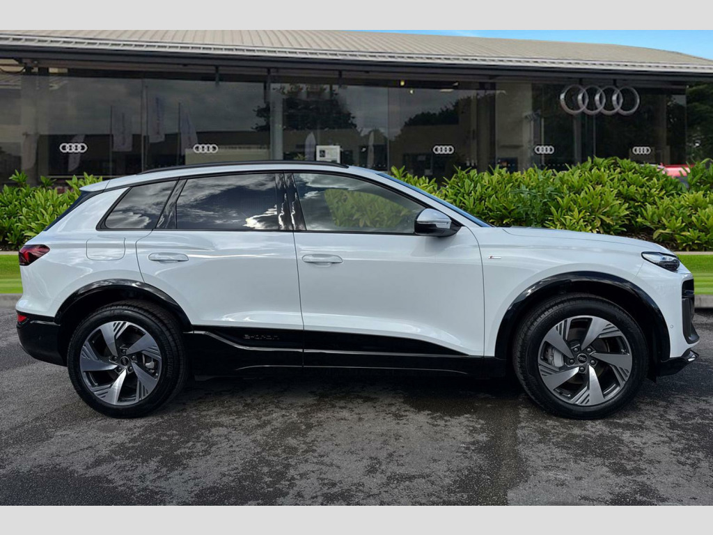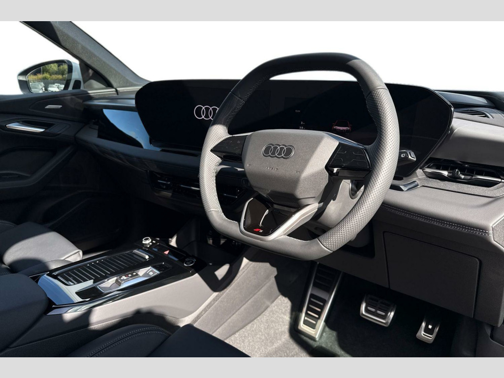 Vehicle price shown includes a deposit contribution of £5000 when purchased on finance by 31/12/2025. Solutions Personal Contract Plan. 5.9% APR Representative. Audi Financial Services. Terms and Conditions apply. Sound and Vision Pack, 11kW On-Board Charger, 2 USB-C Ports in both the Front and the Rear, 20in Alloy Wheels - 5-Arm - Structure Style - Graphite Grey - Gloss Turned, 270 kW On-Board Charger - DC, 3-Zone Automatic Climate Control including Comfort Remote Preconditioning, Accent Surfaces and Control Buttons in Gloss Black, Acoustic Vehicle Alerting System - AVAS, Adaptive Cruise Control, Advanced Driver Attention and Drowsiness Monitor, Airbags in Front - Front Passenger Airbag is Automatically Activated and Deactivated, Ambient Lighting Pack, Anti Theft Wheel Bolts, Anti-Theft Alarm, Audi Application Store and Smartphone Interface, Audi Assistant, Audi Connect Emergency Call and Service with Audi Connect Remote and Control, Audi Connect Navigation and Infotainment (3 Year Subscription From New), Audi Drive Select, Auto-Dimming Rear-View Mirror, Body Coloured Door Mirrors, Camera-Based Traffic Sign Recognition, Comfort Centre Armrest - Front, Comfort Suspension, Compact e-tron Charging System, Contrast Bumpers in Mythos Black Metallic Paint Finish, Convenience Key and Safelock, DAB Digital Radio, Dashboard - Black with Contrast Stitching, Digital Key, Electric Child Safety Lock, Electrically Powered Charging Cover - Opening, Exterior Mirrors -? Electrically Adjustable - Heated - Folding and Automatically-Dimming, First Aid Kit and Warning Triangle, Front Door Sill Trims with Aluminium Inlays - Illuminated with S Logo, Front Emergency Brake Assist, Front Seats with Manual Adjustment for Position and 4-Way Electric Lumbar Adjustment, Front Side Airbags with Head Airbags and Interaction Airbag, Front Sport Seats with Integrated Headrests and S Embossed Logo, Front and Rear Floor Mats, Frunk Storage Space - Under Bonnet 64L, Headlight Cleaning System, Headlining - Black Cloth, Heat Insulating Glass - Rear and Side Windows, Heat Pump, Heated Front and Outer Rear Seats, High-Beam Assist, Hill Hold Assist, Household Plug Type G - GB, I-Size Child Seat Mounting on the Front Passenger Side and I-Size and Top Tether on the Outer Rear Seat, Industrial Connector CEE 32A - 230V - Long and Straight - For the e-tron Charging System, Inlays - Anthracite Matt Brushed Aluminium, Intersection Assist, LED Headlights Plus with Digital Daytime Running Lights, LED Rear Lights Pro with Dynamic Rear Indicators - Illuminated Light Strip with Animated Coming and Leaving Home Function, Lane Change Assistant with Exit Warning System - Rear Cross Traffic Alert and Rear Turn Assist, Lane Departure Warning, Luggage Compartment Lid - Electrically Opening and Closing, MMI Navigation Plus with High Resolution 14.5in OLED Touchscreen Colour Display and Audi Virtual Cockpit Plus with 11.9in OLED Colour Display, Manual Steering Column Adjustment, Mode 3 Charging Cable for Public Charging - 22 kW - AC, Park Assist Plus, Parking System Plus with 360 Degree Display, Phone Compartment with Wireless Charging, Plug and Charge, Privacy Glass, Progressive Steering with Servotronic, Roof Rails - Black, S Line Badges on the Front Wings, S Line Bumpers in Contrasting Mythos Black Metallic Paint Finish, S Line Exterior Styling with Radiator Grille in Body Colour and Accents in Dark Selenite Silver Front and Rear, Seat Belt Monitoring with Rear Seat Occupant Reminder - Child Presence Detection, Second Charging Port - AC, Softwrap in Twin Leather with Contrast Stitching, Split Folding Rear Seat Bench - 40-20-40 with Rear Seat Armrest and Cup Holders, Stainless Steel Pedals and Footrest, Steering Wheel - Heated - 3-Spoke Leather - Multi-Function Buttons with Touch Control - Flattened on top and Bottom - S Badging - Contrast Stitching - Steering Wheel Grips in Perforated Leather - Shift Paddles, Swerve Assist and Turn Assist, Top-View Camera, Towbar Preparation, Traffic-Sign-Based Speed Limiter, Tyre Pressure Loss Indicator, Tyre Repair Kit, Upper and Lower Interior Elements in Leatherette Plus, Wall-Mounted Bracket for Compact e-Tron Charging System, White Rhombus Logo Projection Light in Exterior Mirrors, Window Surrounds - Black, Windscreen with Acoustic Glass