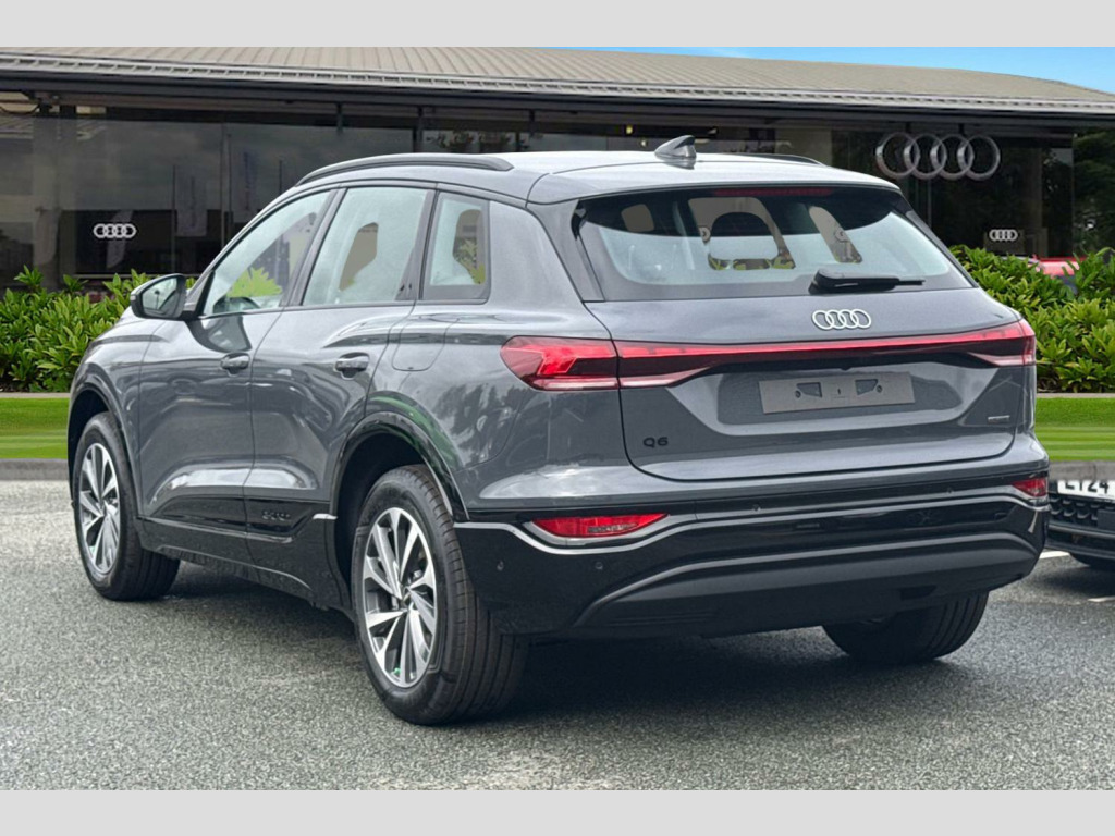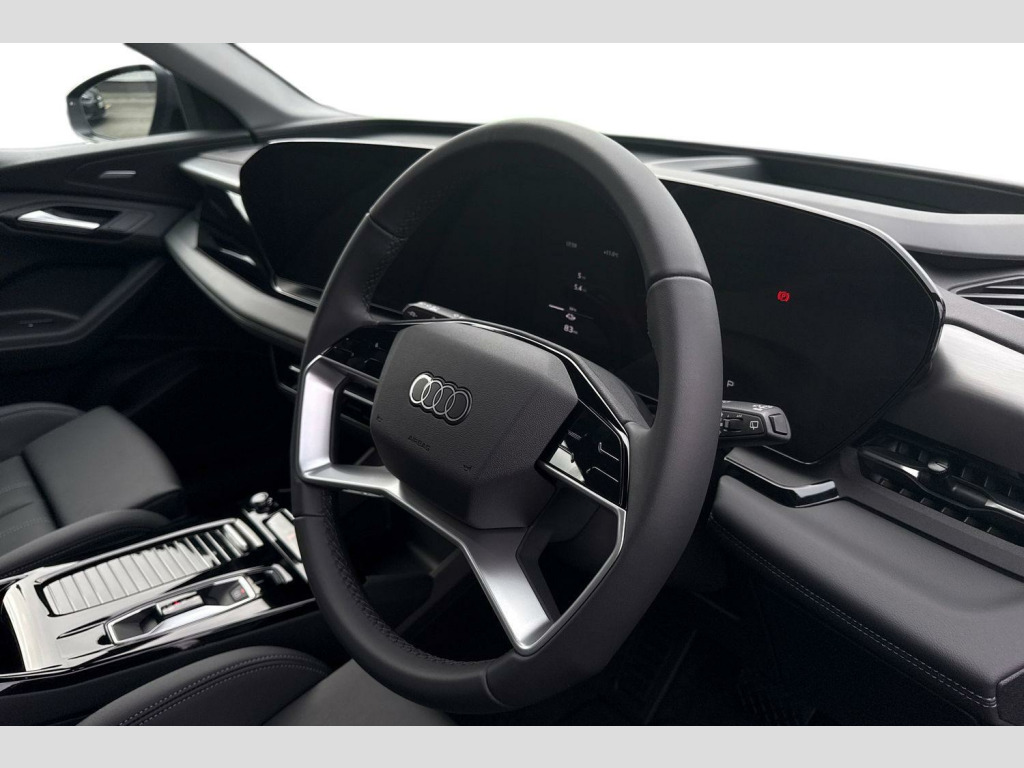 Price shown includes a deposit contribution of £3000 when purchased on finance by 31/12/25. Solutions Personal Contract Plan. 5.9% APR Representative. Audi Financial Services. Terms and Conditions apply. Sound and Vision Pack, 11kW On-Board Charger, 19in Alloy Wheels - 5-Twin-Spoke - Dynamic Style - Graphite Grey - Gloss Turned, 2 USB-C Ports in both the Front and the Rear, 270 kW On-Board Charger - DC, 3-Zone Automatic Climate Control including Comfort Remote Preconditioning, Accent Surfaces and Control Buttons in Gloss Black, Acoustic Vehicle Alerting System - AVAS, Adaptive Cruise Control, Advanced Driver Attention and Drowsiness Monitor, Airbags in Front - Front Passenger Airbag is Automatically Activated and Deactivated, Ambient Lighting Pack, Anti Theft Wheel Bolts, Anti-Theft Alarm, Audi Application Store and Smartphone Interface, Audi Assistant, Audi Connect Emergency Call and Service with Audi Connect Remote and Control, Audi Connect Navigation and Infotainment (3 Year Subscription From New), Audi Drive Select, Auto-Dimming Rear-View Mirror, Body Coloured Door Mirrors, Camera-Based Traffic Sign Recognition, Comfort Centre Armrest - Front, Comfort Suspension, Compact e-tron Charging System, Contrast Bumpers in Mythos Black Metallic Paint Finish, Convenience Key and Safelock, DAB Digital Radio, Dashboard - Black with Contrast Stitching, Digital Key, Electric Child Safety Lock, Electrically Powered Charging Cover - Opening, Exterior Mirrors -? Electrically Adjustable - Heated - Folding and Automatically-Dimming, First Aid Kit and Warning Triangle, Front Door Sill Trims with Aluminium Inlays - Illuminated, Front Emergency Brake Assist, Front Seats with Manual Adjustment for Position and 4-Way Electric Lumbar Adjustment, Front Side Airbags with Head Airbags and Interaction Airbag, Front Sport Seats with Integrated Headrests, Front and Rear Floor Mats, Frunk Storage Space - Under Bonnet 64L, Headlight Cleaning System, Headlining - Rock Grey, Heat Insulating Glass - Rear and Side Windows, Heat Pump, Heated Front and Outer Rear Seats, High-Beam Assist, Hill Hold Assist, Household Plug Type G - GB, I-Size Child Seat Mounting on the Front Passenger Side and I-Size and Top Tether on the Outer Rear Seat, Industrial Connector CEE 32A - 230V - Long and Straight - For the e-tron Charging System, Inlays - Anthracite Matt Brushed Aluminium, Intersection Assist, LED Headlights Plus with Digital Daytime Running Lights, LED Rear Lights Pro with Dynamic Rear Indicators - Illuminated Light Strip with Animated Coming and Leaving Home Function, Lane Change Assistant with Exit Warning System - Rear Cross Traffic Alert and Rear Turn Assist, Lane Departure Warning, Luggage Compartment Lid - Electrically Opening and Closing, MMI Navigation Plus with High Resolution 14.5in OLED Touchscreen Colour Display and Audi Virtual Cockpit Plus with 11.9in OLED Colour Display, Manual Steering Column Adjustment, Mode 3 Charging Cable for Public Charging - 22 kW - AC, Park Assist Plus, Parking System Plus with 360 Degree Display, Phone Compartment with Wireless Charging, Plug and Charge, Progressive Steering with Servotronic, Roof Rails - Black, Seat Belt Monitoring with Rear Seat Occupant Reminder - Child Presence Detection, Second Charging Port - AC, Softwrap in Twin Leather with Contrast Stitching, Split Folding Rear Seat Bench - 40-20-40 with Rear Seat Armrest and Cup Holders, Steering Wheel - Heated - Twin Spoke Leather - Multifunction with Touch Control - Shift Paddles - Trim in Chrome, Swerve Assist and Turn Assist, Top-View Camera, Towbar Preparation, Traffic-Sign-Based Speed Limiter, Tyre Pressure Loss Indicator, Tyre Repair Kit, Upper and Lower Interior Elements in Leatherette Plus, Wall-Mounted Bracket for Compact e-Tron Charging System, White Rhombus Logo Projection Light in Exterior Mirrors, Window Surrounds - Black, Windscreen with Acoustic Glass