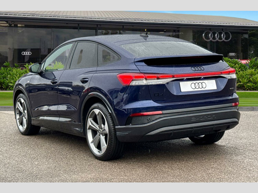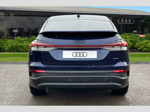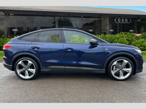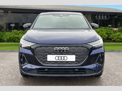 Joining our Brand-new car range here at Crewe Audi is this Audi Q4 Sportback Black Edition 45 e-tron Quattro in Navarra blue with its 21" 5-aero rotor evo design alloy wheels which look superb out on the roads. The LED headlights with LED rear lights create that strong visibility in all weather conditions.