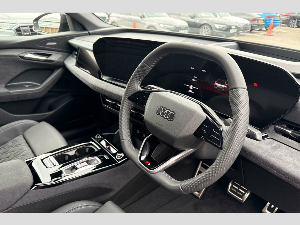 Dinamica Microfiber-Leather - Black, Sound and Vision Pack, 11kW On-Board Charger, 2 USB-C Ports in both the Front and the Rear, 21in Alloy Wheels - 5-Y-Spoke - Dynamic Style - Metallic Black - Gloss Turned - Audi Sport, 270 kW On-Board Charger - DC, 3-Zone Automatic Climate Control including Comfort Remote Preconditioning, Accent Surfaces and Control Buttons in Gloss Black, Acoustic Vehicle Alerting System - AVAS, Active Digital Light Signatures, Adaptive Cruise Control, Advanced Driver Attention and Drowsiness Monitor, Airbags in Front - Front Passenger Airbag is Automatically Activated and Deactivated, Ambient Lighting Pack, Anti Theft Wheel Bolts, Anti-Theft Alarm, Audi Application Store and Smartphone Interface, Audi Assistant, Audi Connect Emergency Call and Service with Audi Connect Remote and Control, Audi Connect Navigation and Infotainment (3 Year Subscription From New), Audi Drive Select, Auto-Dimming Rear-View Mirror, Black Door Mirror with Memory Function, Black Styling Package Plus, Brake Calipers - Red, Camera-Based Traffic Sign Recognition, Comfort Centre Armrest - Front, Compact e-tron Charging System, Convenience Key and Safelock, DAB Digital Radio, Dashboard - Black with Contrast Stitching, Digital Key, Electric Child Safety Lock, Electrically Powered Charging Cover - Opening, Exterior Mirrors -? Electrically Adjustable - Heated - Folding and Automatically-Dimming, First Aid Kit and Warning Triangle, Front Door Sill Trims with Aluminium Inlays - Illuminated with S Logo, Front Emergency Brake Assist, Front Seats - Electrically Adjustable with Memory Function for Driver, Front Sport Seats Plus with Diamond Stitching - Integrated Headrest - S Embossed Logo - Centre Armrest in Dinamica, Front and Rear Floor Mats, Front and Rear Side Airbags with Head Airbags and Interaction Airbag, Frunk Storage Space - Under Bonnet 64L, Full Body Paint Finish, Headlight Cleaning System, Headlining - Black Cloth, Heat Insulating Glass - Rear and Side Windows, Heat Pump, Heated Front and Outer Rear Seats, High-Beam Assist, Hill Hold Assist, Household Plug Type G - GB, I-Size Child Seat Mounting on the Front Passenger Side and I-Size and Top Tether on the Outer Rear Seat, Industrial Connector CEE 32A - 230V - Long and Straight - For the e-tron Charging System, Inlays - Anthracite High-Tech Mesh, Intersection Assist, LED Rear Lights Pro with Dynamic Rear Indicators - Illuminated Light Strip with Animated Coming and Leaving Home Function, Lane Change Assistant with Exit Warning System - Rear Cross Traffic Alert and Rear Turn Assist, Lane Departure Warning with Emergency Assist, Luggage Compartment Lid - Electrically Opening and Closing, MMI 10.9in Front Passenger Touch Display, MMI Navigation Plus with High Resolution 14.5in OLED Touchscreen Colour Display and Audi Virtual Cockpit Plus with 11.9in OLED Colour Display, Manual Steering Column Adjustment, Matrix LED Headlights, Mode 3 Charging Cable for Public Charging - 22 kW - AC, Occupant Detection in Rear Seat Area, Park Assist Plus, Parking System Plus with 360 Degree Display, Phone Compartment with Wireless Charging, Plug and Charge, Pneumatically Adjustable Lumbar Support with Massage Feature for the Front Seats, Privacy Glass, Proactive Passenger Protection System for Front - Sides and Rear, Progressive Steering with Servotronic, Seat Belt Monitoring with Rear Seat Occupant Reminder - Child Presence Detection, Second Charging Port - AC, Softwrap in Dinamica with Contrast Stitching, Split Folding Rear Seat Bench - 40-20-40 with Rear Seat Armrest and Cup Holders, Sport Suspension, Stainless Steel Pedals and Footrest, Steering Wheel - Heated - 3-Spoke Leather - Multi-Function Buttons with Touch Control - Flattened on top and Bottom - S Badging - Contrast Stitching - Steering Wheel Grips in Perforated Leather - Shift Paddles, Swerve Assist and Turn Assist, Top-View Camera, Towbar Preparation, Traffic-Sign-Based Speed Limiter, Tyre Pressure Loss Indicator, Tyre Repair Kit, Upper and Lower Interior Elements in Dinamica Microfibre, Wall-Mounted Bracket for Compact e-Tron Charging System, White Rhombus Logo Projection Light in Exterior Mirrors, Window Surrounds - Black, Windscreen with Acoustic Glass, e-tron Sports Sound