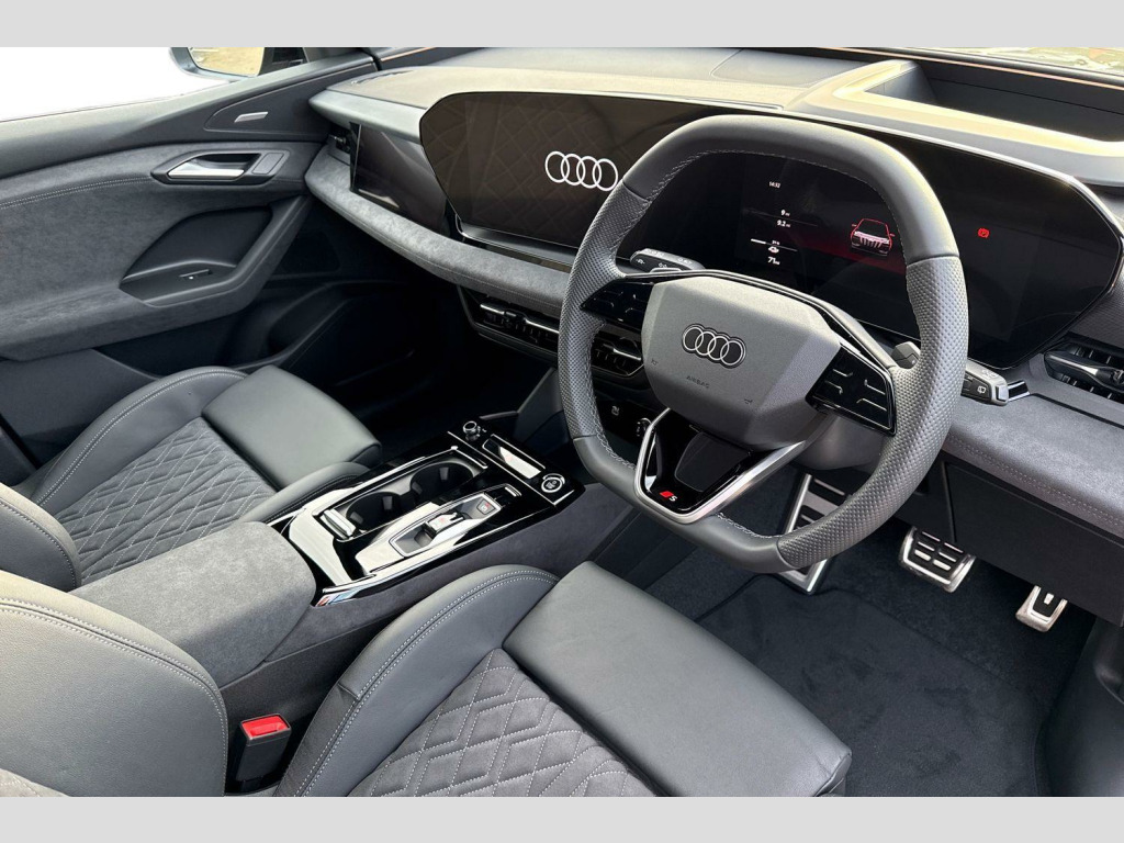 ℹ️Vehicle price shown includes a deposit contribution of £5000 when purchased on finance by 31/12/2025. Solutions Personal Contract Plan. 5.9% APR Representative. Audi Financial Services. Terms and Conditions apply. Sound and Vision Pack, 11kW On-Board Charger, 2 USB-C Ports in both the Front and the Rear, 21in Alloy Wheels - 5-Y-Spoke - Dynamic Style - Metallic Black - Gloss Turned - Audi Sport, 270 kW On-Board Charger - DC, 3-Zone Automatic Climate Control including Comfort Remote Preconditioning, Accent Surfaces and Control Buttons in Gloss Black, Acoustic Vehicle Alerting System - AVAS, Active Digital Light Signatures, Adaptive Cruise Control, Advanced Driver Attention and Drowsiness Monitor, Airbags in Front - Front Passenger Airbag is Automatically Activated and Deactivated, Ambient Lighting Pack, Anti Theft Wheel Bolts, Anti-Theft Alarm, Audi Application Store and Smartphone Interface, Audi Assistant, Audi Connect Emergency Call and Service with Audi Connect Remote and Control, Audi Connect Navigation and Infotainment (3 Year Subscription From New), Audi Drive Select, Auto-Dimming Rear-View Mirror, Black Door Mirror with Memory Function, Black Styling Package Plus, Brake Calipers - Red, Camera-Based Traffic Sign Recognition, Comfort Centre Armrest - Front, Compact e-tron Charging System, Convenience Key and Safelock, DAB Digital Radio, Dashboard - Black with Contrast Stitching, Digital Key, Electric Child Safety Lock, Electrically Powered Charging Cover - Opening, Exterior Mirrors -? Electrically Adjustable - Heated - Folding and Automatically-Dimming, First Aid Kit and Warning Triangle, Front Door Sill Trims with Aluminium Inlays - Illuminated with S Logo, Front Emergency Brake Assist, Front Seats - Electrically Adjustable with Memory Function for Driver, Front Sport Seats Plus with Diamond Stitching - Integrated Headrest - S Embossed Logo - Centre Armrest in Dinamica, Front and Rear Floor Mats, Front and Rear Side Airbags with Head Airbags and Interaction Airbag, Frunk Storage Space - Under Bonnet 64L, Full Body Paint Finish, Headlight Cleaning System, Headlining - Black Cloth, Heat Insulating Glass - Rear and Side Windows, Heat Pump, Heated Front and Outer Rear Seats, High-Beam Assist, Hill Hold Assist, Household Plug Type G - GB, I-Size Child Seat Mounting on the Front Passenger Side and I-Size and Top Tether on the Outer Rear Seat, Industrial Connector CEE 32A - 230V - Long and Straight - For the e-tron Charging System, Inlays - Anthracite High-Tech Mesh, Intersection Assist, LED Rear Lights Pro with Dynamic Rear Indicators - Illuminated Light Strip with Animated Coming and Leaving Home Function, Lane Change Assistant with Exit Warning System - Rear Cross Traffic Alert and Rear Turn Assist, Lane Departure Warning with Emergency Assist, Luggage Compartment Lid - Electrically Opening and Closing, MMI 10.9in Front Passenger Touch Display, MMI Navigation Plus with High Resolution 14.5in OLED Touchscreen Colour Display and Audi Virtual Cockpit Plus with 11.9in OLED Colour Display, Manual Steering Column Adjustment, Matrix LED Headlights, Mode 3 Charging Cable for Public Charging - 22 kW - AC, Occupant Detection in Rear Seat Area, Park Assist Plus, Parking System Plus with 360 Degree Display, Phone Compartment with Wireless Charging, Plug and Charge, Pneumatically Adjustable Lumbar Support with Massage Feature for the Front Seats, Privacy Glass, Proactive Passenger Protection System for Front - Sides and Rear, Progressive Steering with Servotronic, Roof Rails - Black, Seat Belt Monitoring with Rear Seat Occupant Reminder - Child Presence Detection, Second Charging Port - AC, Softwrap in Dinamica with Contrast Stitching, Split Folding Rear Seat Bench - 40-20-40 with Rear Seat Armrest and Cup Holders, Sport Suspension, Stainless Steel Pedals and Footrest, Steering Wheel - Heated - 3-Spoke Leather - Multi-Function Buttons with Touch Control - Flattened on top and Bottom - S Badging - Contrast Stitching - Steering Wheel Grips in Perforated Leather - Shift Paddles, Swerve Assist and Turn Assist, Top-View Camera, Towbar Preparation, Traffic-Sign-Based Speed Limiter, Tyre Pressure Loss Indicator, Tyre Repair Kit, Upper and Lower Interior Elements in Dinamica Microfibre, Wall-Mounted Bracket for Compact e-Tron Charging System, White Rhombus Logo Projection Light in Exterior Mirrors, Window Surrounds - Black, Windscreen with Acoustic Glass, e-tron Sports Sound