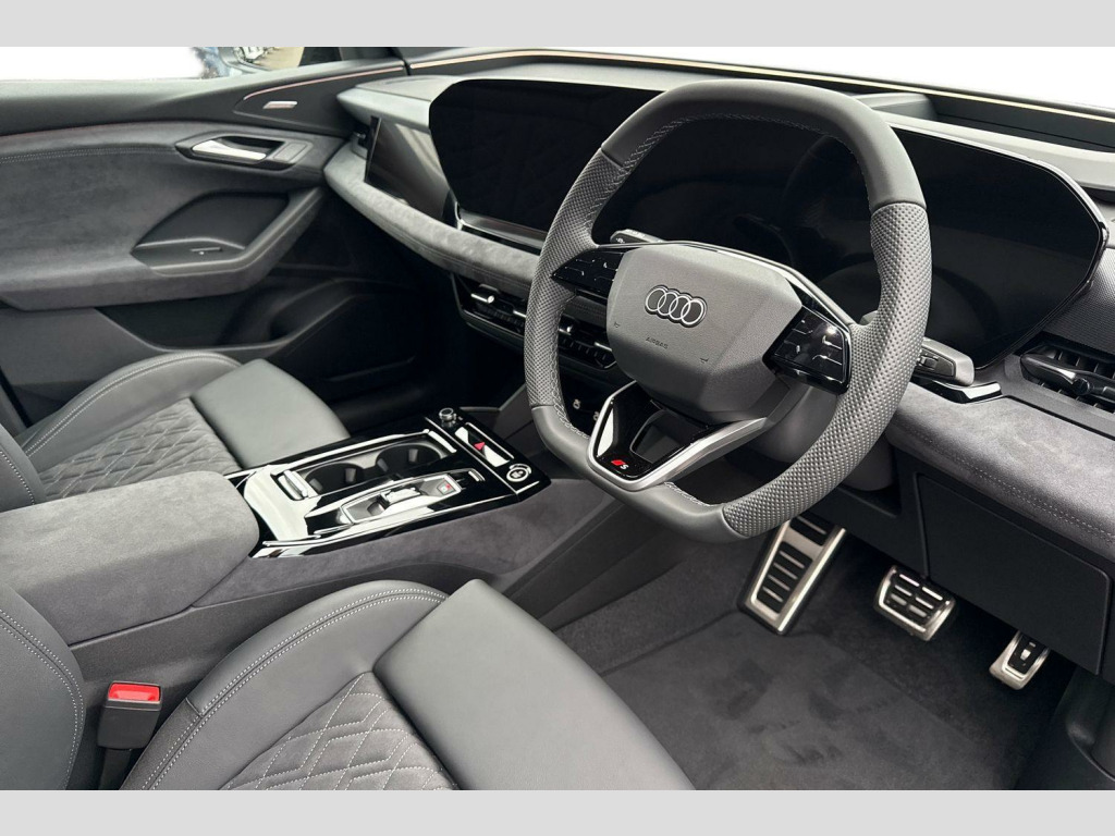 Sound and Vision Pack, Dinamica Microfiber-Leather - Black, 11kW On-Board Charger, 2 USB-C Ports in both the Front and the Rear, 21in Alloy Wheels - 5-Y-Spoke - Dynamic Style - Metallic Black - Gloss Turned - Audi Sport, 270 kW On-Board Charger - DC, 3-Zone Automatic Climate Control including Comfort Remote Preconditioning, Accent Surfaces and Control Buttons in Gloss Black, Acoustic Vehicle Alerting System - AVAS, Active Digital Light Signatures, Adaptive Cruise Control, Advanced Driver Attention and Drowsiness Monitor, Airbags in Front - Front Passenger Airbag is Automatically Activated and Deactivated, Ambient Lighting Pack, Anti Theft Wheel Bolts, Anti-Theft Alarm, Audi Application Store and Smartphone Interface, Audi Assistant, Audi Connect Emergency Call and Service with Audi Connect Remote and Control, Audi Connect Navigation and Infotainment (3 Year Subscription From New), Audi Drive Select, Auto-Dimming Rear-View Mirror, Black Door Mirror with Memory Function, Black Styling Package Plus, Brake Calipers - Red, Camera-Based Traffic Sign Recognition, Comfort Centre Armrest - Front, Compact e-tron Charging System, Convenience Key and Safelock, DAB Digital Radio, Dashboard - Black with Contrast Stitching, Digital Key, Electric Child Safety Lock, Electrically Powered Charging Cover - Opening, Exterior Mirrors -? Electrically Adjustable - Heated - Folding and Automatically-Dimming, First Aid Kit and Warning Triangle, Front Door Sill Trims with Aluminium Inlays - Illuminated with S Logo, Front Emergency Brake Assist, Front Seats - Electrically Adjustable with Memory Function for Driver, Front Sport Seats Plus with Diamond Stitching - Integrated Headrest - S Embossed Logo - Centre Armrest in Dinamica, Front and Rear Floor Mats, Front and Rear Side Airbags with Head Airbags and Interaction Airbag, Frunk Storage Space - Under Bonnet 64L, Full Body Paint Finish, Headlight Cleaning System, Headlining - Black Cloth, Heat Insulating Glass - Rear and Side Windows, Heat Pump, Heated Front and Outer Rear Seats, High-Beam Assist, Hill Hold Assist, Household Plug Type G - GB, I-Size Child Seat Mounting on the Front Passenger Side and I-Size and Top Tether on the Outer Rear Seat, Industrial Connector CEE 32A - 230V - Long and Straight - For the e-tron Charging System, Inlays - Anthracite High-Tech Mesh, Intersection Assist, LED Rear Lights Pro with Dynamic Rear Indicators - Illuminated Light Strip with Animated Coming and Leaving Home Function, Lane Change Assistant with Exit Warning System - Rear Cross Traffic Alert and Rear Turn Assist, Lane Departure Warning with Emergency Assist, Luggage Compartment Lid - Electrically Opening and Closing, MMI 10.9in Front Passenger Touch Display, MMI Navigation Plus with High Resolution 14.5in OLED Touchscreen Colour Display and Audi Virtual Cockpit Plus with 11.9in OLED Colour Display, Manual Steering Column Adjustment, Matrix LED Headlights, Mode 3 Charging Cable for Public Charging - 22 kW - AC, Occupant Detection in Rear Seat Area, Park Assist Plus, Parking System Plus with 360 Degree Display, Phone Compartment with Wireless Charging, Plug and Charge, Pneumatically Adjustable Lumbar Support with Massage Feature for the Front Seats, Privacy Glass, Proactive Passenger Protection System for Front - Sides and Rear, Progressive Steering with Servotronic, Seat Belt Monitoring with Rear Seat Occupant Reminder - Child Presence Detection, Second Charging Port - AC, Softwrap in Dinamica with Contrast Stitching, Split Folding Rear Seat Bench - 40-20-40 with Rear Seat Armrest and Cup Holders, Sport Suspension, Stainless Steel Pedals and Footrest, Steering Wheel - Heated - 3-Spoke Leather - Multi-Function Buttons with Touch Control - Flattened on top and Bottom - S Badging - Contrast Stitching - Steering Wheel Grips in Perforated Leather - Shift Paddles, Swerve Assist and Turn Assist, Top-View Camera, Towbar Preparation, Traffic-Sign-Based Speed Limiter, Tyre Pressure Loss Indicator, Tyre Repair Kit, Upper and Lower Interior Elements in Dinamica Microfibre, Wall-Mounted Bracket for Compact e-Tron Charging System, White Rhombus Logo Projection Light in Exterior Mirrors, Window Surrounds - Black, Windscreen with Acoustic Glass, e-tron Sports Sound