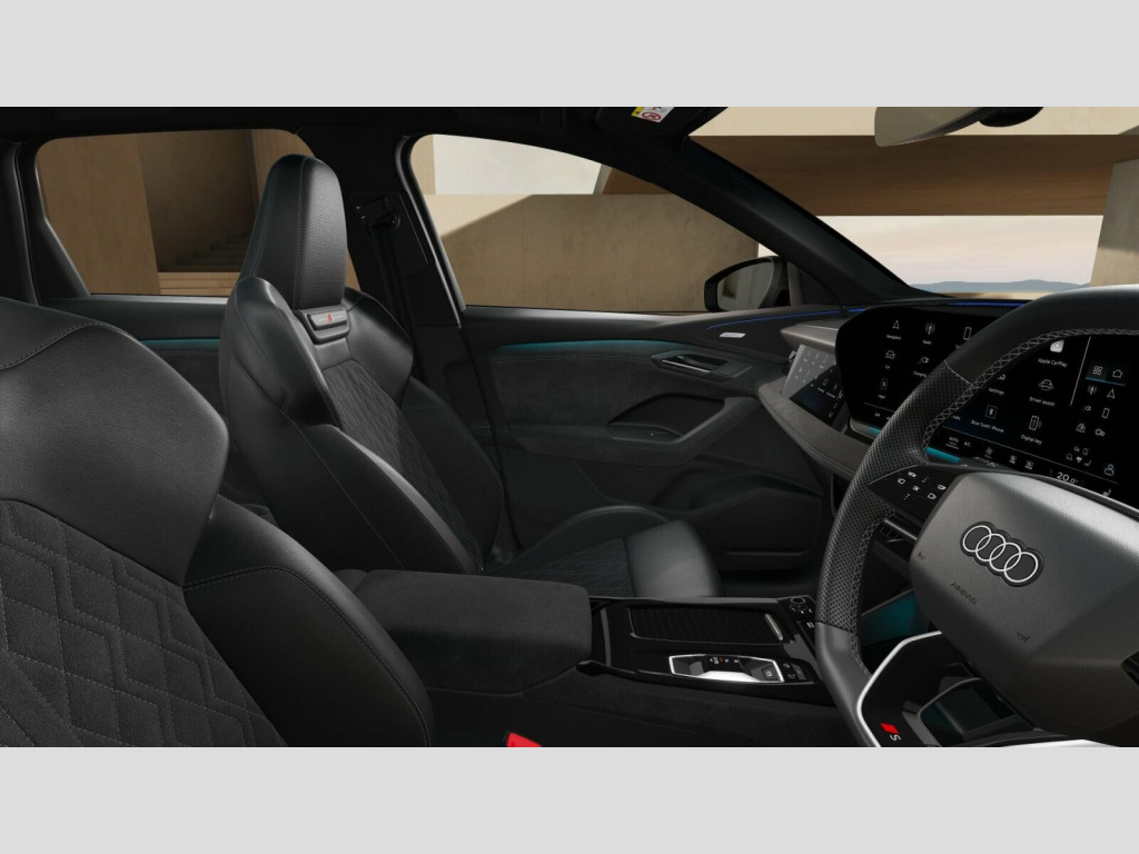 Price shown includes a deposit contribution of £3000 when purchased on finance by 31/12/25. Solutions Personal Contract Plan. 5.9% APR Representative. Audi Financial Services. Terms and Conditions apply. Sound and Vision Pack, 11kW On-Board Charger, 2 USB-C Ports in both the Front and the Rear, 21in Alloy Wheels - 5-Y-Spoke - Dynamic Style - Metallic Black - Gloss Turned - Audi Sport, 270 kW On-Board Charger - DC, 3-Zone Automatic Climate Control including Comfort Remote Preconditioning, Accent Surfaces and Control Buttons in Gloss Black, Acoustic Vehicle Alerting System - AVAS, Active Digital Light Signatures, Adaptive Cruise Control, Advanced Driver Attention and Drowsiness Monitor, Airbags in Front - Front Passenger Airbag is Automatically Activated and Deactivated, Ambient Lighting Pack, Anti Theft Wheel Bolts, Anti-Theft Alarm, Audi Application Store and Smartphone Interface, Audi Assistant, Audi Connect Emergency Call and Service with Audi Connect Remote and Control, Audi Connect Navigation and Infotainment (3 Year Subscription From New), Audi Drive Select, Auto-Dimming Rear-View Mirror, Black Door Mirror with Memory Function, Black Styling Package Plus, Brake Calipers - Red, Camera-Based Traffic Sign Recognition, Comfort Centre Armrest - Front, Compact e-tron Charging System, Convenience Key and Safelock, DAB Digital Radio, Dashboard - Black with Contrast Stitching, Digital Key, Electric Child Safety Lock, Electrically Powered Charging Cover - Opening, Exterior Mirrors -? Electrically Adjustable - Heated - Folding and Automatically-Dimming, First Aid Kit and Warning Triangle, Front Door Sill Trims with Aluminium Inlays - Illuminated with S Logo, Front Emergency Brake Assist, Front Seats - Electrically Adjustable with Memory Function for Driver, Front Sport Seats Plus with Diamond Stitching - Integrated Headrest - S Embossed Logo - Centre Armrest in Dinamica, Front and Rear Floor Mats, Front and Rear Side Airbags with Head Airbags and Interaction Airbag, Frunk Storage Space - Under Bonnet 64L, Full Body Paint Finish, Headlight Cleaning System, Headlining - Black Cloth, Heat Insulating Glass - Rear and Side Windows, Heat Pump, Heated Front and Outer Rear Seats, High-Beam Assist, Hill Hold Assist, Household Plug Type G - GB, I-Size Child Seat Mounting on the Front Passenger Side and I-Size and Top Tether on the Outer Rear Seat, Industrial Connector CEE 32A - 230V - Long and Straight - For the e-tron Charging System, Inlays - Anthracite High-Tech Mesh, Intersection Assist, LED Rear Lights Pro with Dynamic Rear Indicators - Illuminated Light Strip with Animated Coming and Leaving Home Function, Lane Change Assistant with Exit Warning System - Rear Cross Traffic Alert and Rear Turn Assist, Lane Departure Warning with Emergency Assist, Luggage Compartment Lid - Electrically Opening and Closing, MMI 10.9in Front Passenger Touch Display, MMI Navigation Plus with High Resolution 14.5in OLED Touchscreen Colour Display and Audi Virtual Cockpit Plus with 11.9in OLED Colour Display, Manual Steering Column Adjustment, Matrix LED Headlights, Mode 3 Charging Cable for Public Charging - 22 kW - AC, Occupant Detection in Rear Seat Area, Park Assist Plus, Parking System Plus with 360 Degree Display, Phone Compartment with Wireless Charging, Plug and Charge, Pneumatically Adjustable Lumbar Support with Massage Feature for the Front Seats, Privacy Glass, Proactive Passenger Protection System for Front - Sides and Rear, Progressive Steering with Servotronic, Roof Rails - Black, Seat Belt Monitoring with Rear Seat Occupant Reminder - Child Presence Detection, Second Charging Port - AC, Softwrap in Dinamica with Contrast Stitching, Split Folding Rear Seat Bench - 40-20-40 with Rear Seat Armrest and Cup Holders, Sport Suspension, Stainless Steel Pedals and Footrest, Steering Wheel - Heated - 3-Spoke Leather - Multi-Function Buttons with Touch Control - Flattened on top and Bottom - S Badging - Contrast Stitching - Steering Wheel Grips in Perforated Leather - Shift Paddles, Swerve Assist and Turn Assist, Top-View Camera, Towbar Preparation, Traffic-Sign-Based Speed Limiter, Tyre Pressure Loss Indicator, Tyre Repair Kit, Upper and Lower Interior Elements in Dinamica Microfibre, Wall-Mounted Bracket for Compact e-Tron Charging System, White Rhombus Logo Projection Light in Exterior Mirrors, Window Surrounds - Black, Windscreen with Acoustic Glass, e-tron Sports Sound