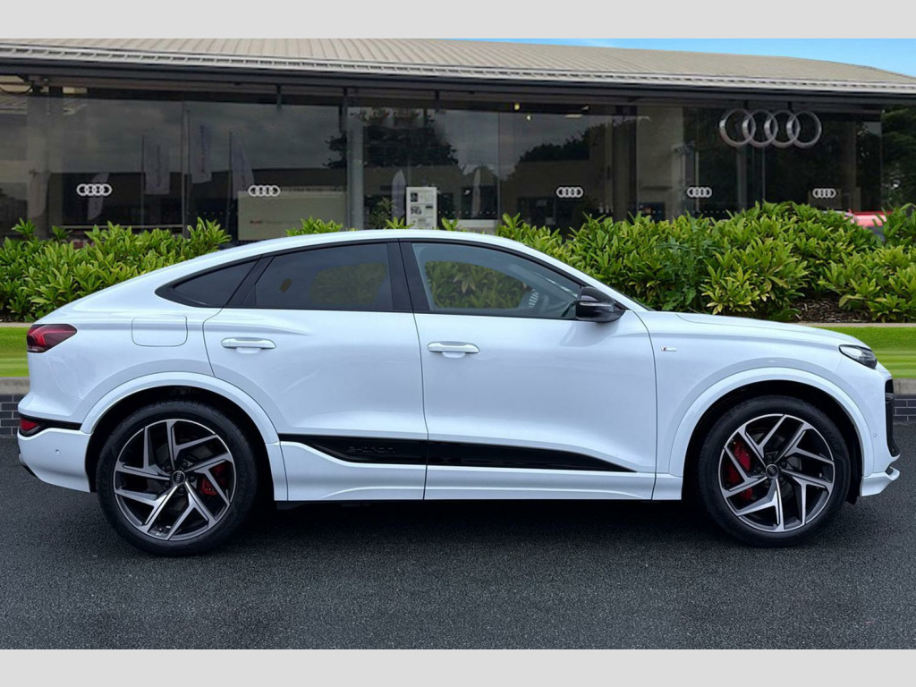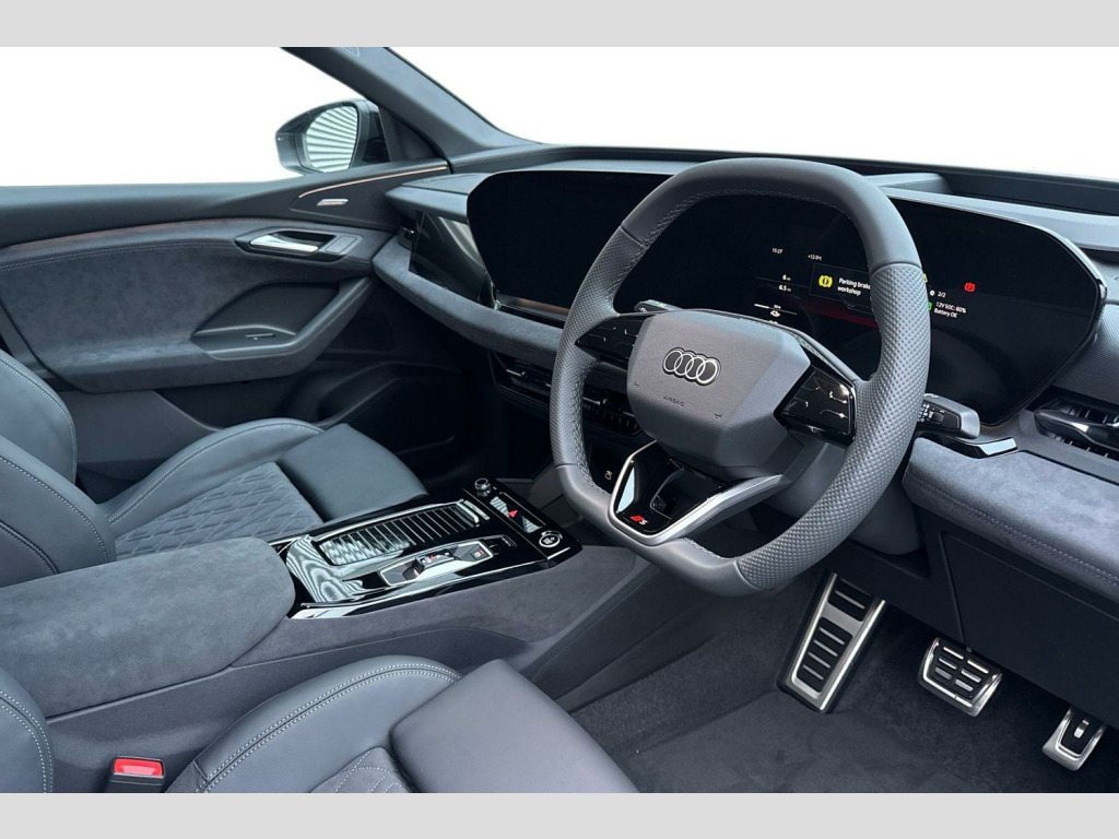 Price shown includes a deposit contribution of £3000 when purchased on finance by 31/12/25. Solutions Personal Contract Plan. 5.9% APR Representative. Audi Financial Services. Terms and Conditions apply. Sound and Vision Pack, 11kW On-Board Charger, 2 USB-C Ports in both the Front and the Rear, 21in Alloy Wheels - 5-Y-Spoke - Dynamic Style - Metallic Black - Gloss Turned - Audi Sport, 270 kW On-Board Charger - DC, 3-Zone Automatic Climate Control including Comfort Remote Preconditioning, Accent Surfaces and Control Buttons in Gloss Black, Acoustic Vehicle Alerting System - AVAS, Active Digital Light Signatures, Adaptive Cruise Control, Advanced Driver Attention and Drowsiness Monitor, Airbags in Front - Front Passenger Airbag is Automatically Activated and Deactivated, Ambient Lighting Pack, Anti Theft Wheel Bolts, Anti-Theft Alarm, Audi Application Store and Smartphone Interface, Audi Assistant, Audi Connect Emergency Call and Service with Audi Connect Remote and Control, Audi Connect Navigation and Infotainment (3 Year Subscription From New), Audi Drive Select, Auto-Dimming Rear-View Mirror, Black Door Mirror with Memory Function, Black Styling Package Plus, Brake Calipers - Red, Camera-Based Traffic Sign Recognition, Comfort Centre Armrest - Front, Compact e-tron Charging System, Convenience Key and Safelock, DAB Digital Radio, Dashboard - Black with Contrast Stitching, Digital Key, Electric Child Safety Lock, Electrically Powered Charging Cover - Opening, Exterior Mirrors - Electrically Adjustable - Heated - Folding and Automatically-Dimming, First Aid Kit and Warning Triangle, Front Door Sill Trims with Aluminium Inlays - Illuminated with S Logo, Front Emergency Brake Assist, Front Seats - Electrically Adjustable with Memory Function for Driver, Front Sport Seats Plus with Diamond Stitching - Integrated Headrest - S Embossed Logo - Centre Armrest in Dinamica, Front and Rear Floor Mats, Front and Rear Side Airbags with Head Airbags and Interaction Airbag, Frunk Storage Space - Under Bonnet 64L, Full Body Paint Finish, Headlight Cleaning System, Headlining - Black Cloth, Heat Insulating Glass - Rear and Side Windows, Heat Pump, Heated Front and Outer Rear Seats, High-Beam Assist, Hill Hold Assist, Household Plug Type G - GB, I-Size Child Seat Mounting on the Front Passenger Side and I-Size and Top Tether on the Outer Rear Seat, Industrial Connector CEE 32A - 230V - Long and Straight - For the e-tron Charging System, Inlays - Anthracite High-Tech Mesh, Intersection Assist, LED Rear Lights Pro with Dynamic Rear Indicators - Illuminated Light Strip with Animated Coming and Leaving Home Function, Lane Change Assistant with Exit Warning System - Rear Cross Traffic Alert and Rear Turn Assist, Lane Departure Warning with Emergency Assist, Luggage Compartment Lid - Electrically Opening and Closing, MMI 10.9in Front Passenger Touch Display, MMI Navigation Plus with High Resolution 14.5in OLED Touchscreen Colour Display and Audi Virtual Cockpit Plus with 11.9in OLED Colour Display, Manual Steering Column Adjustment, Matrix LED Headlights, Mode 3 Charging Cable for Public Charging - 22 kW - AC, Occupant Detection in Rear Seat Area, Park Assist Plus, Parking System Plus with 360 Degree Display, Phone Compartment with Wireless Charging, Plug and Charge, Pneumatically Adjustable Lumbar Support with Massage Feature for the Front Seats, Privacy Glass, Proactive Passenger Protection System for Front - Sides and Rear, Progressive Steering with Servotronic, Seat Belt Monitoring with Rear Seat Occupant Reminder - Child Presence Detection, Second Charging Port - AC, Softwrap in Dinamica with Contrast Stitching, Split Folding Rear Seat Bench - 40-20-40 with Rear Seat Armrest and Cup Holders, Sport Suspension, Stainless Steel Pedals and Footrest, Steering Wheel - Heated - 3-Spoke Leather - Multi-Function Buttons with Touch Control - Flattened on top and Bottom - S Badging - Contrast Stitching - Steering Wheel Grips in Perforated Leather - Shift Paddles, Swerve Assist and Turn Assist, Top-View Camera, Towbar Preparation, Traffic-Sign-Based Speed Limiter, Tyre Pressure Loss Indicator, Tyre Repair Kit, Upper and Lower Interior Elements in Dinamica Microfibre, Wall-Mounted Bracket for Compact e-Tron Charging System, White Rhombus Logo Projection Light in Exterior Mirrors, Window Surrounds - Black, Windscreen with Acoustic Glass, e-tron Sports Sound
