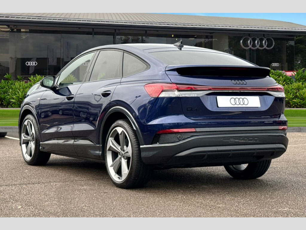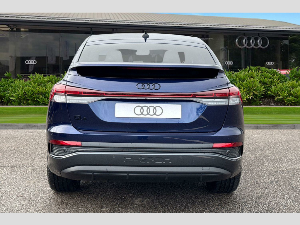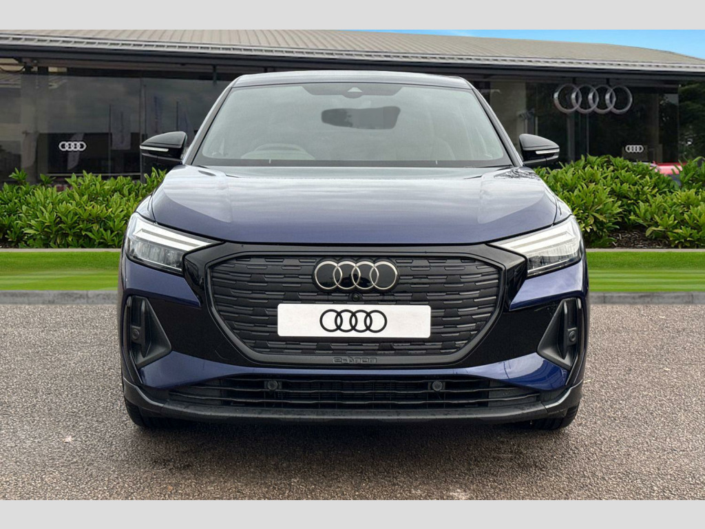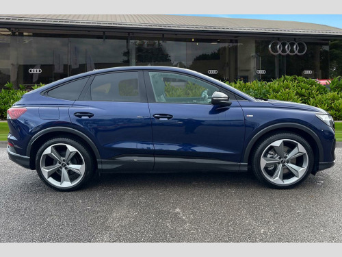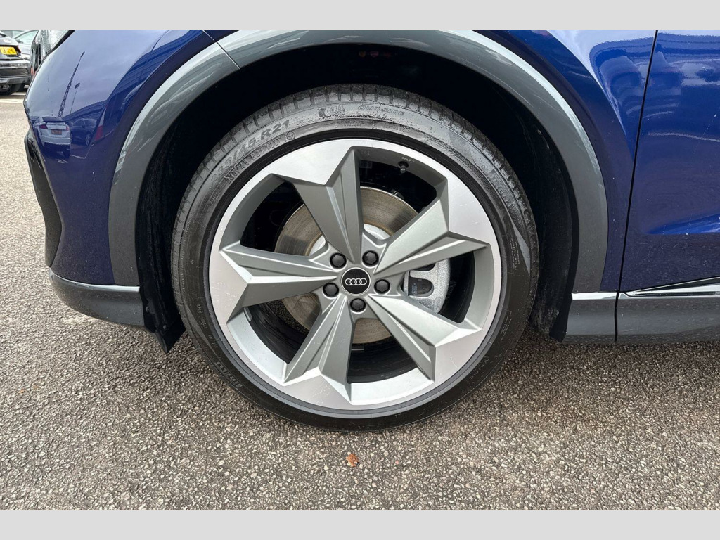 Take a look at this Brand-New Audi Q4 Sportback Black Edition 45 e-tron in Navarra Blue with its 21" 5-arm rotor evo design alloy wheels which look superb out on the roads. The LED headlights with LED rear lights create that strong visibility in all weather conditions.