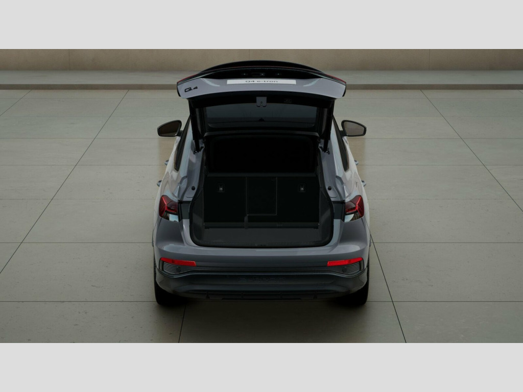 Step into the future of driving with this brand new, fully electric Audi Q4 e-tron. Finished in the modern and understated Pebble Grey solid paint, this Black Edition model offers a sleek, contemporary look. Powered by a 63kWh battery and a 204PS electric motor, it provides a smooth, quiet, and responsive driving experience with zero tailpipe emissions. The exterior design is enhanced by the bold Black Styling Pack, which contrasts perfectly with the 21-inch 5-Arm Rotor Evo Design alloy wheels. This SUV combines practical space with a sporty edge, making it an ideal choice for families and commuters alike. Accessing the large boot is easy and hands-free thanks to the Rear Power Tailgate.