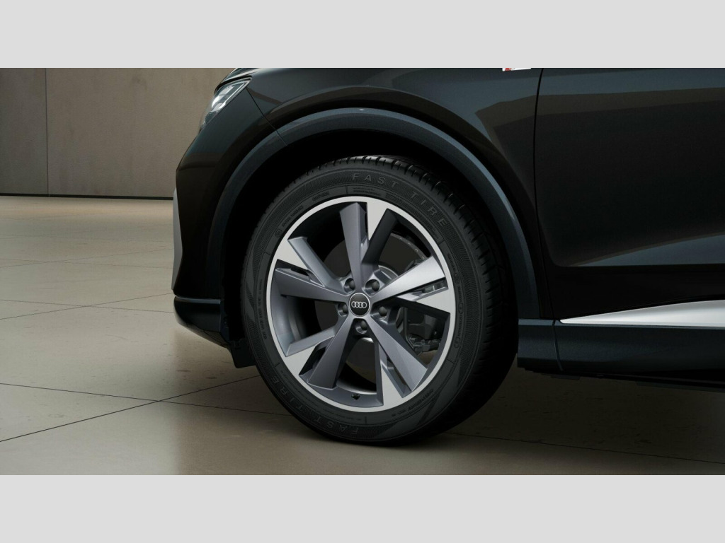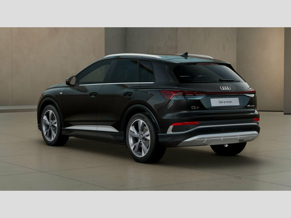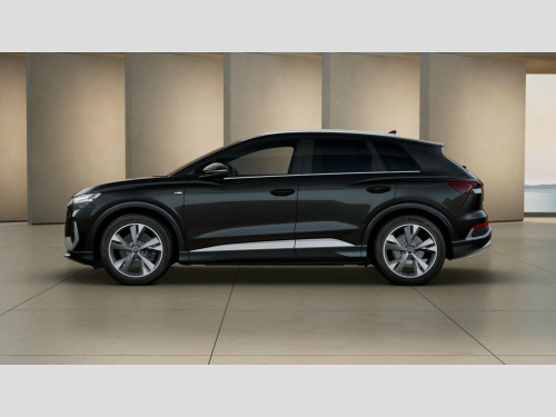 Introducing the stunning brand new Audi Q4 e-tron 45 S line Auto 5dr 82kW. Finished in the striking Mythos Black, this Q4 e-tron delivers a powerful road presence, sleek sophistication, and the latest in sustainable driving technology. Designed for drivers who want premium quality without compromise, this is electric motoring at its finest. The Mythos Black paintwork gives the Q4 e-tron an unmistakably bold and refined appearance. Deep, glossy, and timeless, this colour enhances the SUV’s sculpted body lines, wide stance, and aerodynamic profile.