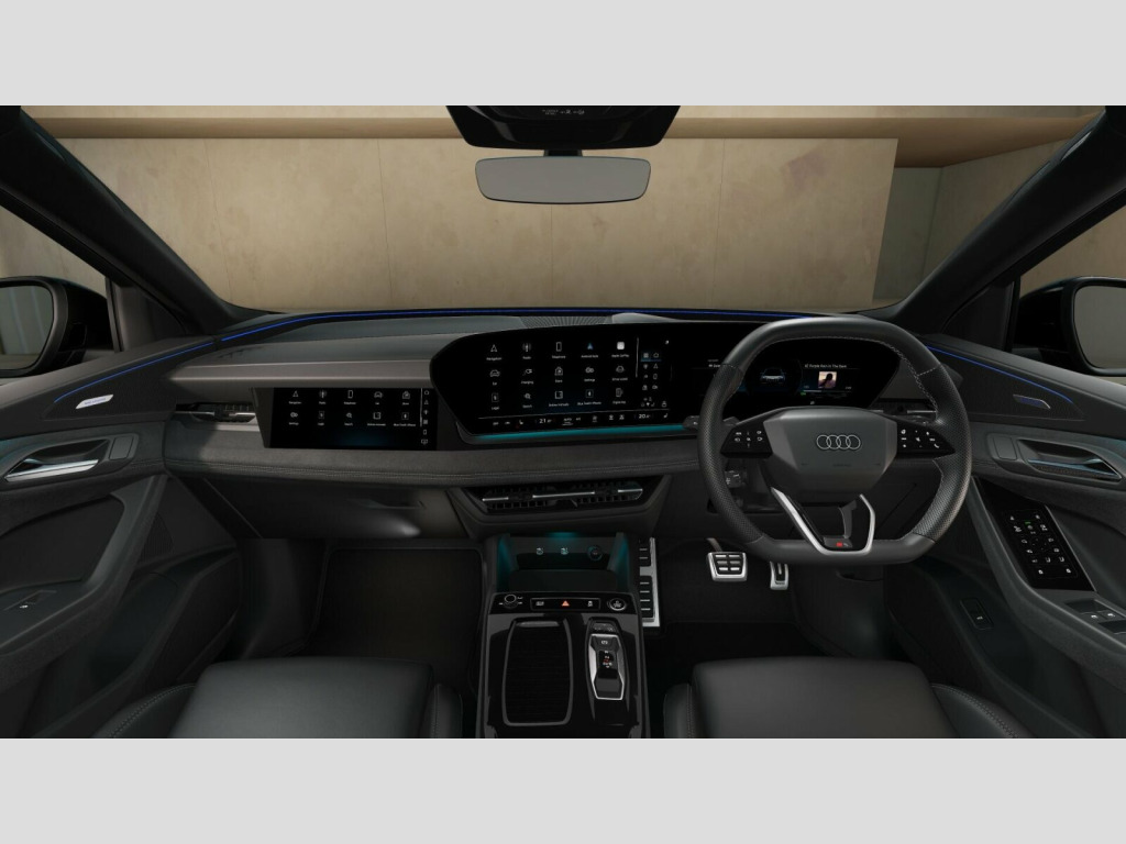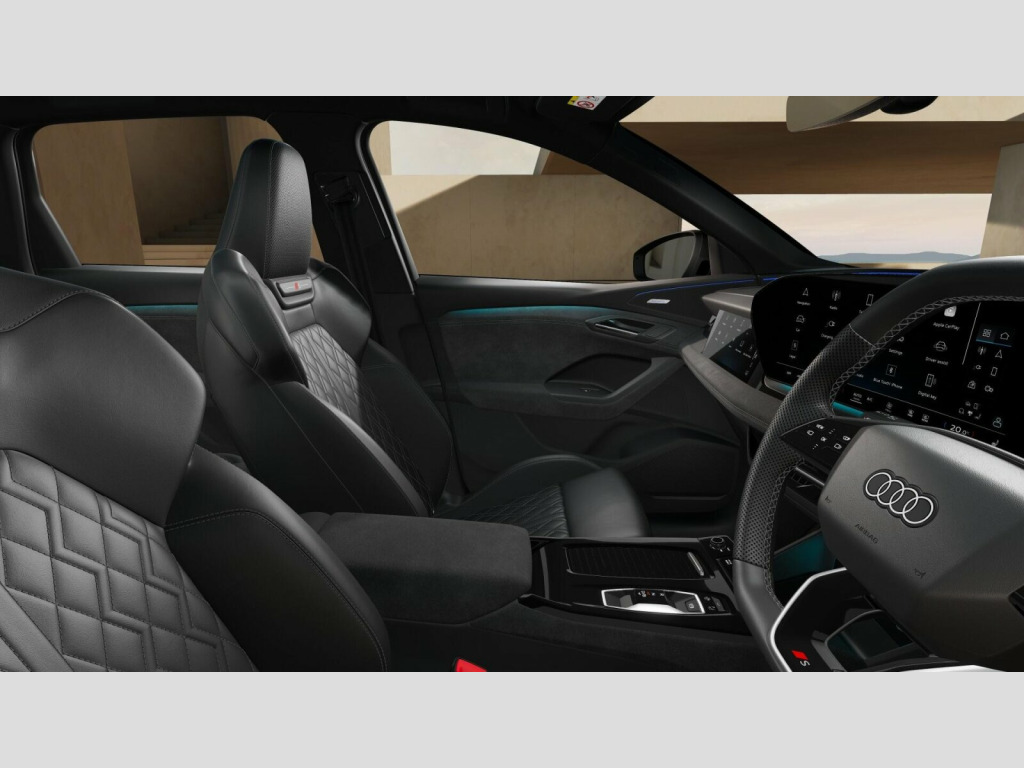 Price shown includes a deposit contribution of £5000 when purchased on finance by 31/03/26. Solutions Personal Contract Plan. 5.9% APR Representative. Audi Financial Services. Terms and Conditions apply. Sound and Vision Pack, Fine Nappa Leather - Black, 11kW On-Board Charger, 2 USB-C Ports in both the Front and the Rear, 21in Alloy Wheels - 5-Y-Spoke - Dynamic Style - Metallic Black - Gloss Turned - Audi Sport, 270 kW On-Board Charger - DC, 3-Zone Automatic Climate Control including Comfort Remote Preconditioning, Accent Surfaces and Control Buttons in Gloss Black, Acoustic Vehicle Alerting System - AVAS, Active Digital Light Signatures, Adaptive Cruise Control, Advanced Driver Attention and Drowsiness Monitor, Airbags in Front - Front Passenger Airbag is Automatically Activated and Deactivated, Ambient Lighting Pack, Anti Theft Wheel Bolts, Anti-Theft Alarm, Audi Application Store and Smartphone Interface, Audi Assistant, Audi Connect Emergency Call and Service with Audi Connect Remote and Control, Audi Connect Navigation and Infotainment (3 Year Subscription From New), Audi Drive Select, Audi Sound System - 10 Loudspeakers inc. Centre Loudspeaker and Subwoofer - 6-Channel Amplifier Output 180 watts, Auto-Dimming Rear-View Mirror, Black Door Mirror with Memory Function, Black Styling Package Plus, Brake Calipers - Red, Camera-Based Traffic Sign Recognition, Comfort Centre Armrest - Front, Compact e-tron Charging System, Convenience Key and Safelock, DAB Digital Radio, Dashboard - Black with Contrast Stitching, Digital Key, Electric Child Safety Lock, Electrically Powered Charging Cover - Opening, Exterior Mirrors - Electrically Adjustable - Heated - Folding and Automatically-Dimming, First Aid Kit and Warning Triangle, Front Door Sill Trims with Aluminium Inlays - Illuminated with S Logo, Front Emergency Brake Assist, Front Seats - Electrically Adjustable with Memory Function for Driver, Front Sport Seats Plus with Diamond Stitching - Integrated Headrest - S Embossed Logo - Centre Armrest in Dinamica, Front and Rear Floor Mats, Front and Rear Side Airbags with Head Airbags and Interaction Airbag, Frunk Storage Space - Under Bonnet 64L, Full Body Paint Finish, Headlight Cleaning System, Headlining - Black Cloth, Heat Insulating Glass - Rear and Side Windows, Heat Pump, Heated Front and Outer Rear Seats, High-Beam Assist, Hill Hold Assist, Household Plug Type G - GB, I-Size Child Seat Mounting on the Front Passenger Side and I-Size and Top Tether on the Outer Rear Seat, Industrial Connector CEE 32A - 230V - Long and Straight - For the e-tron Charging System, Inlays - Anthracite High-Tech Mesh, Intersection Assist, LED Rear Lights Pro with Dynamic Rear Indicators - Illuminated Light Strip with Animated Coming and Leaving Home Function, Lane Change Assistant with Exit Warning System - Rear Cross Traffic Alert and Rear Turn Assist, Lane Departure Warning with Emergency Assist, Luggage Compartment Lid - Electrically Opening and Closing, MMI 10.9in Front Passenger Touch Display, MMI Navigation Plus with High Resolution 14.5in OLED Touchscreen Colour Display and Audi Virtual Cockpit Plus with 11.9in OLED Colour Display, Manual Steering Column Adjustment, Matrix LED Headlights, Mode 3 Charging Cable for Public Charging - 22 kW - AC, Occupant Detection in Rear Seat Area, Park Assist Plus, Parking System Plus with 360 Degree Display, Phone Compartment with Wireless Charging, Plug and Charge, Pneumatically Adjustable Lumbar Support with Massage Feature for the Front Seats, Privacy Glass, Proactive Passenger Protection System for Front - Sides and Rear, Progressive Steering with Servotronic, Roof Rails - Black, Seat Belt Monitoring with Rear Seat Occupant Reminder - Child Presence Detection, Second Charging Port - AC, Softwrap in Dinamica with Contrast Stitching, Split Folding Rear Seat Bench - 40-20-40 with Rear Seat Armrest and Cup Holders, Sport Suspension, Stainless Steel Pedals and Footrest, Steering Wheel - Heated - 3-Spoke Leather - Multi-Function Buttons with Touch Control - Flattened on top and Bottom - S Badging - Contrast Stitching - Steering Wheel Grips in Perforated Leather - Shift Paddles, Swerve Assist and Turn Assist, Top-View Camera, Towbar Preparation, Traffic-Sign-Based Speed Limiter, Tyre Pressure Loss Indicator, Tyre Repair Kit, Upper and Lower Interior Elements in Dinamica Microfibre, Wall-Mounted Bracket for Compact e-Tron Charging System, White Rhombus Logo Projection Light in Exterior Mirrors, Window Surrounds - Black, Windscreen with Acoustic Glass, e-tron Sports Sound