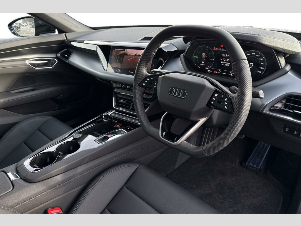 Price shown includes a deposit contribution of £8000 when purchased on finance by 31/03/26. Solutions Personal Contract Plan. 5.9% APR Representative. Audi Financial Services. Terms and Conditions apply. Technology Package, 11kW On-Board Charger, 12V Sockets - Centre Console Front and Trunk, 20in Alloy Wheels - 5-Spoke - Aero Design - Cast Aluminium - Gloss Black with Bicolour Inserts in Black and Grey, 3-Zone Deluxe Automatic Air Conditioning, 320kW Rapid DC Charging, AC Access Point on Drivers Side - Second AC and DC Charging Access Point on Passenger Side, Acoustic Vehicle Alerting System - AVAS, Adaptive Air Suspension, Adaptive Cruise Assist with Emergency Assist, Anti Theft Wheel Bolts, Anti-Theft Alarm - Interior Surveillance - Tow-Protection, Audi Application Store and Smartphone Interface, Audi Connect (3 Year Subscription From New), Audi Connect Emergency Call and Service, Audi Drive Select, Audi Parking System Plus, Audi Phone Box Light, Audi Pre-Sense Front and Basic, Audi Sound System, Audi Virtual Cockpit Plus 12.3in Full HD Colour Display, Central Display 10.1in - Full HD Colour Display without Haptic Feedback, Centre Console - Door Armrest - Door Rails - Upper part of Instument Panel in Artificial Leather, Cloth Headlining in Black, Compact e-tron Charging System, DAB Digital Radio, Daytime Running Lights, Deluxe Auxiliary Air Conditioning, Door Sill Trims with Aluminium Inlays - Front and Rear with e-tron GT Logo - Front, Driver and Front Passenger Airbag with Front Passenger Airbag Deactivation, Electrically Operated Boot Lid, Exterior Mirror Housings in Body Colour, Exterior Mirrors - Electrically Adjustable - Heated and Folding - Automatically Dimming on Both Sides - Including Automatic Kerb-Side Function for the Passenger-Side, First Aid Kit and Warning Triangle and Safety Vests, Front Seats - Electrically Adjustable, Front Sports Seats with Integrated Headrest, Front and Rear Floor Mats, Front and Rear Steel Brake Callipers - Black, Heat Pump, Heated Front Seats, Household Plug Type G - GB, Industry Plug CEE 32 A-230 V, Inlays - Graphite Grey, Interior Accents Aluminium, Interior Lighting, Keyless-Go with Motion Activated Boot Opening, LED Headlights with Dynamic Indicators, LED Rear Lights with Dynamic Indicator, Lane Departure Warning, MMI Navigation Plus including MMI Touch, MMI Radio Plus, Manual Steering Wheel Adjustment, Matrix LED Headlights, Model Name, Panoramic Glass Sunroof, Pedals in Stainless Steel, Power Steering Plus, Privacy Glass, Rear Side Airbags, Rear View Mirror - Automatically Dimming - Frameless with Light-Rain Sensor, Rear and Side Windows with Heat Insulating Glazing, Rear-View Camera, Shaped Outer Rear Seats and Additional Centre Seat with Manually Height-Adjustable Head Restraints - Split-Folded 40-20-40, Singleframe Grille in Body Colour, Steering Wheel - 3-Spoke Flat Top-Bottom - Paddles Low, Sun Visors with Illuminated Vanity Mirrors, Traffic Sign Recognition, Trim Strips in Black, Type 2 Mode 3 AC Charging Cable, Tyre Pressure Monitoring System, Tyre Repair Kit, Vehicle Inlet Combo 2 - EU CCS, Wall Mount Clip, Windscreen Wipers with Rain Sensor, Windscreen with Heat Insulating and Acoustic Glazing, i-Size-Compliant Child Seat Mounting - Top Tether for the Rear Seat Bench, quattro All-Wheel Drive, quattro with Open Rear Differential