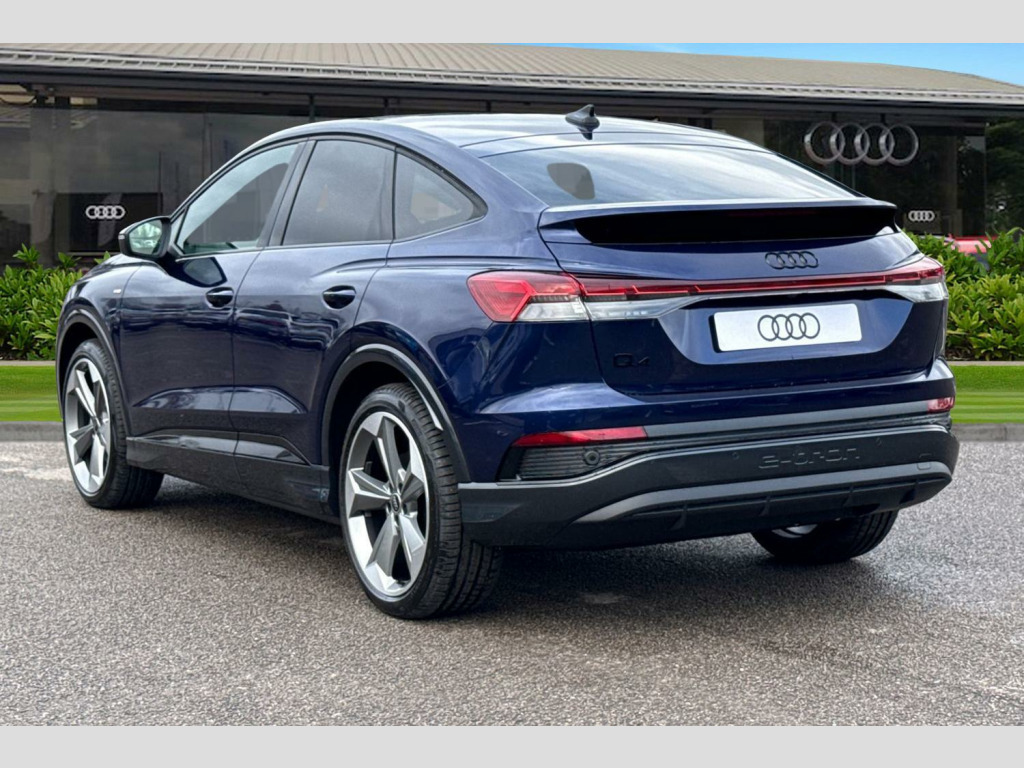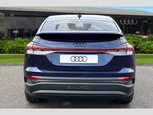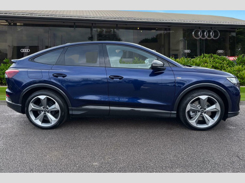 Feast your eyes on this Brand-New Audi Q4 Sportback Black Edition 45 e-tron in Navarra Blue with its 21" 5-arm rotor evo design alloy wheels which look superb out on the roads. The optional Matrix LED headlights with LED rear lights create that strong visibility in all weather conditions. The 3-zone electronic climate control can be adjusted to your preferred climate on all journeys.