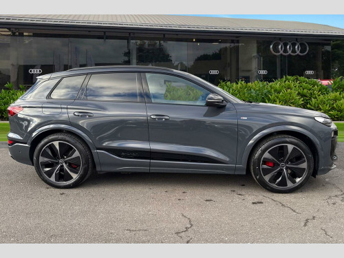 Introducing this Brand-New Audi Q6 SUV Edition 1 e-tron in Magnet Grey, with its optional 21" 5-arm aero design Audi sport alloy wheels which look superb out on the roads. The Matrix LED headlights with LED rear lights pro, create that strong visibility in all weather conditions.