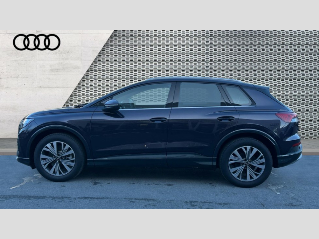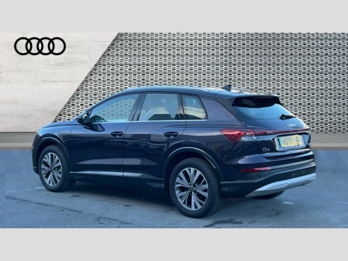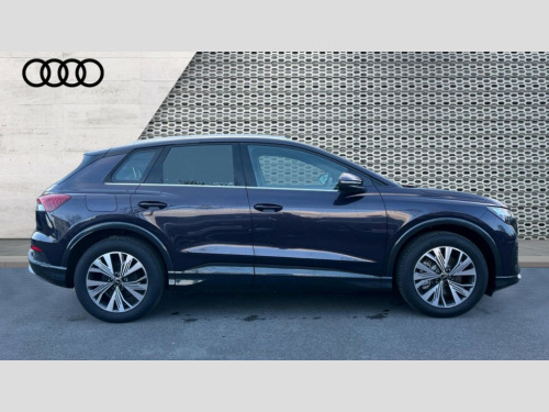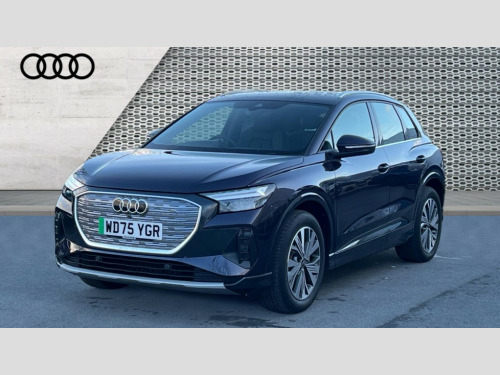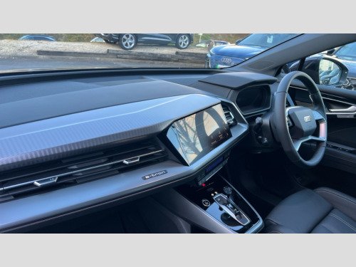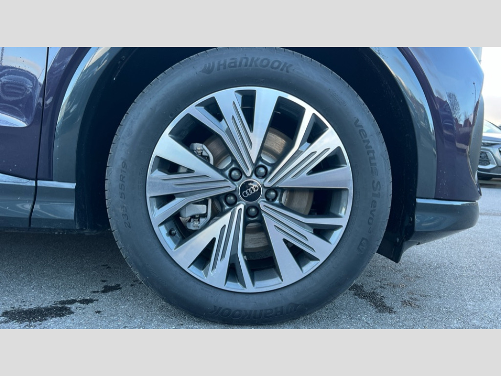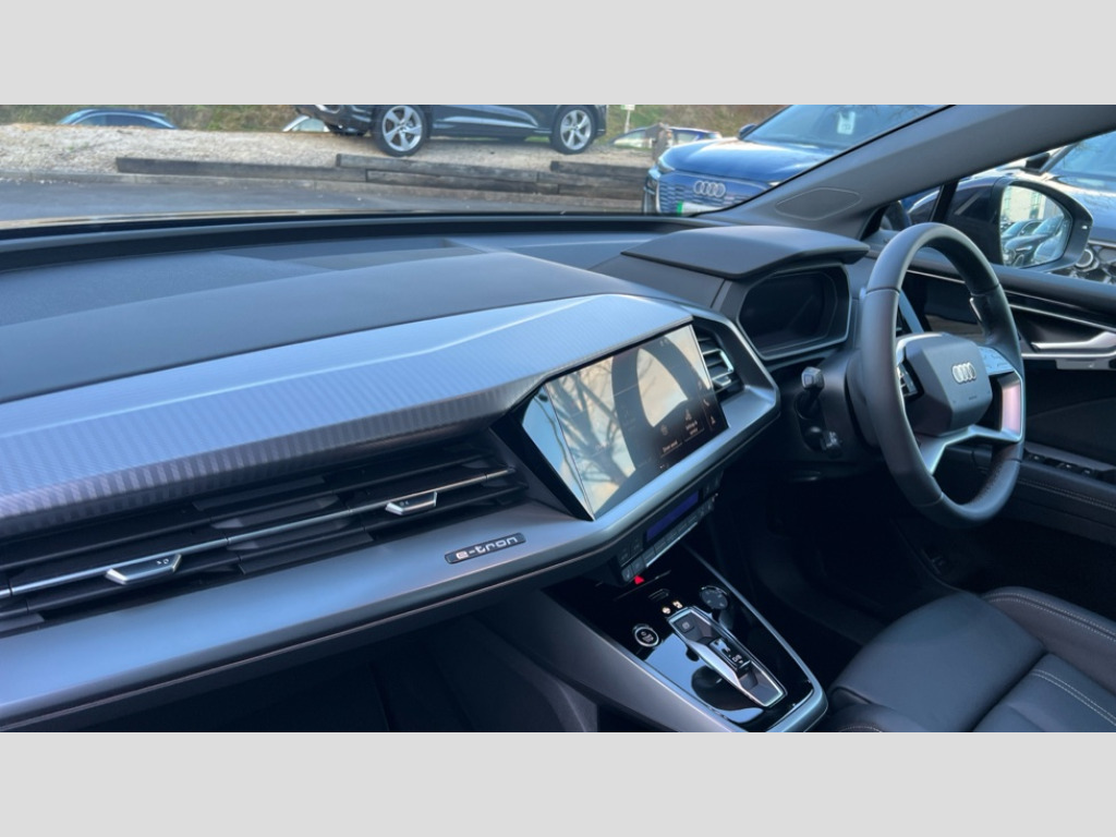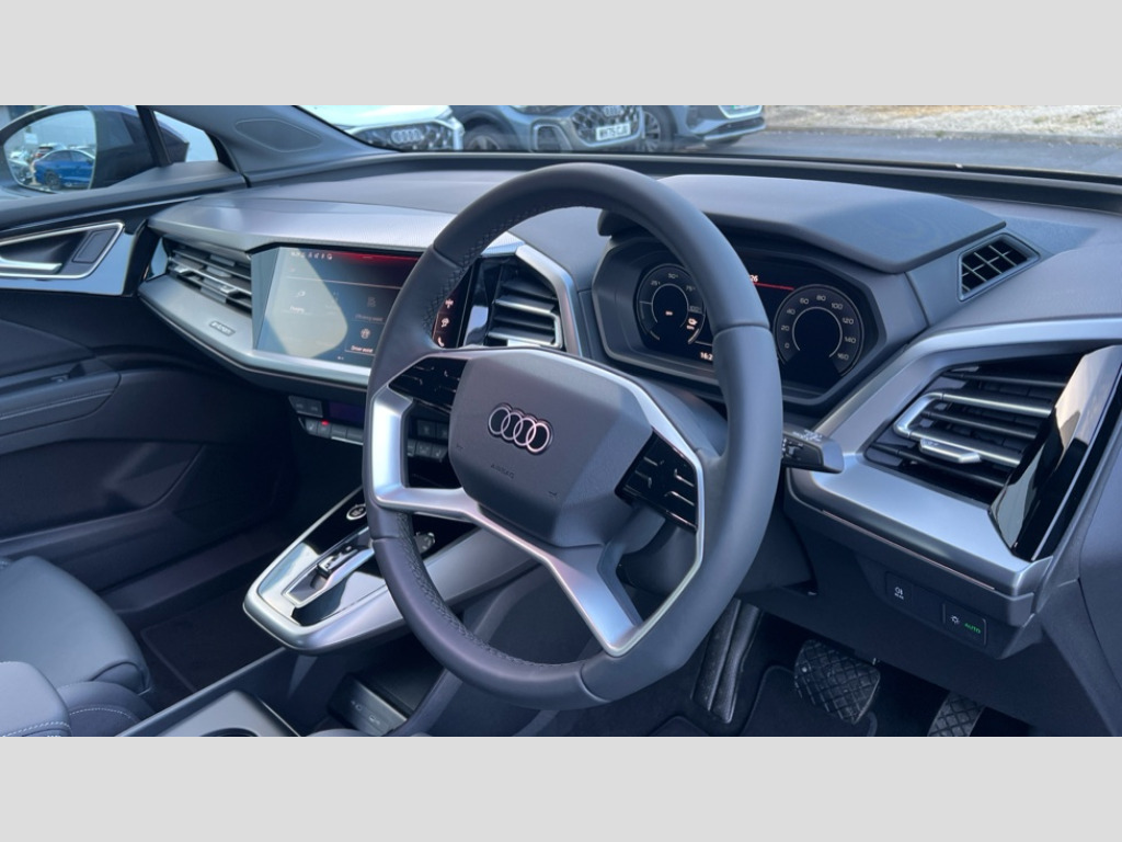 Audi Q4 150kW 40 63kWh Sport 5dr Auto [Leather] Adaptive cruise control with speed limiter, Advanced driver attention and drowsiness monitor, Audi application store, Audi connect safety and service (e-call), Audi drive select, Audi side assist with exit warning and rear cross traffic assist, Audi smartphone interface, Audi Virtual Cockpit - 10.25" display, Bluetooth interface, Camera based traffic sign recognition, Lane departure warning including emergency assist, MMI Navigation Plus with high resolution 11.6 inch touchscreen colour display, Power operated tailgate with sensor controlled release, Progressive steering, Rear view camera, Swerve assist and turn assist, 11KW onboard charger, 165kW DC charging capability, AC and DC charging access point positioned on driver's side rear, Comfort suspension, Control unit with household plug and charging cable, Mode 2, Type 2 / G (10A), Mode 3 type 2 AC charging cable 22kW, 2 USB-C ports with charge and data functions, Audi sound system with 8 loudspeakers incl. centre speaker, subwoofer and 6-channel amplifier with total output of 180 watts, DAB Digital radio, Aluminium roof rails, Body coloured door mirrors, Contrast bumpers in Manhattan grey, Electrically adjustable/heated/folding/auto dimming door mirrors with integrated LED indications + kerb view function for passenger side, Frameless auto dimming interior rear view mirror, Heat insulating glass windscreen, Heated rear window, LED 3rd brake light, LED daytime running lights, LED Headlights, LED rear lights, Projection light in the exterior mirrors, e-tron logo projected from the underside of the exterior mirror onto the ground, Rear side wing doors, Rear wiper, Single frame grille with a structured, closed surface within an octagonal shape, 3 seat bench in 2nd row, 3 zone automatic air conditioning, 4 way electric lumbar support for driver and front passenger, 40/20/40 split folding rear seat bench, Accent surfaces in gloss black - centre console control panel, switch panel and trim on front doors in gloss black, Black carpets, Comfort auxiliary air conditioning, Door armrests in leatherette, Front centre armrest, Front door sill trims with aluminium inlay, Front sport seats with integrated head restraints, Front/rear floor mats, Heated front seats, Rear centre armrest with cupholders, Rear head restraints, Single front passenger seat, Steel grey cloth headlining, Twin leather/leatherette upholstery with front sport seats with integrated head restraints, Ambient lighting package - Q4 E-tron, Gloss styling pack - Q4 E-tron, Non smoking pack - Q4 E-tron, 3x3 point rear seatbelts, Acoustic vehicle alerting system, Audi pre sense basic and rear, Convenience key with safelock, Driver and front passenger airbag with passenger airbag deactivation, Electric child locks, First aid kit with warning triangle and vests, Front side airbags with head airbag system and front interaction airbag, i - Size child seat mounting on the front passenger side and i - Size and top tether on the outer rear seats, Pre-sense front with pedestrian and cyclist detection, Rear seat occupant reminder for child presence detection, Seat belt monitoring, Tyre pressure loss indicator, Anti theft alarm, Anti-theft wheel bolts, Keyless Go, Aluminium look interior elements, Black dashboard, Inlay in anthracite aluminium convergence, accent surfaces on instrument panel and centre console trim in silk paint effect finish, platinum grey, 19" 5 W spoke aero alloy wheels with graphite grey gloss turned finish, Vehicle tool kit with tyre repair kit