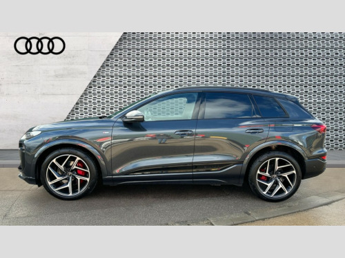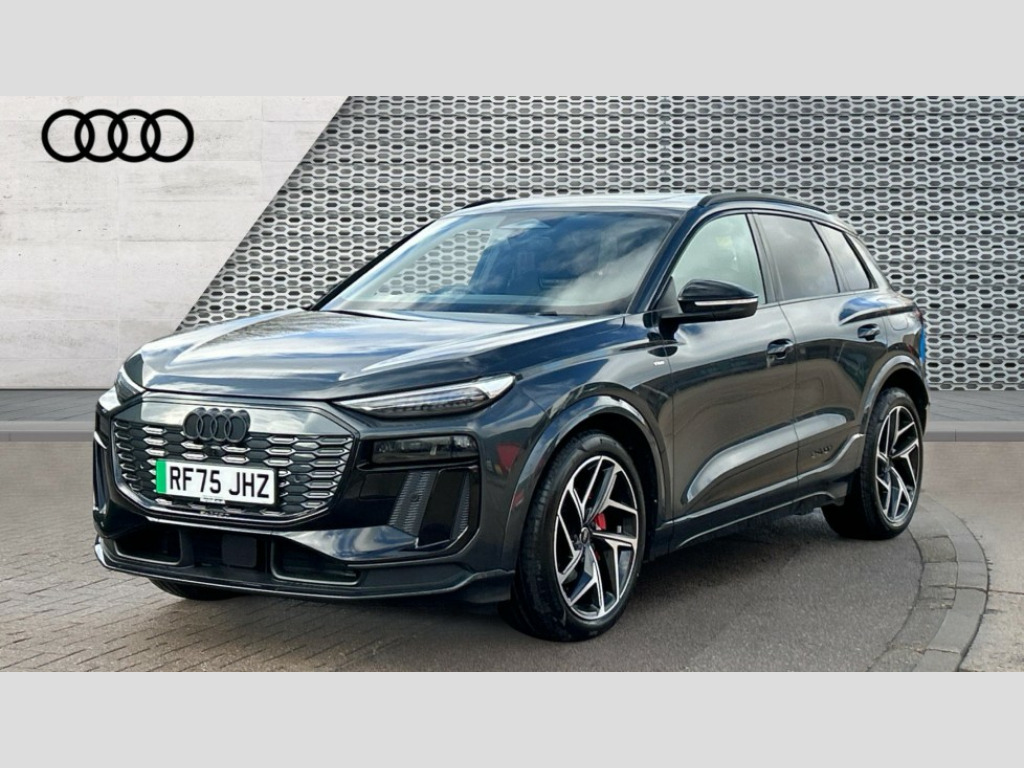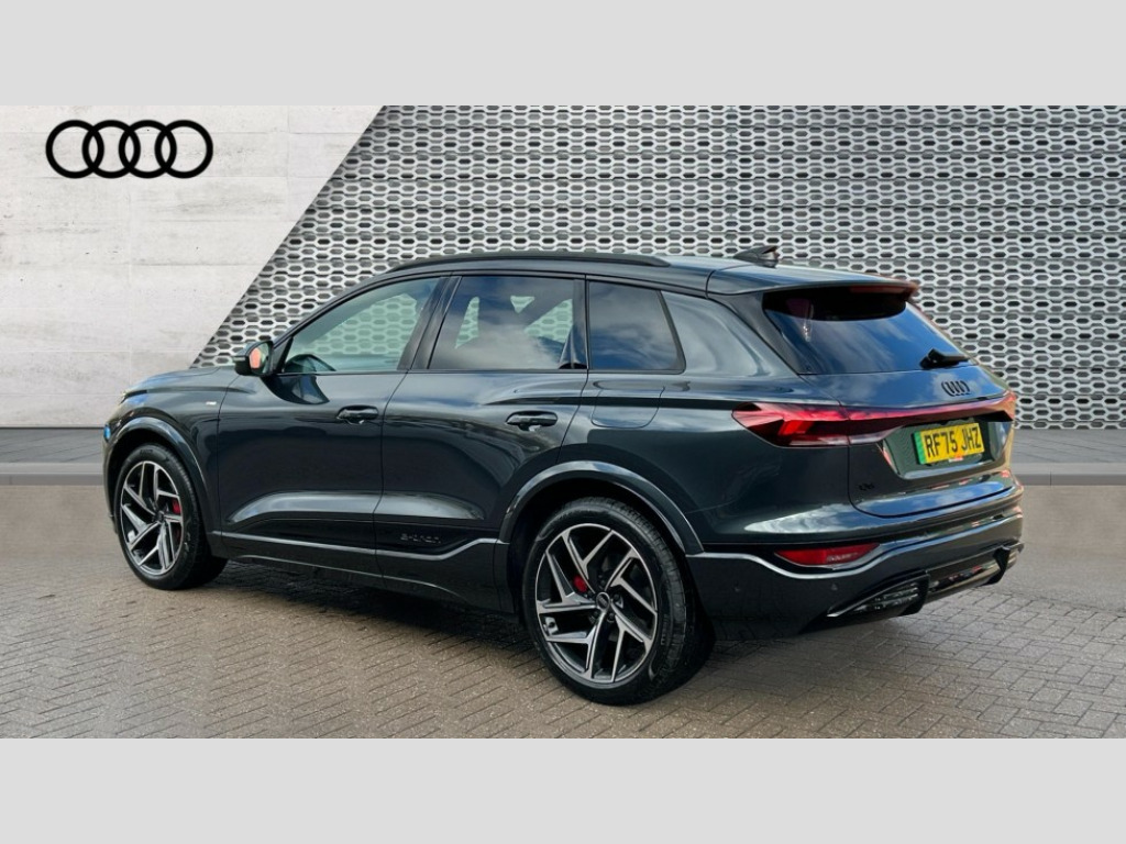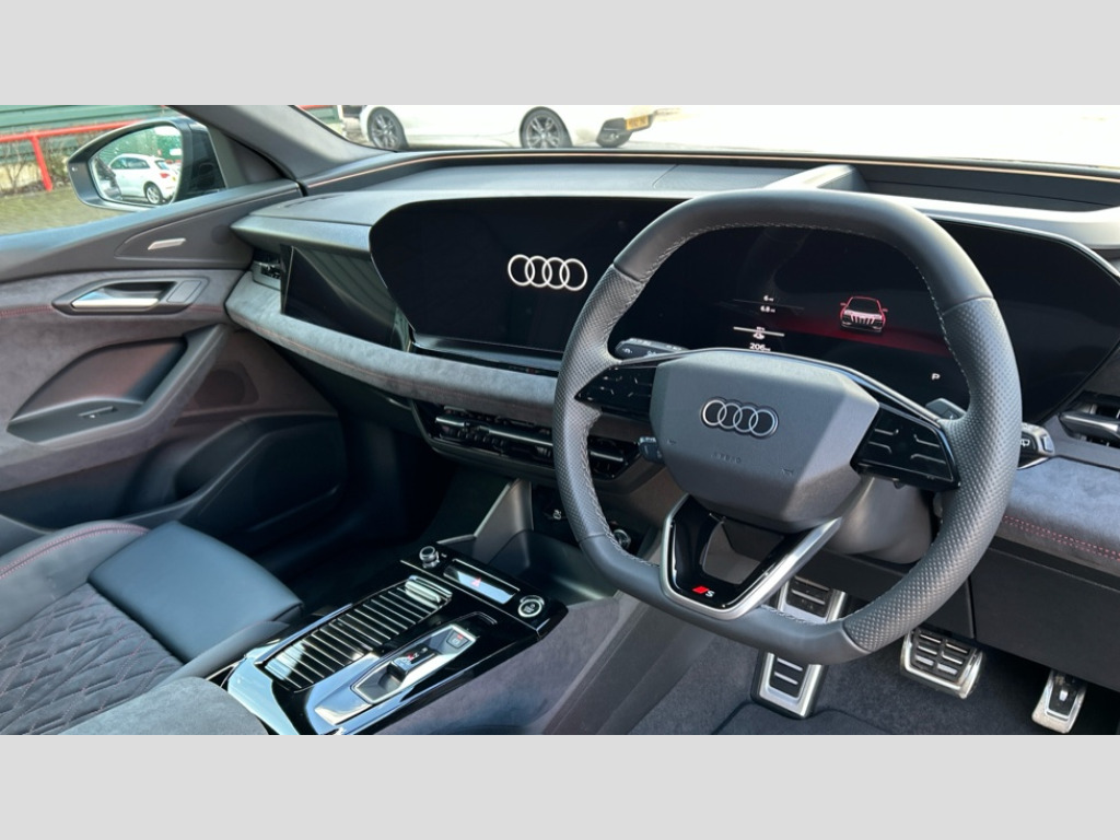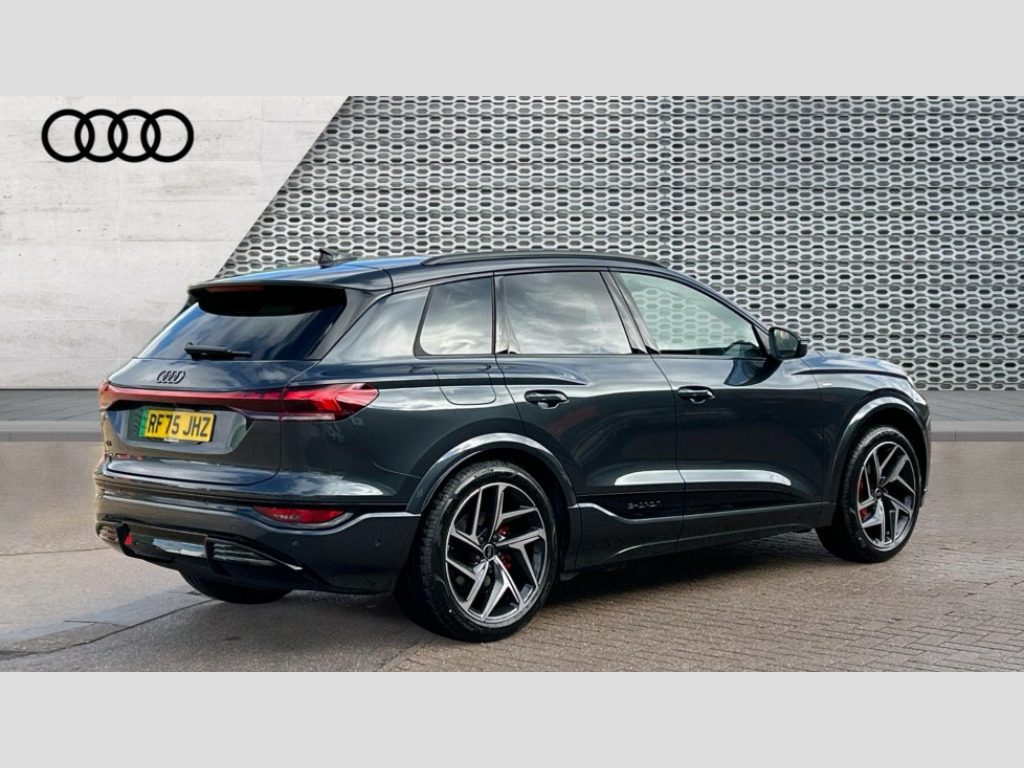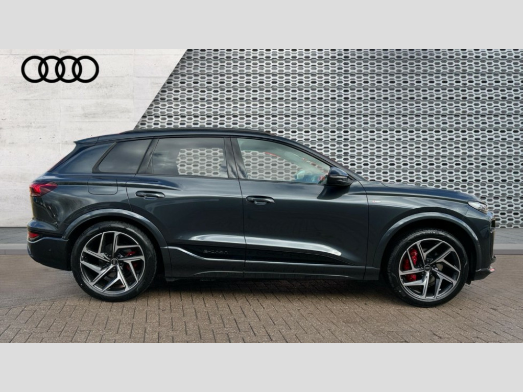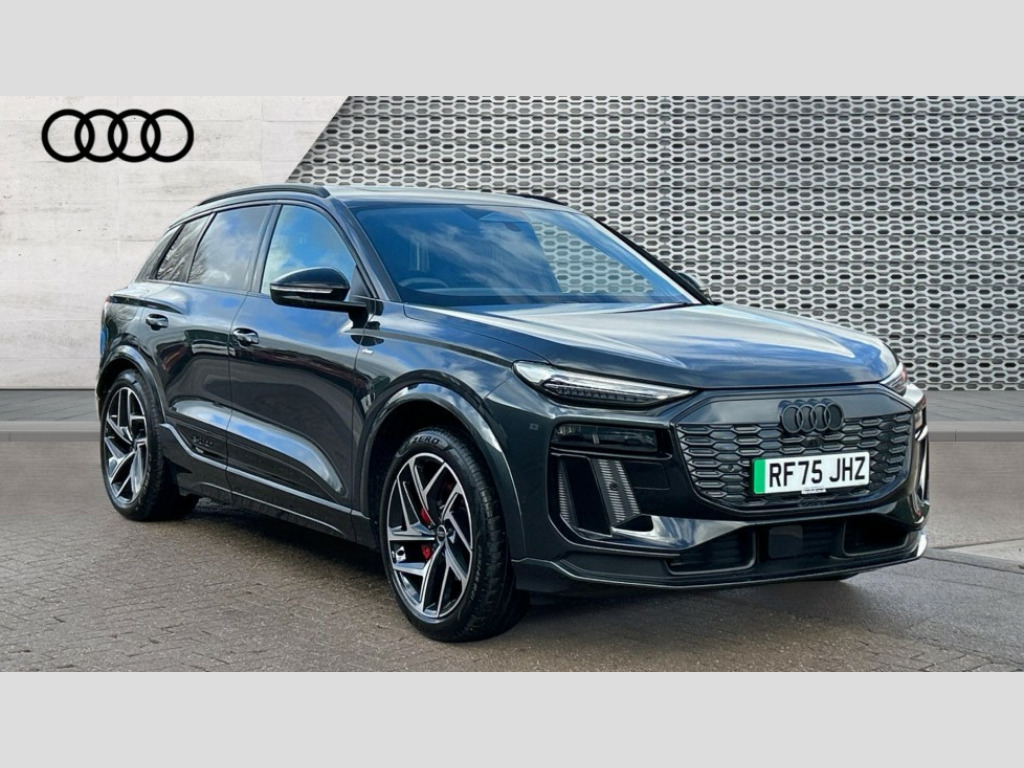 Audi Q6 225kW Performance 100kWh Edition 1 5dr Auto Adaptive cruise assist plus with steering intervention, Attention and drowsiness detection with driver observation, Audi application store, Audi assistant, Audi connect emergency call and service, Audi connect navigation and infotainment, Audi connect remote and controls, Audi digital key (Sharing with additional users and other devices is not possible), Audi drive select, Audi parking system plus includes 360 degree display with front and rear sensors, Audi virtual cockpit plus with 11.9" OLED colour display, Camera traffic sign recognition, Comfort key with SAFELOCK, Intersection assist, Lane change assistant with exit warning system, rear cross traffic alert and rear turn assist, Lane departure warning with emergency assist, MMI 10.9" front passenger touch display, Park assist plus, Progressive steering with servotronic, Reversing camera, Smartphone interface, Swerve assist and turn assist, Traffic sign based speed limiter, 11KW onboard charger, Compact e-tron charging system, Household plug type G (GB), Industrial connector CEE 32A, 230V, long and straight for the e-tron charging system, Mode 3 charging cable for public charging, 22 KW (AC), On-board charger up to 270 KW (DC), Plug n charge, Second charging port (AC), Sport suspension, Wall mounted bracket for compact e-tron charging system, 2 front and 2 rear USB-C ports, Audi sound system impressive sound with 10 loudspeakers including centre speaker and subwoofer, 6-channel amplifier with a total output of 180 watts, DAB Digital radio, Smartphone compartment with wireless charging, Acoustic windscreen, Active digital light signature with eight combination of active daytime running light, Auto dimming rear view mirror, Black roof rails, Black window surrounds, Door mirror memory, Electric adjustable/heated/folding door mirrors with auto dimming, Electric charging cover, Front door sill trims with aluminium inlays, illuminated with 'S' logo, Headlight cleaning system, High beam assist, LED 3rd brake light, LED rear lights pro incl. dynamic rear indicators and illuminated light strip with animated coming and leaving home function, Matrix LED headlights, Privacy glass, Rear side wing doors, Rear wiper, Side and rear windows in heat insulating glass, Towbar preparation, White rhombus logo projection light in exterior mirrors, 3 bench rear seats in 2nd row, 3 rear head restraints, 3 spoke multifunction heated leather steering wheel with touch control, flat on top and bottom, with 'S' badge,contrast stitch, 3 zone automatic climate control including comfort remote pre-conditioning, 40:20:40 split folding rear seat bench , centre armrest and cupholders, 64L frunk storage space under the bonnet, Black carpets, Black cloth headlining, Comfort front centre armrest, Driver seat memory function, Electrically adjustable front seats, Front sport seats plus with 'S' embossed logo, Front/rear floor mats, Heat pump, Heated front and outer rear seats, i-Size child seat mounting on the front passenger side and outer rear seats, i-Size and top tether on the outer rear seats, Integrated front head restraints, Luggage compartment lid, electrically opening and closing, Manually adjustable steering column, Pneumatically adjustable lumbar support with massage function, Single front passenger seat, Stainless steel pedals and footrest, Steering wheel grips in perforated leather and shift paddles, Ambient lighting pack - Q6, Black styling package plus - Q6, 3 point seatbelts on all seats, Airbags in front, front passenger airbag is automatically activated and deactivated, E-tron sport sound, Electric child locks, Front and rear side airbags with head airbag system, Front emergency brake assist, Front interaction airbag, Hill hold assist, Proactive passenger protection system for front, sides and rear, Rear seat occupant reminder for child presence detection, Red brake calipers, Seat belt monitoring, Tyre pressure loss indicator, Warning triangle and first aid kit, Anti-theft wheel bolts, Thatcham approved category 1 anti theft alarm, Accent surfaces and control buttons in gloss black, Black dashboard with contrast stitching, Softwrap in Dinamica with contrast stitching, Upper and lower interior elements in dinamica microfiber, Tyre repair kit