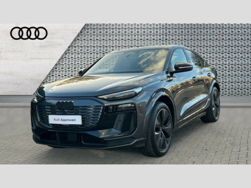 Audi Q6 285kW Quattro 100kWh Edition 1 5dr Auto Adaptive cruise control, Advanced driver attention and fatigue montior, Audi application store, Audi assistant, Audi connect emergency call and service, Audi connect navigation and infotainment, Audi connect remote and controls, Audi digital key (Sharing with additional users and other devices is not possible), Audi drive select, Audi parking system plus includes 360 degree display with front and rear sensors, Audi virtual cockpit plus with 11.9" OLED colour display, Camera traffic sign recognition, Comfort key with SAFELOCK, Intersection assist, Lane change assistant with exit warning system, rear cross traffic alert and rear turn assist, Lane departure warning with emergency assist, MMI 10.9" front passenger touch display, MMI navigation plus with high resolution 14.5" OLED touchscreen colour display, Park assist plus, Progressive steering with servotronic, Smartphone interface, Swerve assist and turn assist, Top view camera, Traffic sign based speed limiter, 11KW onboard charger, Compact e-tron charging system, Household plug type G (GB), Industrial connector CEE 32A, 230V, long and straight for the e-tron charging system, Mode 3 charging cable for public charging, 22 KW (AC), On-board charger up to 270 KW (DC), Plug n charge, Quattro all wheel drive, Second charging port (AC), Sport suspension, Wall mounted bracket for compact e-tron charging system, 2 front and 2 rear USB-C ports, Audi sound system impressive sound with 10 loudspeakers including centre speaker and subwoofer, 6-channel amplifier with a total output of 180 watts, DAB Digital radio, Smartphone compartment with wireless charging, Acoustic windscreen, Active digital light signature with eight combination of active daytime running light, Auto dimming rear view mirror, Black window surrounds, Door mirror memory, Electric adjustable/heated/folding door mirrors with auto dimming, Electric charging cover, Front door sill trims with aluminium inlays, illuminated, Headlight cleaning system, High beam assist, LED 3rd brake light, LED rear lights pro incl. dynamic rear indicators and illuminated light strip with animated coming and leaving home function, Matrix LED headlights, Privacy glass, Rear side wing doors, Rear wiper, Side and rear windows in heat insulating glass, Towbar preparation, White rhombus logo projection light in exterior mirrors, 3 bench rear seats in 2nd row, 3 rear head restraints, 3 spoke multifunction heated leather steering wheel with touch control, flat on top and bottom, with 'S' badge,contrast stitch, 3 zone automatic climate control including comfort remote pre-conditioning, 40:20:40 split folding rear seat bench , centre armrest and cupholders, 64L frunk storage space under the bonnet, Black carpets, Black cloth headlining, Comfort front centre armrest, Driver seat memory function, Electrically adjustable front seats, Front sport seats plus with 'S' embossed logo, Front/rear floor mats, Heat pump, Heated front and outer rear seats, i-Size child seat mounting on the front passenger side and outer rear seats, i-Size and top tether on the outer rear seats, Integrated front head restraints, Luggage compartment lid, electrically opening and closing, Manually adjustable steering column, Pneumatically adjustable lumbar support with massage function, Single front passenger seat, Stainless steel pedals and footrest, Steering wheel grips in perforated leather and shift paddles, Ambient lighting pack - Q6, Black styling package plus - Q6, 3 point seatbelts on all seats, Acoustic vehicle alerting system, Airbags in front, front passenger airbag is automatically activated and deactivated, E-tron sport sound, Electric child locks, Front and rear side airbags with head airbag system, Front emergency brake assist, Front interaction airbag, Hill hold assist, Occupant detection sensor - 2nd row, Proactive passenger protection system for front, sides and rear, Rear seat occupant reminder for child presence detection, Red brake calipers, Seat belt monitoring, Tyre pressure loss indicator, Warning triangle and first aid kit, Anti-theft wheel bolts, Thatcham approved category 1 anti theft alarm, Accent surfaces and control buttons in gloss black, Black dashboard with contrast stitching, Softwrap in Dinamica with contrast stitching, Upper and lower interior elements in dinamica microfiber, Tyre repair kit