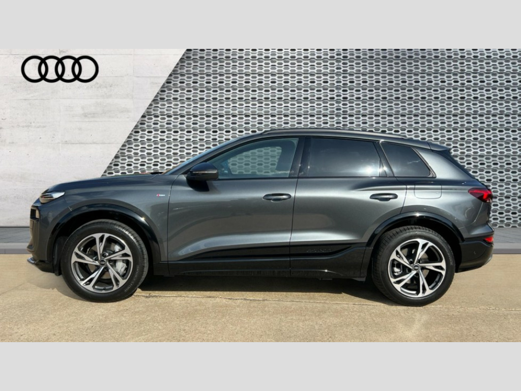 Audi Q6 285kW Quattro 100kWh S Line 5dr Auto Adaptive cruise control, Advanced driver attention and fatigue montior, Audi application store, Audi assistant, Audi connect emergency call and service, Audi connect navigation and infotainment, Audi connect remote and controls, Audi digital key (Sharing with additional users and other devices is not possible), Audi drive select, Audi lane departure warning, Audi parking system plus includes 360 degree display with front and rear sensors, Audi smartphone interface, Audi virtual cockpit plus with 11.9" OLED colour display, Camera traffic sign recognition, Comfort key with SAFELOCK, Intersection assist, Lane change assistant with exit warning system, rear cross traffic alert and rear turn assist, MMI navigation plus with high resolution 14.5" OLED touchscreen colour display, Park assist plus, Progressive steering with servotronic, Swerve assist and turn assist, Top view camera, Traffic sign based speed limiter, 11KW onboard charger, Comfort suspension, Compact e-tron charging system, Household plug type G (GB), Industrial connector CEE 32A, 230V, long and straight for the e-tron charging system, Mode 3 charging cable for public charging, 22 KW (AC), On-board charger up to 270 KW (DC), Plug n charge, Quattro all wheel drive, Second charging port (AC), Wall mounted bracket for compact e-tron charging system, 2 front and 2 rear USB-C ports, Audi sound system impressive sound with 10 loudspeakers including centre speaker and subwoofer, 6-channel amplifier with a total output of 180 watts, DAB Digital radio, Smartphone compartment with wireless charging, Acoustic windscreen, Auto dimming rear view mirror, Black roof rails, Black window surrounds, Body colour door mirrors, Electric adjustable/heated/folding door mirrors with auto dimming, Electric charging cover, Front door sill trims with aluminium inlays, illuminated with 'S' logo, Headlight cleaning system, High beam assist, LED 3rd brake light, LED headlights plus incl. digital DRL, dynamic coming and leaving home function with turning/all weather/motorway/manouevring and intersection lights, LED rear lights pro incl. dynamic rear indicators and illuminated light strip with animated coming and leaving home function, Privacy glass, Rear side wing doors, Rear wiper, S Line badge on the front wings, S line bumpers, S line exterior styling with radiator grille in body colour and accents in dark selenite silver front and rear, Side and rear windows in heat insulating glass, Towbar preparation, White rhombus logo projection light in exterior mirrors, 3 bench rear seats in 2nd row, 3 rear head restraints, 3 spoke multifunction heated leather steering wheel with touch control, flat on top and bottom, with 'S' badge,contrast stitch, 3 zone automatic climate control including comfort remote pre-conditioning, 4-way electric lumbar support, 40:20:40 split folding rear seat bench , centre armrest and cupholders, 64L frunk storage space under the bonnet, Black carpets, Black cloth headlining, Comfort front centre armrest, Front sport seats with 'S' embossed logo, Front/rear floor mats, Heat pump, Heated front and outer rear seats, i-Size child seat mounting on the front passenger side and outer rear seats, i-Size and top tether on the outer rear seats, Integrated front head restraints, Luggage compartment lid, electrically opening and closing, Manually adjustable front seats, Manually adjustable steering column, Single front passenger seat, Stainless steel pedals and footrest, Steering wheel grips in perforated leather and shift paddles, Upper and lower interior elements in leatherette plus, Ambient lighting pack - Q6, 3 point seatbelts on all seats, Acoustic vehicle alerting system, Airbags in front, front passenger airbag is automatically activated and deactivated, Electric child locks, Front emergency brake assist, Front interaction airbag, Front side and head airbags, Hill hold assist, Rear seat occupant reminder for child presence detection, Seat belt monitoring, Tyre pressure loss indicator, Warning triangle and first aid kit, Anti-theft wheel bolts, Thatcham approved category 1 anti theft alarm, Accent surfaces and control buttons in gloss black, Anthracite matt brushed aluminium inlays, Black dashboard with contrast stitching, Softwrap in leatherette with contrast stitching, Tyre repair kit