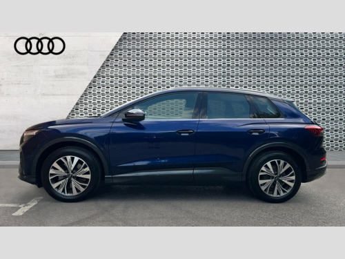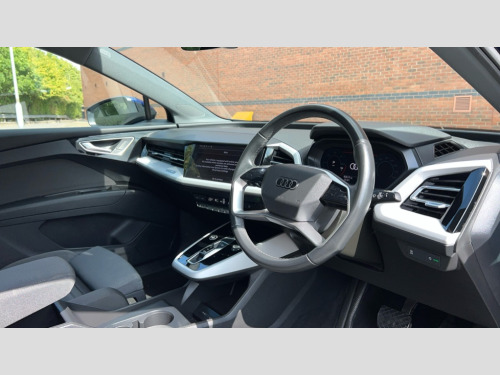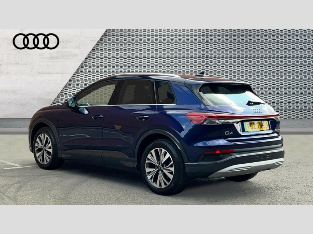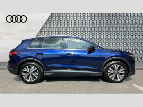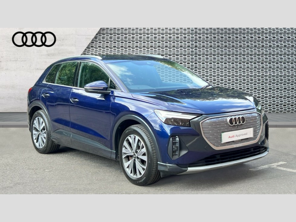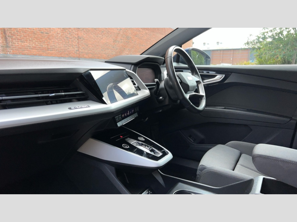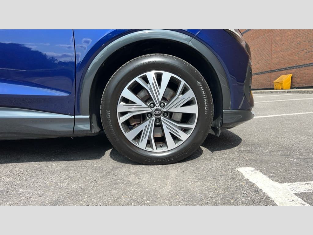 Audi Q4 150kW 40 82kWh Sport 5dr Auto Adaptive cruise control with speed limiter, Audi connect safety and service (e-call), Audi drive select, Audi smartphone interface, Audi Virtual Cockpit - 10.25" display, Bluetooth interface, Camera based traffic sign recognition, Lane departure warning system, MMI Navigation Plus with high resolution 11.6 inch touchscreen colour display, Parking system plus - front and rear parking sensors, Power operated tailgate, Progressive steering, Rear view camera, Swerve assist and turn assist, 11KW onboard charger, 135kW DC charging capability, AC and DC charging access point positioned on the rear right, Comfort suspension, Compact e-tron charging system, Household plug type G (GB), Industry plug CEE 32 A/230 V/6 h/long + straight, Mode 3 type 2 AC charging cable 22kW, 2 USB-C ports with charge and data functions, Audi sound system with 8 loudspeakers incl. centre speaker, subwoofer and 6-channel amplifier with total output of 180 watts, DAB Digital radio, Acoustic glass windscreen, Aluminium roof rails, Body coloured door mirrors, Contrast bumpers in Manhattan grey, Electrically adjustable/heated/folding/auto dimming door mirrors with integrated LED indications + kerb view function for passenger side, Frameless auto dimming interior rear view mirror, Heated rear window, LED 3rd brake light, LED daytime running lights, LED Headlights, LED rear lights, Projection light in the exterior mirrors, e-tron logo projected from the underside of the exterior mirror onto the ground, Rear side wing doors, Rear wiper, Single frame grille with a structured, closed surface within an octagonal shape, 3 seat bench in 2nd row, 3 zone automatic air conditioning, 4 way electric lumbar support for driver and front passenger, 40:60 Split folding rear seat or folded fully, Accent surfaces in gloss black - centre console control panel, switch panel and trim on front doors in gloss black, Comfort auxiliary air conditioning, Comfort front centre armrest, Driver/passenger manual seat height adjustment, Front and rear head restraints, Front door sill trims with aluminium inlay, Front/rear floor mats, Heated front seats, Single front passenger seat, Steel grey cloth headlining, Twin spoke multifunction leather steering wheel with trim in chrome look, Gloss styling pack - Q4 E-tron, Non smoking pack - Q4 E-tron, White interior light pack - Q4 E-tron, 3x3 point rear seatbelts, Acoustic vehicle alerting system, Driver and front passenger airbag with passenger airbag deactivation, Electric child locks, First aid kit with warning triangle and vests, Front side airbags with head airbag system and front interaction airbag, i - Size child seat mounting on the front passenger side and i - Size and top tether on the outer rear seats, Pre-sense front with pedestrian and cyclist detection, Seat belt monitoring, Tyre pressure loss indicator, Anti theft alarm, Anti-theft wheel bolts, Keyless Go, Aluminium look interior elements, Inlay in black paint finish, accent surfaces on the instrument panel and centre console in silver paint effect finish, 19" 5 W spoke aero alloy wheels with graphite grey gloss finish, Vehicle tool kit with tyre repair kit