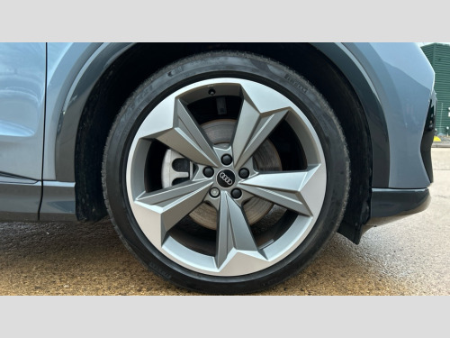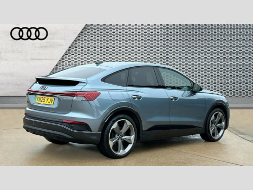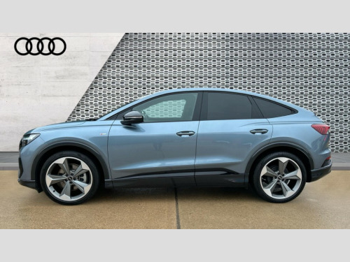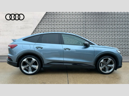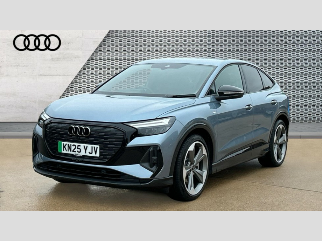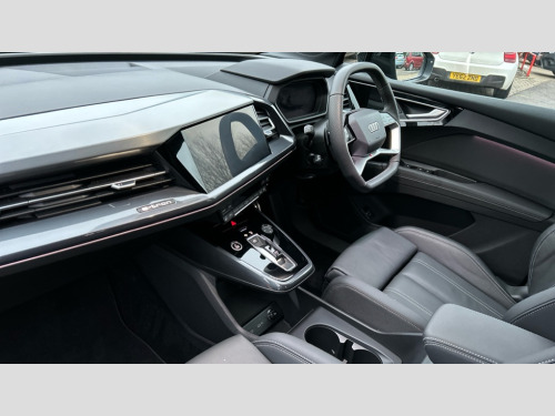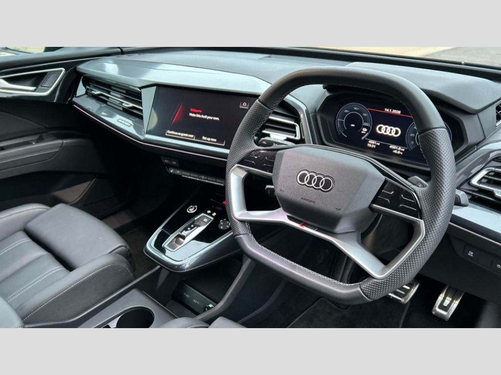Audi Q4 210kW 45 82kWh Black Edition 5dr Auto Adaptive cruise control with speed limiter, Advanced driver attention and drowsiness monitor, Audi application store, Audi connect safety and service (e-call), Audi drive select, Audi smartphone interface, Audi Virtual Cockpit - 10.25" display, Bluetooth interface, Camera based traffic sign recognition, Lane departure warning including emergency assist, MMI Navigation Plus with high resolution 11.6 inch touchscreen colour display, Power operated tailgate with sensor controlled release, Progressive steering, Rear view camera, Swerve assist and turn assist, 11KW onboard charger, 175kW DC charging capability, AC and DC charging access point positioned on driver's side rear, Control unit with household plug and charging cable, Mode 2, Type 2 / G (10A), Mode 3 type 2 AC charging cable 22kW, Sport suspension, 2 USB-C ports with charge and data functions, Audi sound system with 8 loudspeakers incl. centre speaker, subwoofer and 6-channel amplifier with total output of 180 watts, DAB Digital radio, Audi rings and model badging in black (with powertrain designation removed), Contrast bumpers in Manhattan grey, Electrically adjustable/heated/folding/auto dimming door mirrors with integrated LED indications + kerb view function for passenger side, Frameless auto dimming interior rear view mirror, Heat insulating glass windscreen, Heated rear window, LED 3rd brake light, LED daytime running lights, LED Headlights, LED rear lights, Privacy glass - dark-tinted rear window, rear door windows and rear side windows, Projection light in the exterior mirrors, e-tron logo projected from the underside of the exterior mirror onto the ground, Rear side wing doors, Rear wiper, S Line badges on the front wings, S line exterior styling, Single frame grille with a structured, closed surface within an octagonal shape, 3 seat bench in 2nd row, 3 zone automatic air conditioning, 4 way electric lumbar support for driver and front passenger, 40/20/40 split folding rear seat bench, Accent surfaces in gloss black - centre console control panel, switch panel and trim on front doors in gloss black, Black carpets, Black cloth headlining, Comfort auxiliary air conditioning, Door armrests in leatherette, Flat top and bottomed twin-spoke leather multifunction sport steering wheel with shift paddles for recuperation, Front centre armrest, Front door sill trims with aluminium inlay, illuminated with S logo, Front sport seats with integrated head restraints, Front/rear floor mats, Heated front seats, Manual seat adjustment for driver and front passenger seats, Pedals in stainless steel, Rear centre armrest with cupholders, Rear head restraints, Single front passenger seat, Ambient lighting plus pack - Q4 E-tron, Black styling pack plus - Q4 E-tron, Non smoking pack - Q4 E-tron, 3x3 point rear seatbelts, Acoustic vehicle alerting system, Convenience key with safelock, Driver and front passenger airbag with passenger airbag deactivation, Electric child locks, First aid kit with warning triangle and vests, Front side airbags with head airbag system and front interaction airbag, i - Size child seat mounting on the front passenger side and i - Size and top tether on the outer rear seats, Pre-sense front with pedestrian and cyclist detection, Rear seat occupant reminder for child presence detection, Seat belt monitoring, Tyre pressure loss indicator, Anti theft alarm, Anti-theft wheel bolts, Keyless Go, Aluminium look interior elements, Black dashboard, 21" 5 arm rotor evo Audi Sport alloy wheels in matt grey, gloss turned finish and tyre seal technology, Vehicle tool kit
