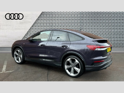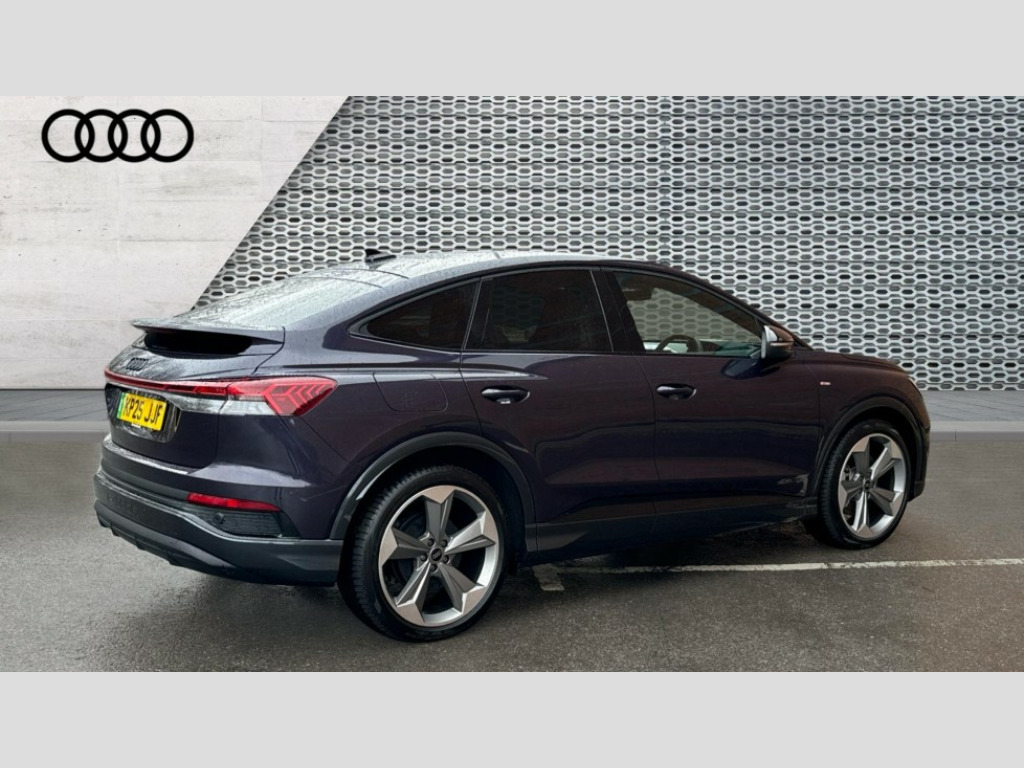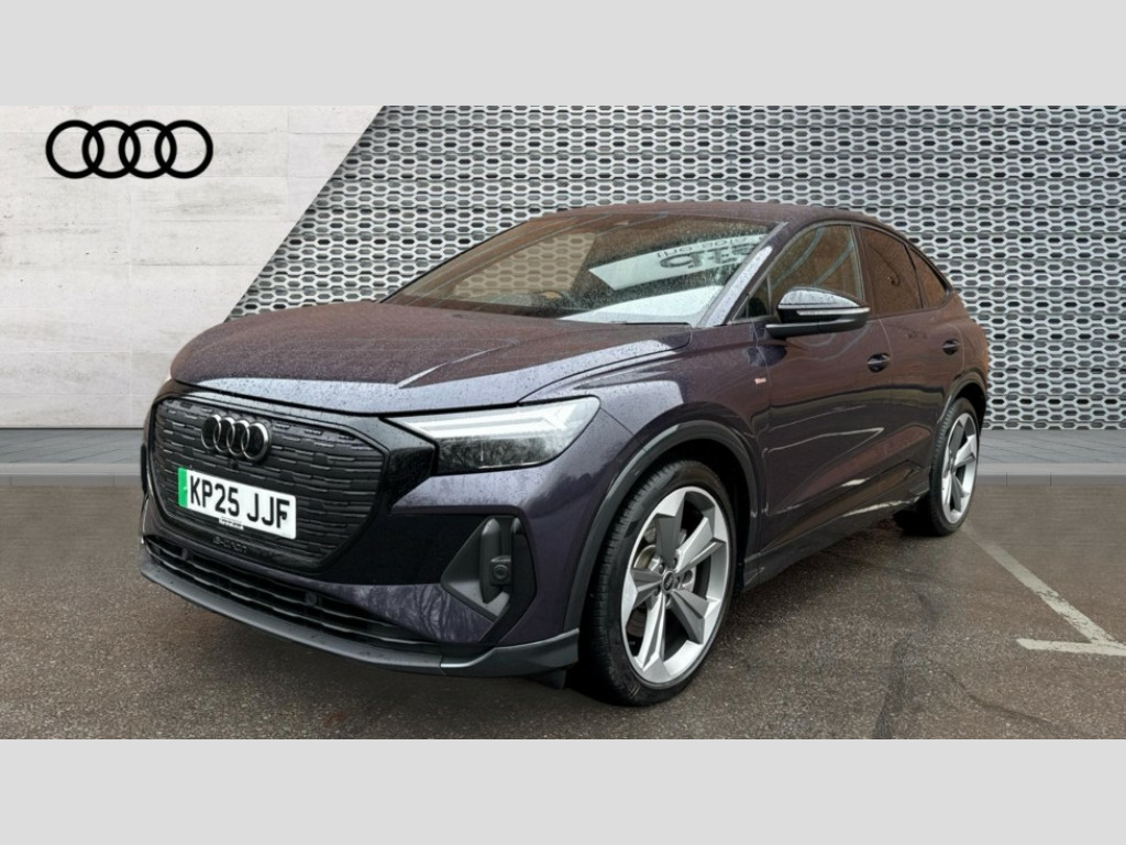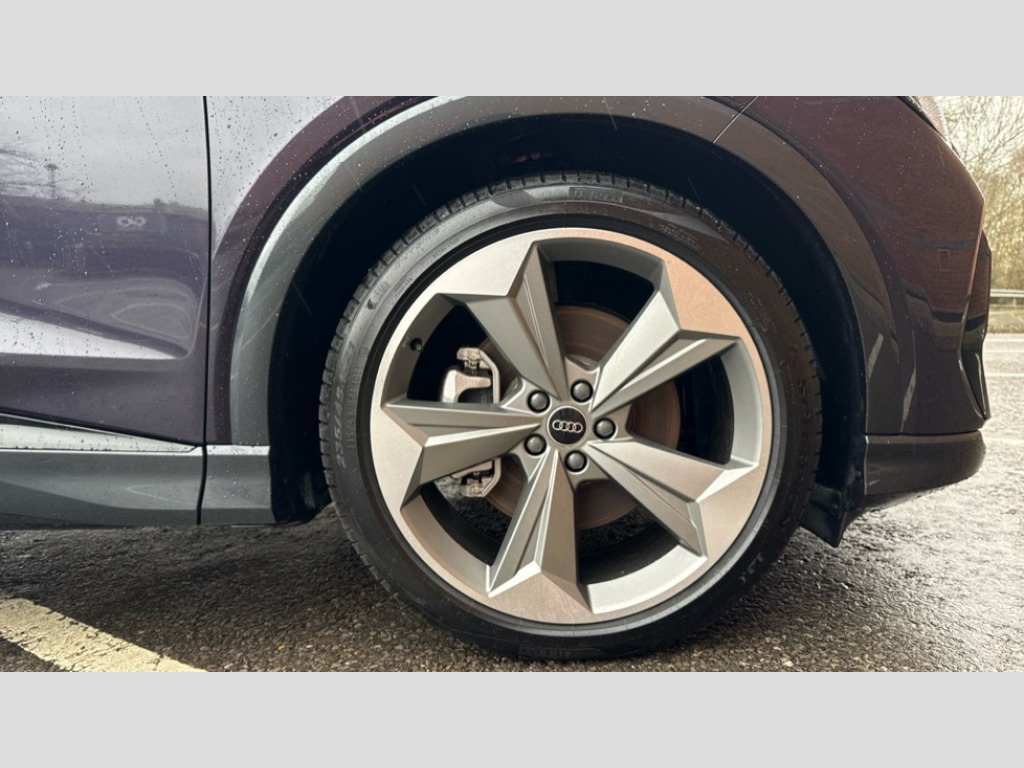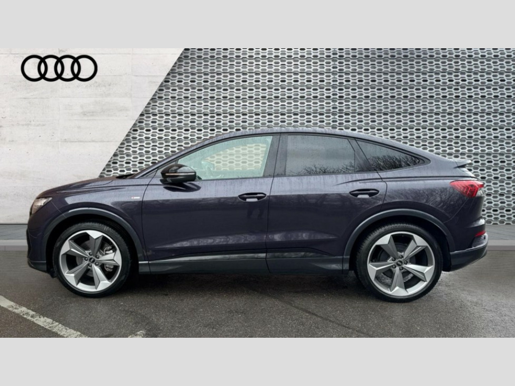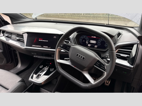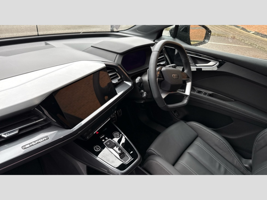 Audi Q4 210kW 45 82kWh Black Edition 5dr Auto Adaptive cruise control with speed limiter, Advanced driver attention and drowsiness monitor, Audi application store, Audi connect safety and service (e-call), Audi drive select, Audi smartphone interface, Audi Virtual Cockpit - 10.25" display, Bluetooth interface, Camera based traffic sign recognition, Lane departure warning including emergency assist, MMI Navigation Plus with high resolution 11.6 inch touchscreen colour display, Power operated tailgate with sensor controlled release, Progressive steering, Rear view camera, Swerve assist and turn assist, 11KW onboard charger, 175kW DC charging capability, AC and DC charging access point positioned on driver's side rear, Control unit with household plug and charging cable, Mode 2, Type 2 / G (10A), Mode 3 type 2 AC charging cable 22kW, Sport suspension, 2 USB-C ports with charge and data functions, Audi sound system with 8 loudspeakers incl. centre speaker, subwoofer and 6-channel amplifier with total output of 180 watts, DAB Digital radio, Audi rings and model badging in black (with powertrain designation removed), Contrast bumpers in Manhattan grey, Electrically adjustable/heated/folding/auto dimming door mirrors with integrated LED indications + kerb view function for passenger side, Frameless auto dimming interior rear view mirror, Heat insulating glass windscreen, Heated rear window, LED 3rd brake light, LED daytime running lights, LED Headlights, LED rear lights, Privacy glass - dark-tinted rear window, rear door windows and rear side windows, Projection light in the exterior mirrors, e-tron logo projected from the underside of the exterior mirror onto the ground, Rear side wing doors, Rear wiper, S Line badges on the front wings, S line exterior styling, Single frame grille with a structured, closed surface within an octagonal shape, 3 seat bench in 2nd row, 3 zone automatic air conditioning, 4 way electric lumbar support for driver and front passenger, 40/20/40 split folding rear seat bench, Accent surfaces in gloss black - centre console control panel, switch panel and trim on front doors in gloss black, Black carpets, Black cloth headlining, Comfort auxiliary air conditioning, Door armrests in leatherette, Flat top and bottomed twin-spoke leather multifunction sport steering wheel with shift paddles for recuperation, Front centre armrest, Front door sill trims with aluminium inlay, illuminated with S logo, Front sport seats with integrated head restraints, Front/rear floor mats, Heated front seats, Manual seat adjustment for driver and front passenger seats, Pedals in stainless steel, Rear centre armrest with cupholders, Rear head restraints, Single front passenger seat, Ambient lighting plus pack - Q4 E-tron, Black styling pack plus - Q4 E-tron, Non smoking pack - Q4 E-tron, 3x3 point rear seatbelts, Acoustic vehicle alerting system, Convenience key with safelock, Driver and front passenger airbag with passenger airbag deactivation, Electric child locks, First aid kit with warning triangle and vests, Front side airbags with head airbag system and front interaction airbag, i - Size child seat mounting on the front passenger side and i - Size and top tether on the outer rear seats, Pre-sense front with pedestrian and cyclist detection, Rear seat occupant reminder for child presence detection, Seat belt monitoring, Tyre pressure loss indicator, Anti theft alarm, Anti-theft wheel bolts, Keyless Go, Aluminium look interior elements, Black dashboard, 21" 5 arm rotor evo Audi Sport alloy wheels in matt grey, gloss turned finish and tyre seal technology, Vehicle tool kit