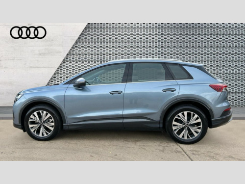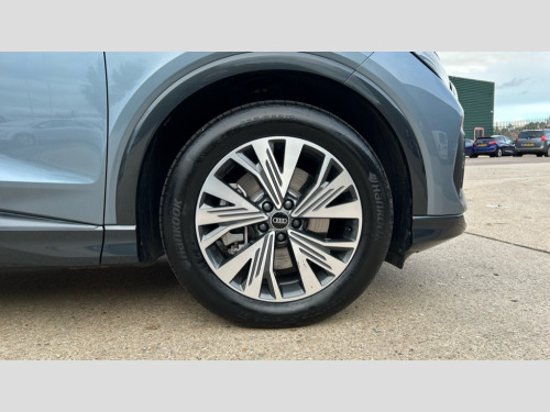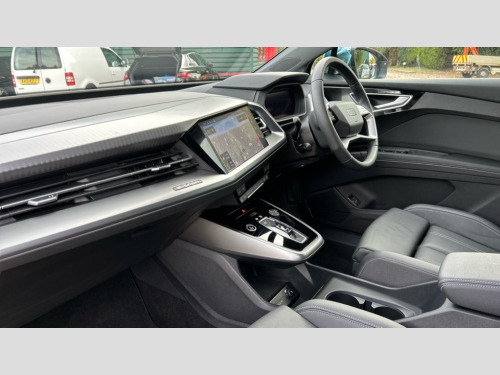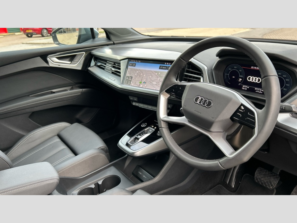 Audi Q4 210kW 45 82kWh Sport 5dr Auto [Leather] Adaptive cruise control with speed limiter, Advanced driver attention and drowsiness monitor, Audi application store, Audi connect safety and service (e-call), Audi drive select, Audi smartphone interface, Audi Virtual Cockpit - 10.25" display, Bluetooth interface, Camera based traffic sign recognition, Lane departure warning including emergency assist, MMI Navigation Plus with high resolution 11.6 inch touchscreen colour display, Power operated tailgate with sensor controlled release, Progressive steering, Rear view camera, Swerve assist and turn assist, 11KW onboard charger, 175kW DC charging capability, AC and DC charging access point positioned on driver's side rear, Comfort suspension, Control unit with household plug and charging cable, Mode 2, Type 2 / G (10A), Mode 3 type 2 AC charging cable 22kW, 2 USB-C ports with charge and data functions, Audi sound system with 8 loudspeakers incl. centre speaker, subwoofer and 6-channel amplifier with total output of 180 watts, DAB Digital radio, Aluminium roof rails, Body coloured door mirrors, Contrast bumpers in Manhattan grey, Electrically adjustable/heated/folding/auto dimming door mirrors with integrated LED indications + kerb view function for passenger side, Frameless auto dimming interior rear view mirror, Heat insulating glass windscreen, Heated rear window, LED 3rd brake light, LED daytime running lights, LED Headlights, LED rear lights, Projection light in the exterior mirrors, e-tron logo projected from the underside of the exterior mirror onto the ground, Rear side wing doors, Rear wiper, Single frame grille with a structured, closed surface within an octagonal shape, 3 seat bench in 2nd row, 3 zone automatic air conditioning, 4 way electric lumbar support for driver and front passenger, 40/20/40 split folding rear seat bench, Accent surfaces in gloss black - centre console control panel, switch panel and trim on front doors in gloss black, Black carpets, Comfort auxiliary air conditioning, Door armrests in leatherette, Front centre armrest, Front door sill trims with aluminium inlay, Front sport seats with integrated head reastrains, Front/rear floor mats, Heated front seats, Manual seat adjustment for driver and front passenger seats, Rear centre armrest with cupholders, Rear head restraints, Single front passenger seat, Steel grey cloth headlining, Twin leather/leatherette upholstery with front sport seats with integrated head restraints, Twin spoke multifunction leather steering wheel with trim in chrome look, Ambient lighting package - Q4 E-tron, Gloss styling pack - Q4 E-tron, Non smoking pack - Q4 E-tron, 3x3 point rear seatbelts, Acoustic vehicle alerting system, Convenience key with safelock, Driver and front passenger airbag with passenger airbag deactivation, Electric child locks, First aid kit with warning triangle and vests, Front side airbags with head airbag system and front interaction airbag, i - Size child seat mounting on the front passenger side and i - Size and top tether on the outer rear seats, Pre-sense front with pedestrian and cyclist detection, Rear seat occupant reminder for child presence detection, Seat belt monitoring, Tyre pressure loss indicator, Anti theft alarm, Anti-theft wheel bolts, Keyless Go, Aluminium look interior elements, Black dashboard, Inlay in anthracite aluminium convergence, accent surfaces on instrument panel and centre console trim in silk paint effect finish, platinum grey, 19" 5 W spoke aero alloy wheels with graphite grey gloss turned finish, Vehicle tool kit with tyre repair kit