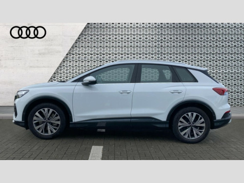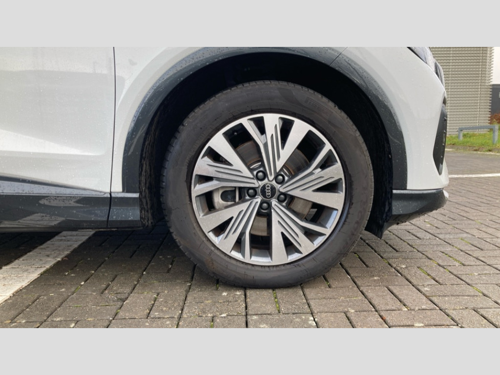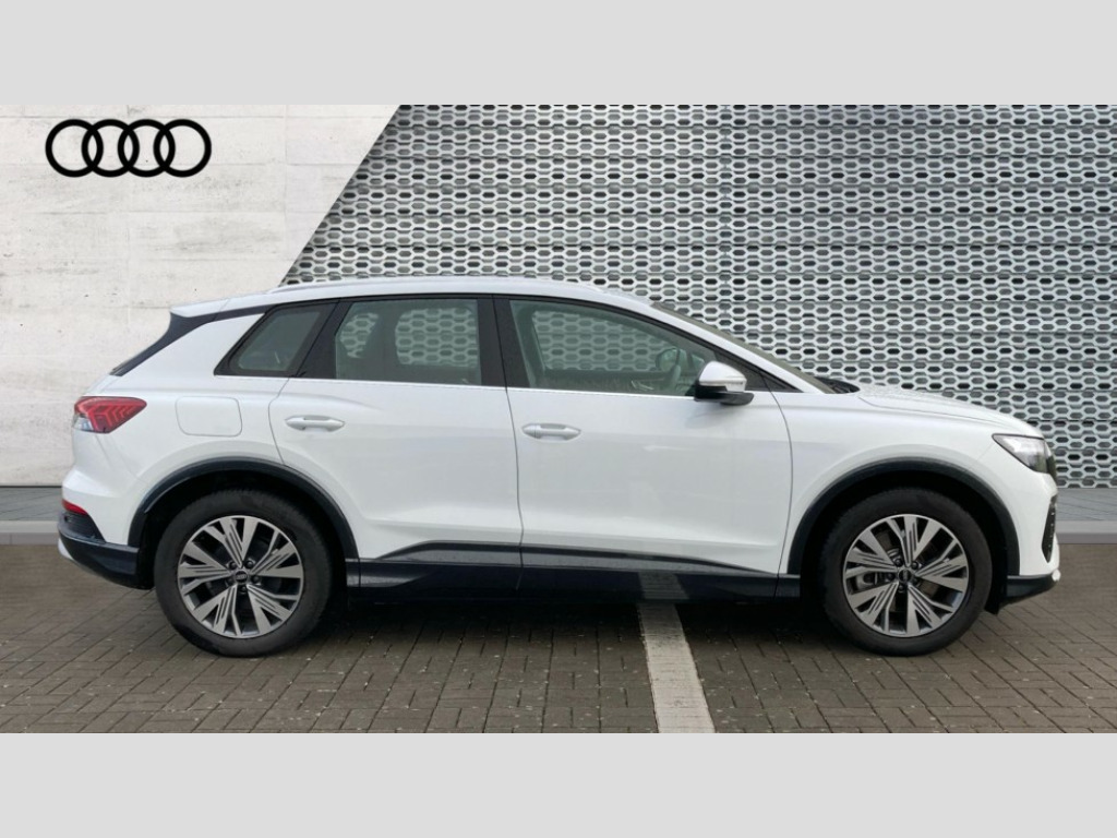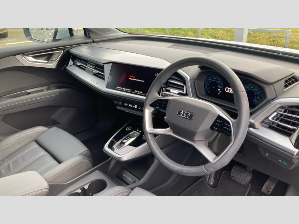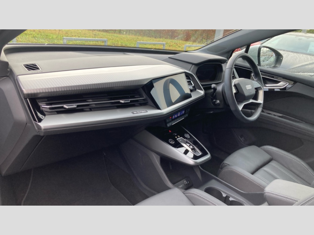 Audi Q4 210kW 45 82kWh Sport 5dr Auto [Leather] Adaptive cruise control with speed limiter, Advanced driver attention and drowsiness monitor, Audi application store, Audi connect safety and service (e-call), Audi drive select, Audi side assist with exit warning and rear cross traffic assist, Audi smartphone interface, Audi Virtual Cockpit - 10.25" display, Bluetooth interface, Camera based traffic sign recognition, Lane departure warning including emergency assist, MMI Navigation Plus with high resolution 11.6 inch touchscreen colour display, Power operated tailgate with sensor controlled release, Progressive steering, Rear view camera, Swerve assist and turn assist, 11KW onboard charger, 175kW DC charging capability, AC and DC charging access point positioned on driver's side rear, Comfort suspension, Control unit with household plug and charging cable, Mode 2, Type 2 / G (10A), Mode 3 type 2 AC charging cable 22kW, 2 USB-C ports with charge and data functions, Audi sound system with 8 loudspeakers incl. centre speaker, subwoofer and 6-channel amplifier with total output of 180 watts, DAB Digital radio, Aluminium roof rails, Body coloured door mirrors, Contrast bumpers in Manhattan grey, Electrically adjustable/heated/folding/auto dimming door mirrors with integrated LED indications + kerb view function for passenger side, Frameless auto dimming interior rear view mirror, Heat insulating glass windscreen, Heated rear window, LED 3rd brake light, LED daytime running lights, LED Headlights, LED rear lights, Projection light in the exterior mirrors, e-tron logo projected from the underside of the exterior mirror onto the ground, Rear side wing doors, Rear wiper, Single frame grille with a structured, closed surface within an octagonal shape, 3 seat bench in 2nd row, 3 zone automatic air conditioning, 4 way electric lumbar support for driver and front passenger, 40/20/40 split folding rear seat bench, Accent surfaces in gloss black - centre console control panel, switch panel and trim on front doors in gloss black, Black carpets, Comfort auxiliary air conditioning, Door armrests in leatherette, Front centre armrest, Front door sill trims with aluminium inlay, Front sport seats with integrated head restraints, Front/rear floor mats, Heated front seats, Rear centre armrest with cupholders, Rear head restraints, Single front passenger seat, Steel grey cloth headlining, Twin leather/leatherette upholstery with front sport seats with integrated head restraints, Ambient lighting package - Q4 E-tron, Gloss styling pack - Q4 E-tron, Non smoking pack - Q4 E-tron, 3x3 point rear seatbelts, Acoustic vehicle alerting system, Audi pre sense basic and rear, Convenience key with safelock, Driver and front passenger airbag with passenger airbag deactivation, Electric child locks, First aid kit with warning triangle and vests, Front side airbags with head airbag system and front interaction airbag, i - Size child seat mounting on the front passenger side and i - Size and top tether on the outer rear seats, Pre-sense front with pedestrian and cyclist detection, Rear seat occupant reminder for child presence detection, Seat belt monitoring, Tyre pressure loss indicator, Anti theft alarm, Anti-theft wheel bolts, Keyless Go, Aluminium look interior elements, Black dashboard, Inlay in anthracite aluminium convergence, accent surfaces on instrument panel and centre console trim in silk paint effect finish, platinum grey, 19" 5 W spoke aero alloy wheels with graphite grey gloss turned finish, Vehicle tool kit with tyre repair kit