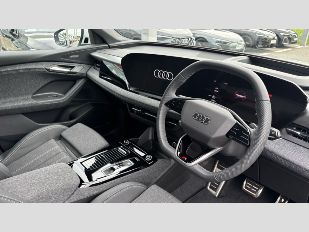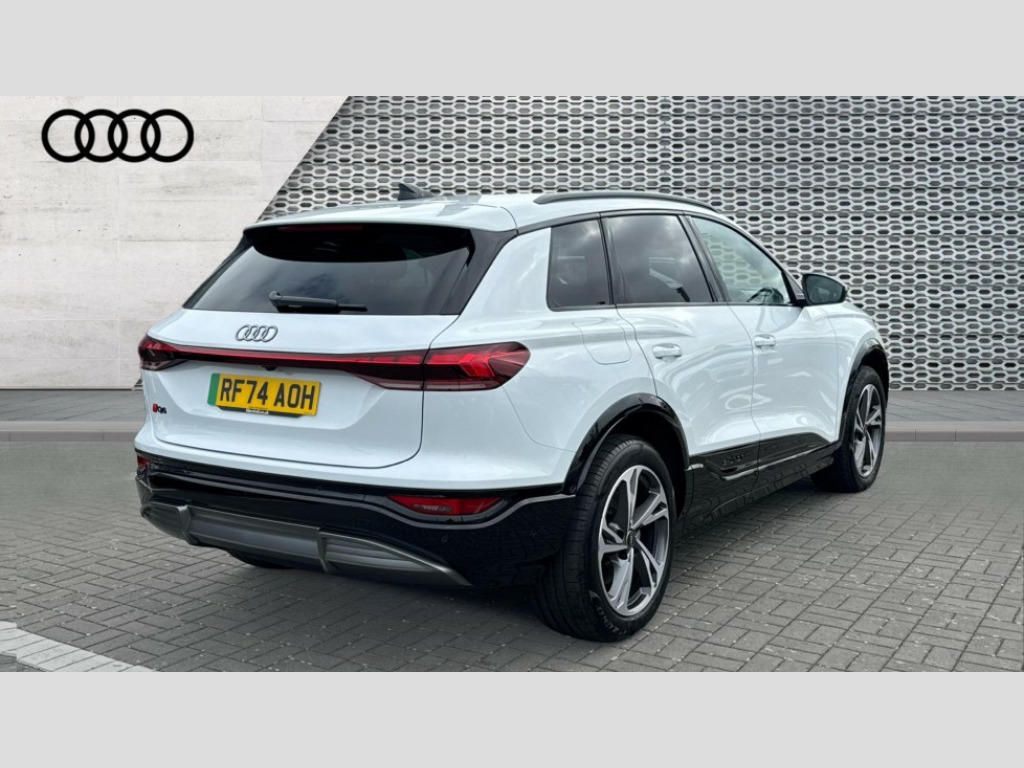 Audi Q6 285kW Quattro 100kWh S Line 5dr Auto Adaptive cruise control, Advanced driver attention and fatigue montior, Audi application store, Audi assistant, Audi connect emergency call and service, Audi connect navigation and infotainment, Audi connect remote and controls, Audi digital key (Sharing with additional users and other devices is not possible), Audi drive select, Audi lane departure warning, Audi parking system plus includes 360 degree display with front and rear sensors, Audi smartphone interface, Audi virtual cockpit plus with 11.9" OLED colour display, Camera traffic sign recognition, Comfort key with SAFELOCK, Intersection assist, Lane change assistant with exit warning system, rear cross traffic alert and rear turn assist, MMI navigation plus with high resolution 14.5" OLED touchscreen colour display, Park assist plus, Progressive steering with servotronic, Swerve assist and turn assist, Top view camera, Traffic sign based speed limiter, 11KW onboard charger, Comfort suspension, Compact e-tron charging system, Household plug type G (GB), Industrial connector CEE 32A, 230V, long and straight for the e-tron charging system, Mode 3 charging cable for public charging, 22 KW (AC), On-board charger up to 270 KW (DC), Plug n charge, Quattro all wheel drive, Second charging port (AC), Wall mounted bracket for compact e-tron charging system, 2 front and 2 rear USB-C ports, Audi sound system impressive sound with 10 loudspeakers including centre speaker and subwoofer, 6-channel amplifier with a total output of 180 watts, DAB Digital radio, Smartphone compartment with wireless charging, Acoustic windscreen, Auto dimming rear view mirror, Black roof rails, Black window surrounds, Body colour door mirrors, Electric adjustable/heated/folding door mirrors with auto dimming, Electric charging cover, Front door sill trims with aluminium inlays, illuminated with 'S' logo, Headlight cleaning system, High beam assist, LED 3rd brake light, LED headlights plus incl. digital DRL, dynamic coming and leaving home function with turning/all weather/motorway/manouevring and intersection lights, LED rear lights pro incl. dynamic rear indicators and illuminated light strip with animated coming and leaving home function, Privacy glass, Rear side wing doors, Rear wiper, S Line badge on the front wings, S line bumpers, S line exterior styling with radiator grille in body colour and accents in dark selenite silver front and rear, Side and rear windows in heat insulating glass, Towbar preparation, White rhombus logo projection light in exterior mirrors, 3 bench rear seats in 2nd row, 3 rear head restraints, 3 spoke multifunction heated leather steering wheel with touch control, flat on top and bottom, with 'S' badge,contrast stitch, 3 zone automatic climate control including comfort remote pre-conditioning, 4-way electric lumbar support, 40:20:40 split folding rear seat bench , centre armrest and cupholders, Black carpets, Black cloth headlining, Comfort front centre armrest, Front sport seats with 'S' embossed logo, Front/rear floor mats, Heat pump, Heated front and outer rear seats, i-Size child seat mounting on the front passenger side and outer rear seats, i-Size and top tether on the outer rear seats, Integrated front head restraints, Luggage compartment lid, electrically opening and closing, Manually adjustable front seats, Manually adjustable steering column, Single front passenger seat, Stainless steel pedals and footrest, Steering wheel grips in perforated leather and shift paddles, Upper and lower interior elements in leatherette plus, Ambient lighting pack - Q6, 3 point seatbelts on all seats, Acoustic vehicle alerting system, Airbags in front, front passenger airbag is automatically activated and deactivated, Electric child locks, Front emergency brake assist, Front interaction airbag, Front side and head airbags, Hill hold assist, Rear seat occupant reminder for child presence detection, Seat belt monitoring, Tyre pressure loss indicator, Warning triangle and first aid kit, Anti theft alarm, Anti-theft wheel bolts, Accent surfaces and control buttons in gloss black, Anthracite matt brushed aluminium inlays, Black dashboard with contrast stitching, Tyre repair kit