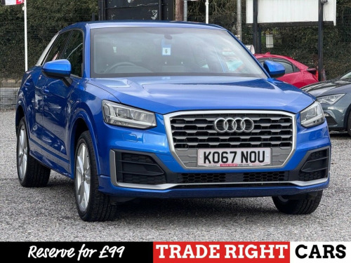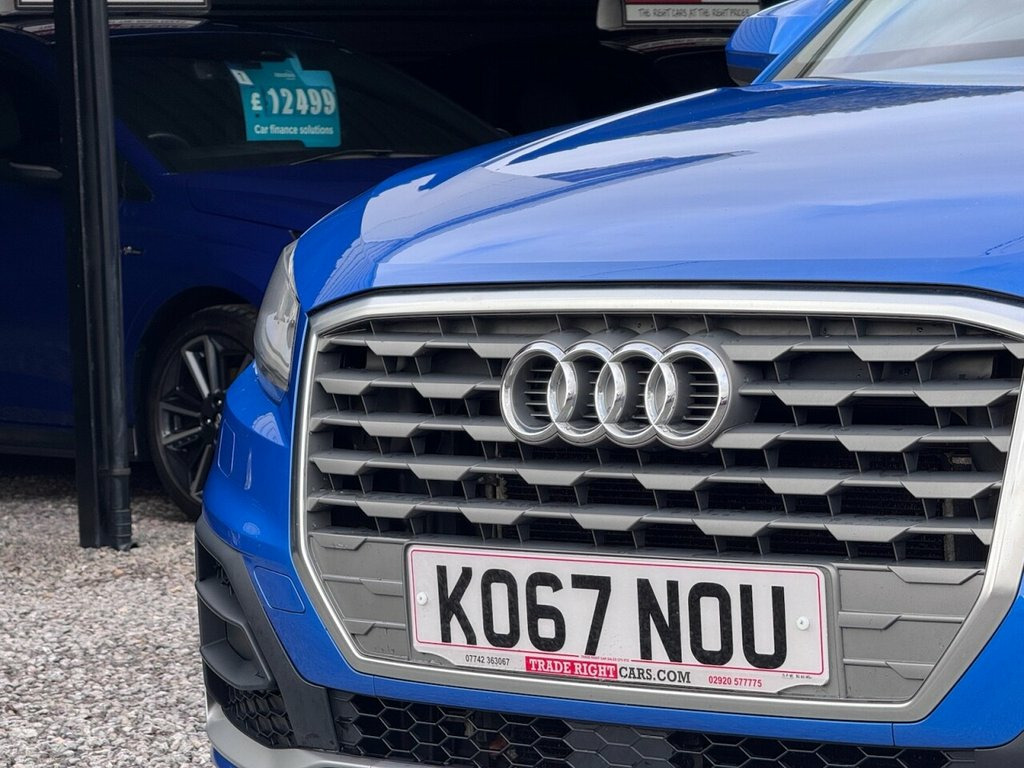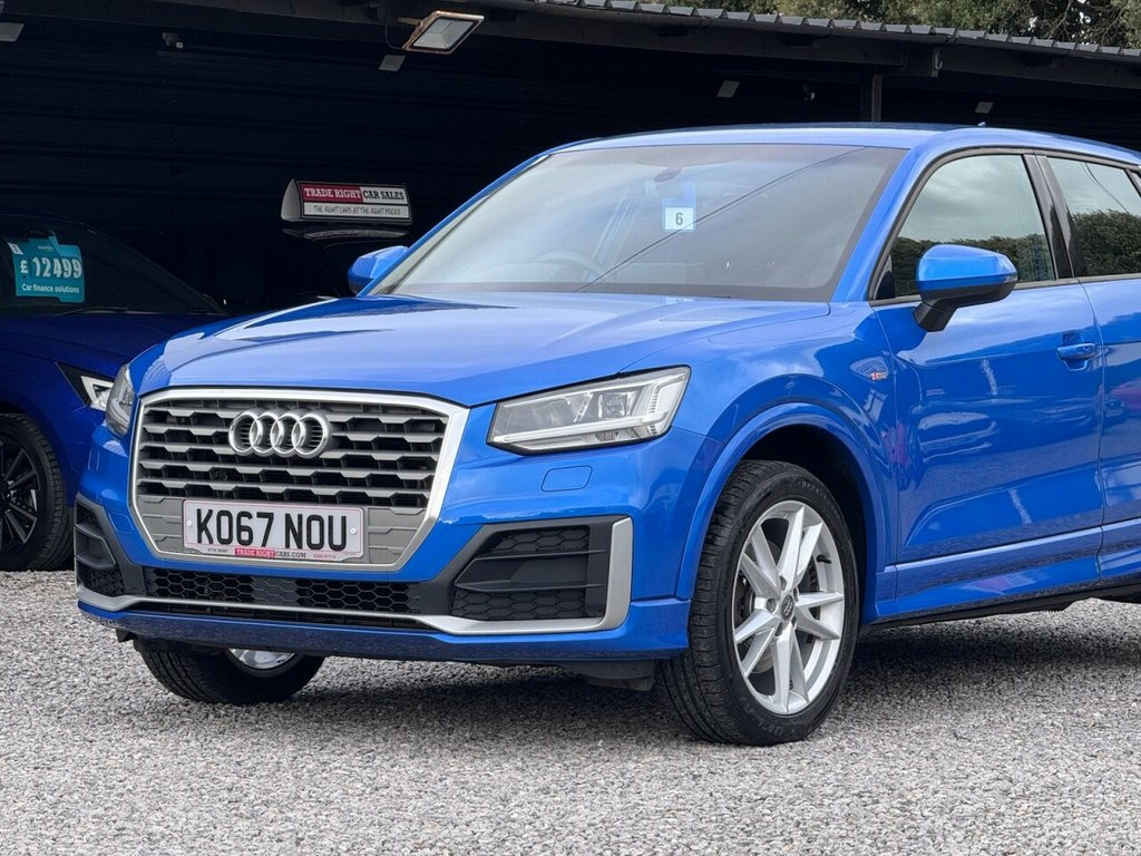 JUST ARRIVED & READY TO DRIVE AWAY! 2018/67 Audi Q2 1.4 TFSi CoD S-Line [Nav] finished in Ara Blue Crystal Effect. We are pleased to offer this lovely 5 door petrol SUV. This is the highly desirable and economical 1.4 litre model with a 6 speed manual transmission that offers 148 BHP and over 50 MPG. It has covered just 69,591 miles with service history (5 services, 4 @ Audi) and drives as you would expect. Recently serviced @ 68,181 miles. MOT until 20th January 2027 with no advisories (the front discs & pads have been renewed as part of our vehicle preparation). The car is ready to drive away. We will also include a complimentary 12 month AA breakdown cover. Two former keepers, the last owner has had the car since 2021. Euro 6 status - ULEZ compliant. A superb example with the sought-after S-Line specification. Key features include; 18" alloy wheels, USB, AUX, DAB, navigation with 7" display, bluetooth connectivity, LED headlights/tail-light and dynamic indicators, A/C, rear parking sensors, remote central locking x 1, multi-function steering wheel and cruise control. The full specification list can be found on our website. Advertised below the AutoTrader RRP. Please let us know if you would like any further information or a detailed video sent via WhatsApp. 19in Alloy Wheels - 5-Arm Rotor Design A, 19in Alloy Wheels - 10-Y-Spoke Design, 18in Alloy Wheels - 5-Arm Off-Road Desig, Ara Blue, 18in Alloy Wheels - 5-Spoke Y Design, 2 x SDXC Card Readers, 2 x USB Charging Ports and 1 x AUX-IN, 3-Spoke Leather Trimmed Multi-Function S, 6-Airbag System, 8 Passive Speakers, ABS - Anti-Lock Braking System, AMI - Audi Music Interface, Aluminium Interior Elements, Anti Theft Locking Wheel Bolts, Anti-Theft Alarm, Audi Connect Infotainment Services - 3 M, Audi Drive Select, Audi Pre-Sense Front with Pedestrian Rec, Audi Smartphone Interface, Black Window Trims, Bluetooth Interface, Body Coloured Bumpers, Body Coloured Door Mirrors, C-Pillar Blade in Titanium