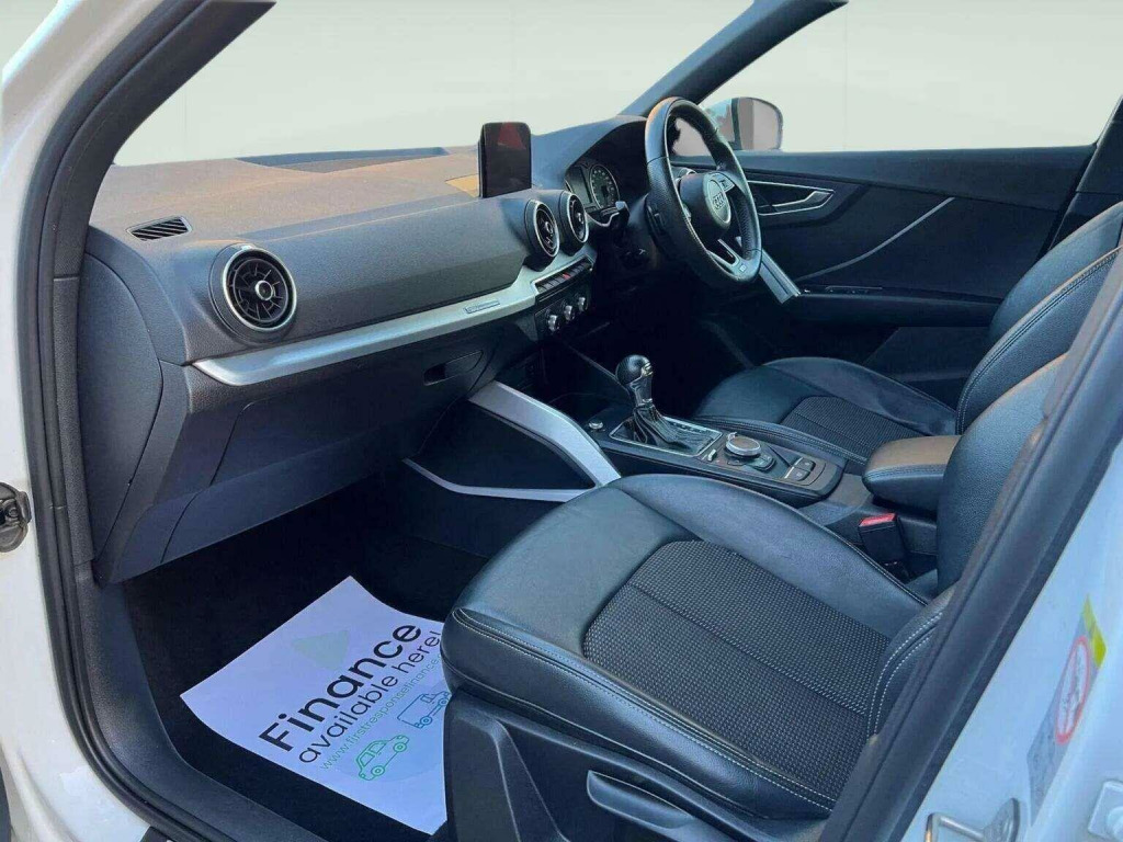 Audi Q2 1.4 TFSI S Line S Tronic automatic finished with black half leather S Line interior. This stylish petrol SUV benefits from partial service history and will receive a fresh pre delivery oil and filter service. Supplied with a long MOT for added peace of mind. Specification includes satellite navigation, cruise control, Audi drive select modes, stop start technology and a multifunction steering wheel with paddle shift. Comfort and convenience features include air conditioning, media connectivity, rear parking sensors, electric windows and privacy glass. Supplied with two keys and a warranty included. The Q2 offers strong performance, smooth automatic driving and excellent everyday practicality in a compact premium package. Finance options are available and you can secure this vehicle today for just £99. Nationwide delivery service available. View full stock online at www.r8group.co.uk. Part exchange welcome subject to terms.. 18in Alloy Wheels - 5-Spoke Y Design, 2 x SDXC Card Readers, 2 x USB Charging Ports and 1 x AUX-IN, 3-Spoke Leather Trimmed Multi-Function Sport Steering Wheel with Gear Shift Paddles, 6-Airbag System, 8 Passive Speakers, AMI - Audi Music Interface, Aluminium Interior Elements, Anti Theft Locking Wheel Bolts, Anti-Theft Alarm, Audi Drive Select, Audi Pre-Sense Front with Pedestrian Recognition, Audi Smartphone Interface, Black Window Trims, Bluetooth Interface, Body Coloured Bumpers, Body Coloured Door Mirrors, C-Pillar Blade in Titanium Grey - Matt, CD Drive, Chrome-Plated Exhaust Tailpipe Trim, Cloth Headlining in Black, Cruise Control, DAB Digital Radio, DIS - Drivers Information System - Monochrome, Door Mirrors - Electrically Adjustable and Heated with Integrated LED Side Indicators, Dynamic Suspension, ESC - Electronic Stabilisation Control, Electric Windows - Front, Electromechanical Parking Brake, Electronically Operated Child Locks, Extended and Proactive Pedestrian Protection, First Aid Kit and Warning Triangle, Floor Mats with Contrast Stitching, Front Centre Armrest, Front Underbody Guard and Rear Diffuser Trim in Selenite Silver Finish, Front Windscreen with Grey Tinted Sunband, Headlight Washers, ISOFIX Child Seat Mounting for Front Passenger with Airbag Deactivation and Outer Rear Seats, Illuminated Door Sill Trims with S Logo, Inlays - Matt Brushed Aluminium, LED Headlights with LED Rear Lights and Dynamic Rear Indicators, LED Interior Light Package, Light and Rain Sensor, MMI Navigation - SD Card Based, MMI Radio Plus with 7in Colour Fixed MMI Screen and MMI Controller, Manual Air Conditioning, Multi Collision Brake Assist, Non-Smoking Package, Pedals in Stainless Steel, Progressive Steering, Remote Central Locking, S Line Badges on the Front Wings, S Line Design Body Styling, Seat Belt Monitoring, Split Folding Rear Seat Bench - 60-40 or Fully, Steering Wheel - Height and Reach Adjustable, Storage Compartments, Tool Kit and Car Jack, Tyre Pressure Warning Light, Tyre Repair Kit, Voice Control System.