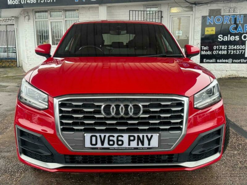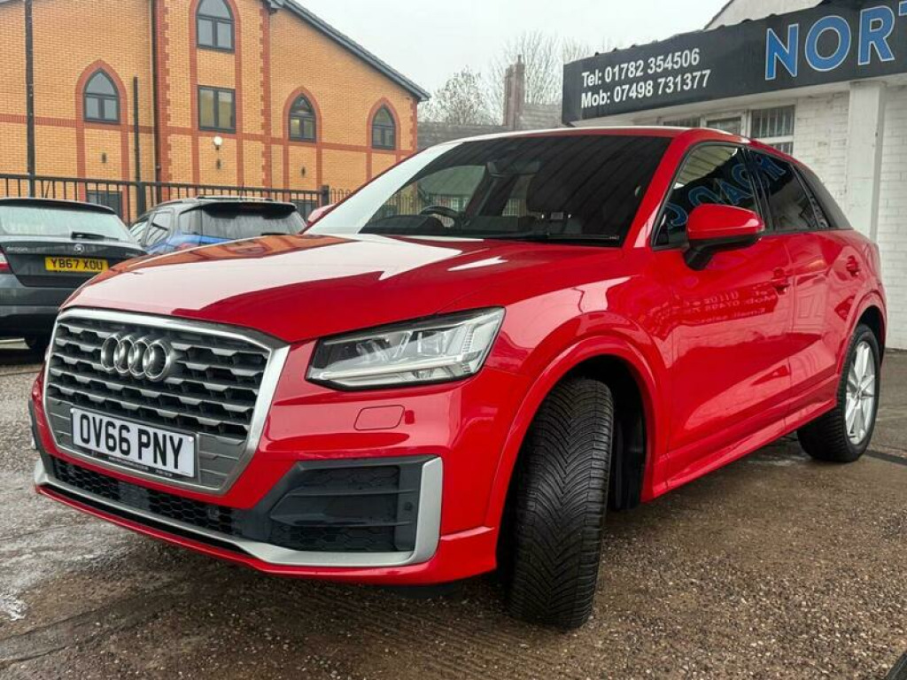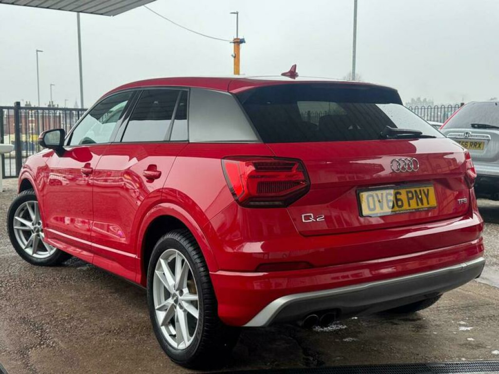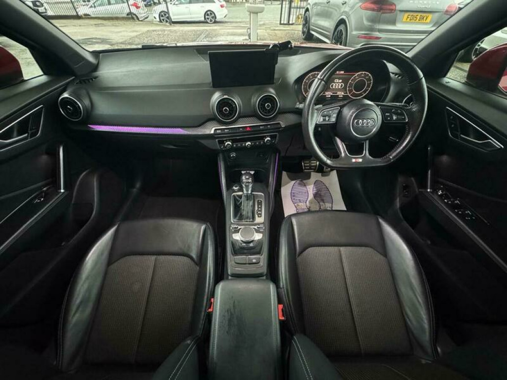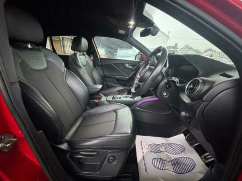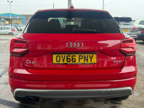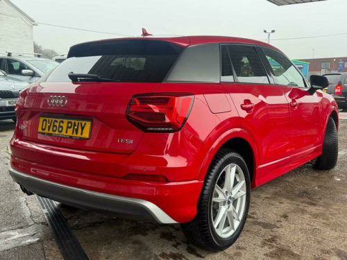 Presenting this Audi Q2 1.4 TFSI CoD S line S Tronic Euro 6 (s/s) 5dr with FULL AUDI SERVICE HISTORY, HEATED FRONT SEATS, MOT FOR LIFE WITH AUDI, REVERSING CAMERA, CAMBELT AND WATERPUMP REPLACED AT 100000 MILES WITH AUDI MAIN DEALER, CRUISE CONTROL, BLUETOOTH, SAT NAV, and much more. This vehicle will be supplied with a FRESH SERVICE AT THE CURRENT MILEAGE. DRIVES SUPERB. BRILLIANT FUEL ECONOMY AND PERFORMANCE. This 2016 Audi Q2 TFSI S line offers a compelling blend of style and technology, making it a standout choice in its class. Powered by a 1.4 litre petrol engine, this Euro 6 compliant model delivers an impressive 0-60mph time of just 8.2 seconds. Inside, you'll find the Audi Smartphone Interface, seamlessly integrating your Android Auto or Apple CarPlay for effortless connectivity. The S line trim enhances the driving experience with LED headlights that feature dynamic rear indicators, ensuring excellent visibility and a modern aesthetic. Further convenience is provided by the Bluetooth interface for hands free calls and music streaming, alongside a light and rain sensor that automatically adjusts the headlights. Experience efficiency without compromise with this Audi Q2, boasting a highlight fuel economy of 52 miles per gallon. This figure, along with its low CO2 emissions, indicates that this vehicle is more economical to run and better for the environment than many similar cars. The manual air conditioning ensures a comfortable cabin temperature in all conditions, making every journey a pleasure. This Q2 TFSI S line represents a smart and sophisticated option for those seeking a premium compact SUV. Air Conditioning, Alarm, Bluetooth, Body Coloured Bumpers, Brake Assist, CD Player, Central Locking, Cruise Control, ESP, Electric Windows, Folding Rear Seats, Front Airbags, Heated Door Mirrors, ISOFix Anchor Point, LED Lights, Panoramic Sunoof, Power Assisted Steering, Radio, Safety Belts, Satellite Navigation, Surround Sound System, Voice Control