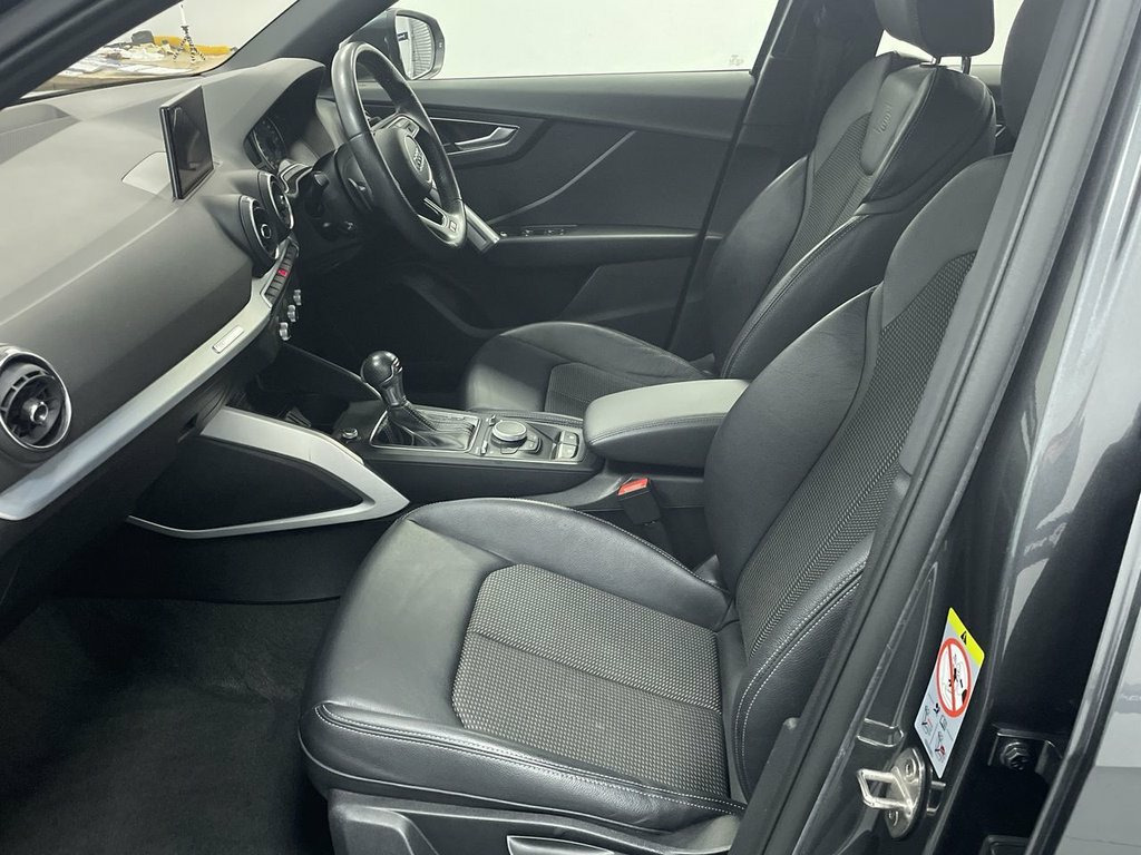 AUTOMATIC, AUDI INFOTAINMENT SYSTEM FEATURING SAT NAV, DAB RADIO, BLUETOOTH PHONE AND MEDIA ENABLING UNLINITED MUSIC STREAMING, AIR CON, PARKING SENSORS, 18" UPGRADE ALLOY WHEELS, S-LINE EMBOSSED SPORTS HALF LEATHER, AUTOMATIC LIGHTS/ WIPERS, LED LIGHTS, FLEXIBLE MONTHLY PAYMENTS AVAILABLE ON THIS CAR. This 2018 Audi Q2 TFSI S line finished in Daytona grey metallic boasts exceptionally low mileage for its age, having covered just 46,659 miles. This stylish compact SUV features the desirable S line trim, powered by an efficient 1.4 litre petrol engine. It meets Euro 6 emissions standards. Notable features include striking 18 inch alloy wheels with a matt titanium look and diamond cut finish, LED headlights and rear lights with dynamic indicators, and a light and rain sensor for automatic headlight activation. Parking is made easier with rear parking sensors, and the Bluetooth interface allows for seamless connectivity. Experience impressive performance with a 0-60mph acceleration time of just 8.5 seconds, a highlight that demonstrates its responsiveness compared to similar vehicles. This Audi Q2 also offers excellent fuel economy, achieving up to 52 miles per gallon, and benefits from low CO2 emissions, making it an economical choice. sat nav, multi media entertainment with blue-tooth media streaming, rear parking sensors, electric windows and mirrors, centre arm rest, remote central locking alarm and immobiliser, isofix rear seats. . THIS CAR IS AA APPROVED AND SOLD WIT 18in Alloy Wheels - 5-Arm Off-Road Desig, 18in Alloy Wheels - 5-Spoke Y Design, 2 x SDXC Card Readers, 2 x USB Charging Ports and 1 x AUX-IN, 3-Spoke Leather Trimmed Multi-Function S, 6-Airbag System, 8 Passive Speakers, ABS - Anti-Lock Braking System, Aluminium Interior Elements, AMI - Audi Music Interface, Anti Theft Locking Wheel Bolts, Anti-Theft Alarm, Audi Connect Infotainment Services - 3 M, Audi Drive Select, Audi Pre-Sense Front with Pedestrian Rec, Audi Smartphone Interface, Black Window Trims, Bluetooth Interface, Body Coloured Bumpers, Body Coloured Door Mirrors, C-Pillar Blade in Titanium Grey - Matt, CD Drive, Chrome-Plated Exhaust Tailpipe Trim, Cloth Headlining in Black, Crui